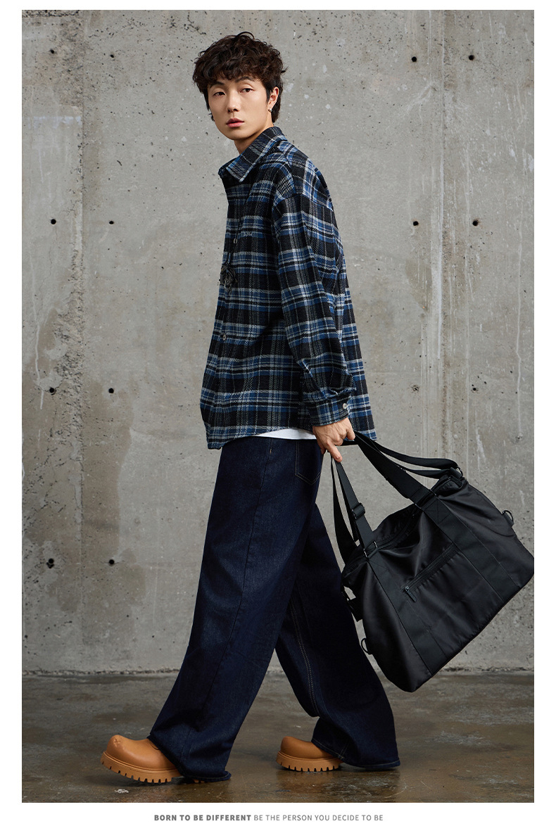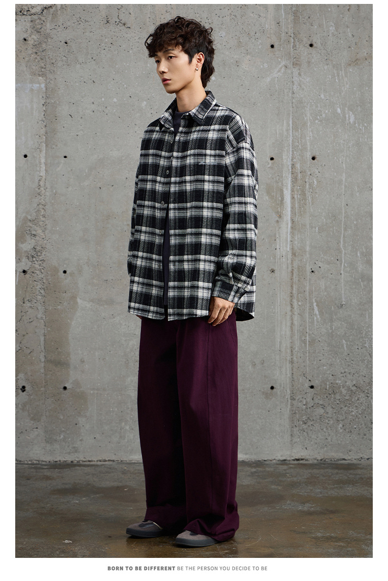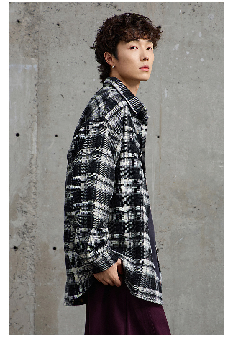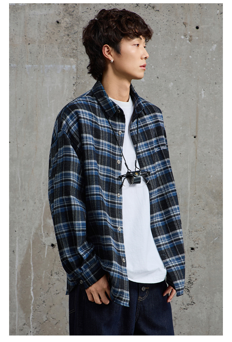 高品质男士宽松格子衬衫,休闲潮流上衣,春秋高街款式,透气耐磨,适合青年情侣穿搭