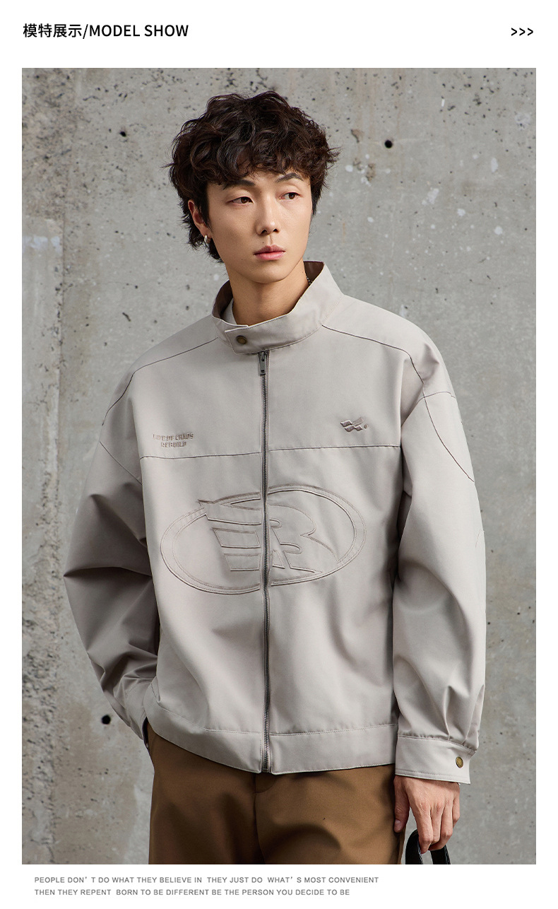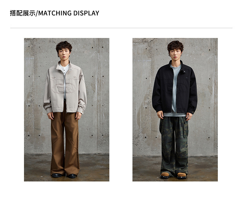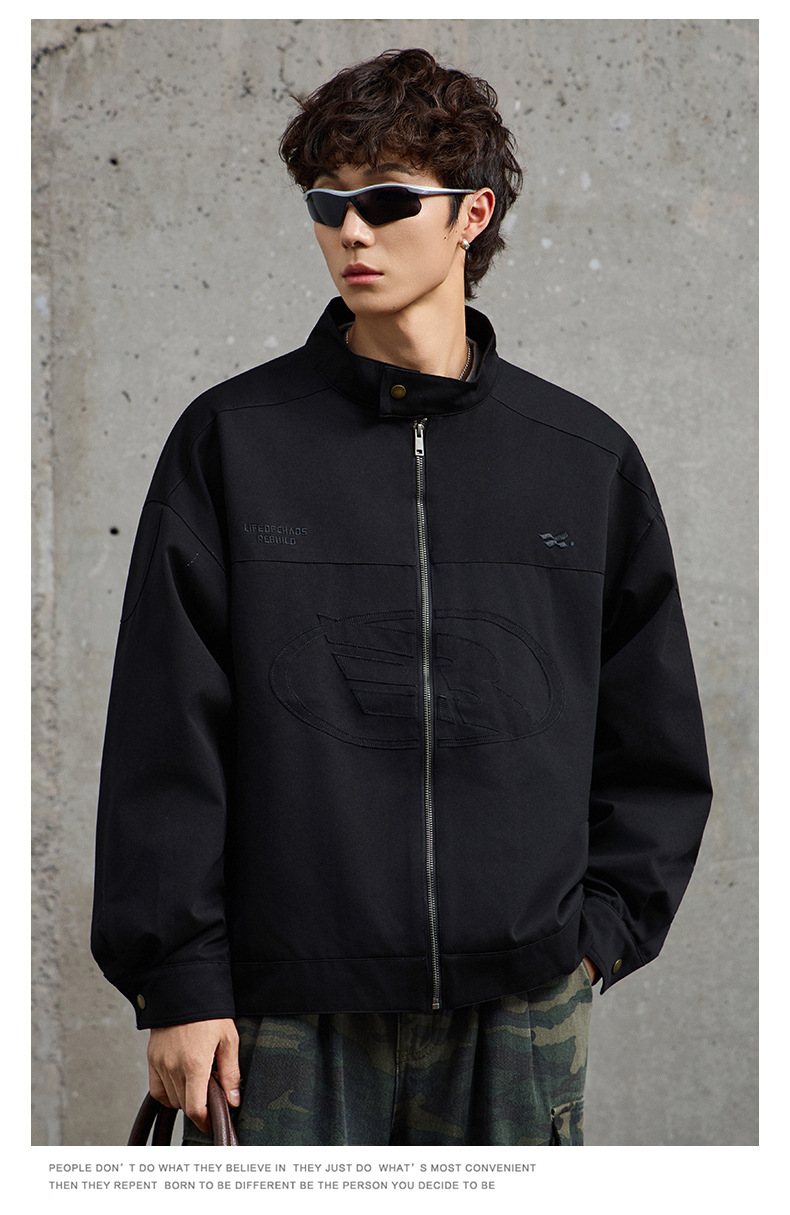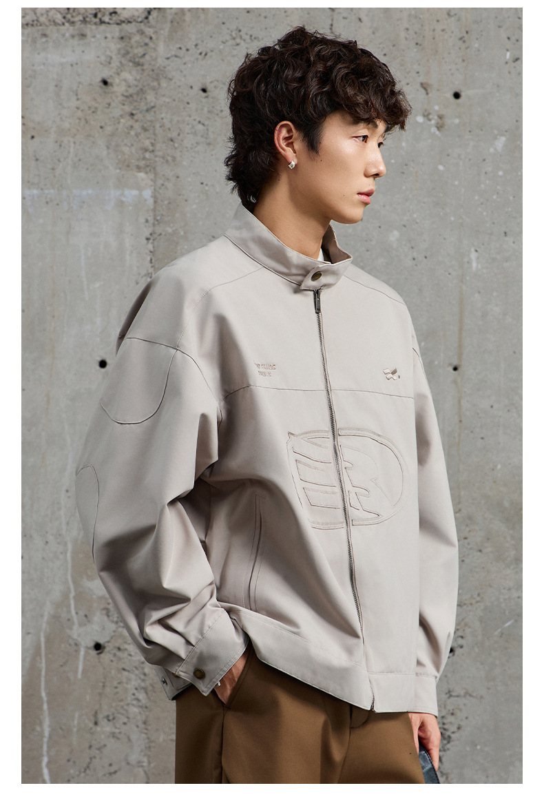 厂家直销男士宽松牛仔外套,刺绣立领设计,时尚休闲风格,春秋适用,多口袋款式