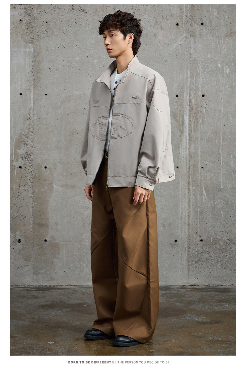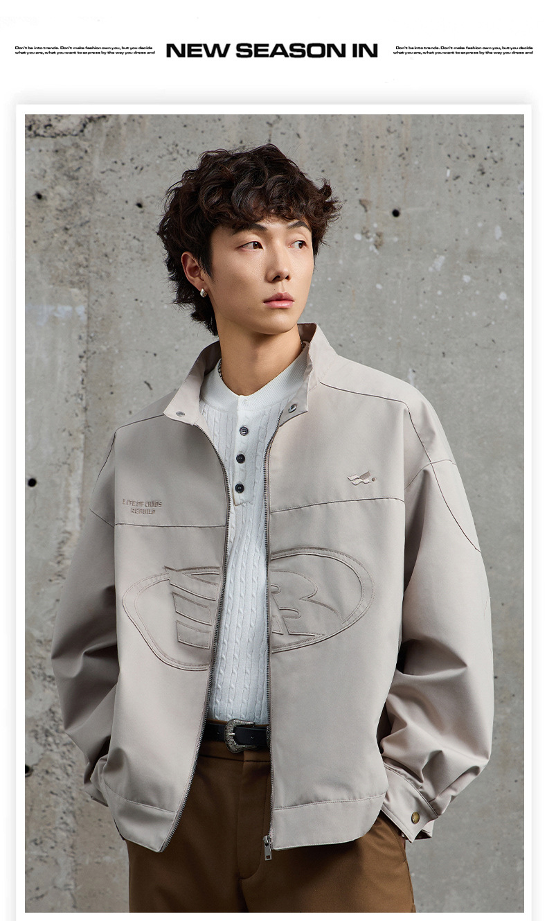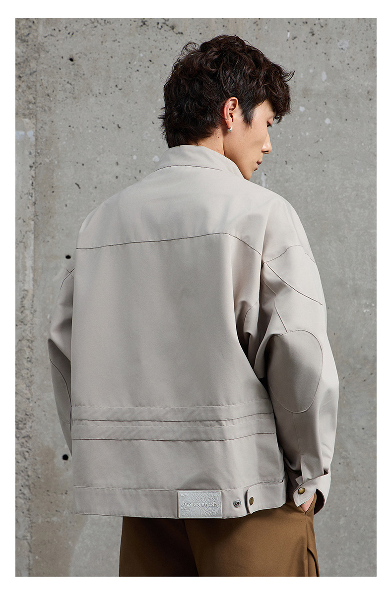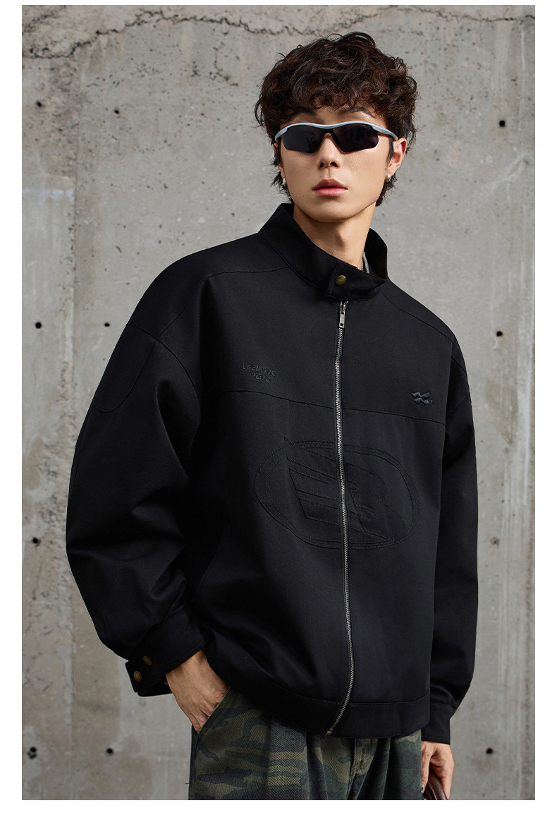 厂家直销男士宽松牛仔外套,刺绣立领设计,时尚休闲风格,春秋适用,多口袋款式