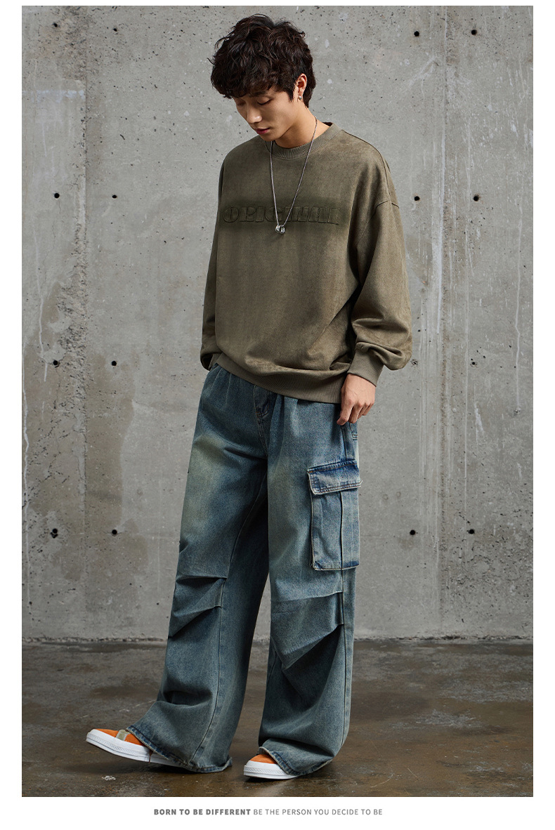 厂家直销男士宽松修身水洗做旧字母印花牛仔外套,春秋休闲,潮流风格
