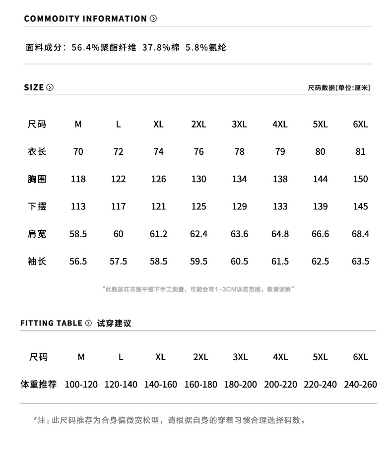 | 主面料成分的含量 | 56.4%聚酯纤维 37.8%棉 5.8%氨纶 |