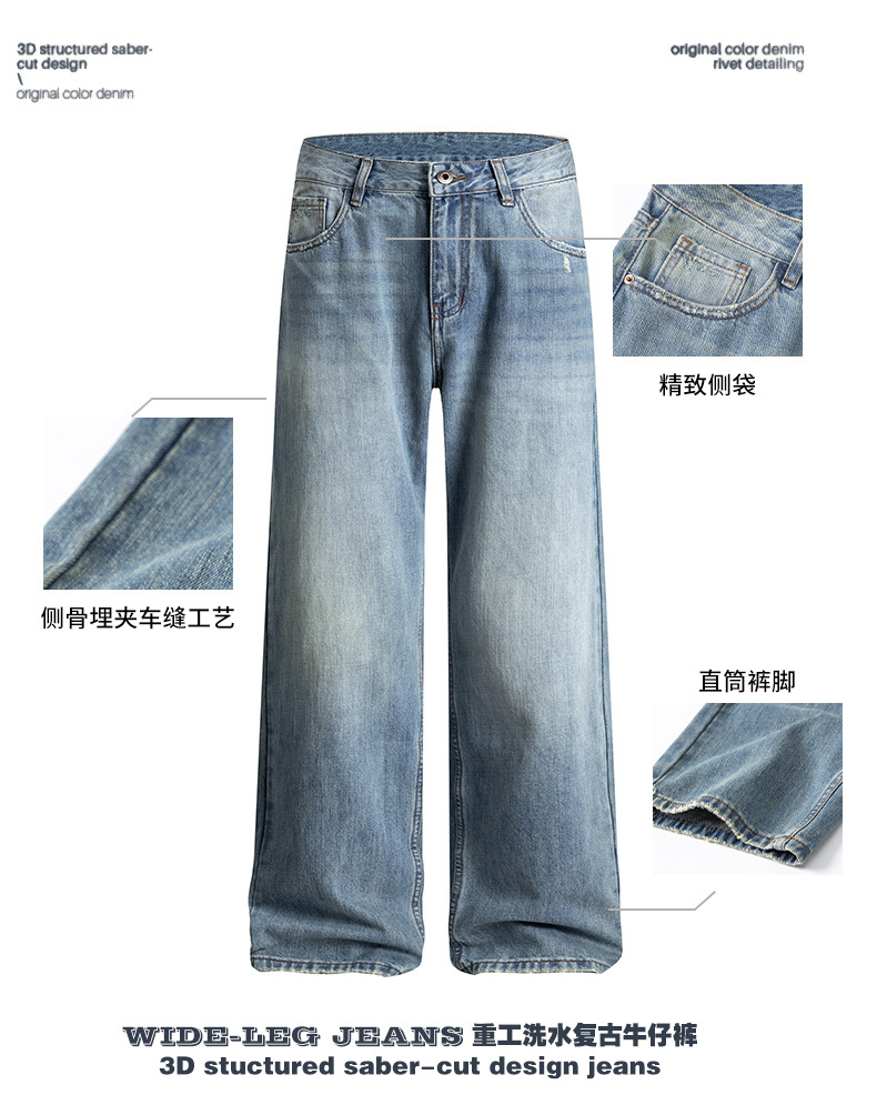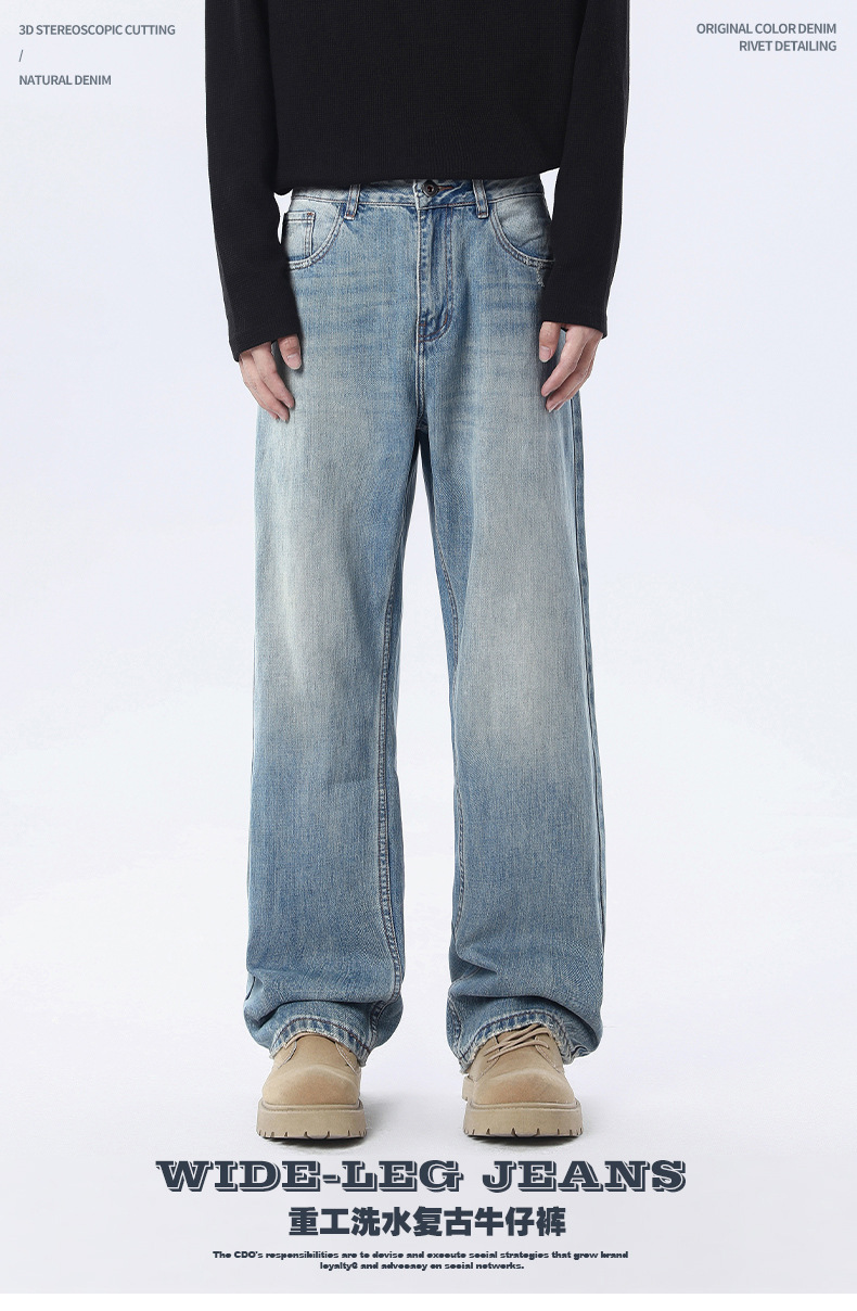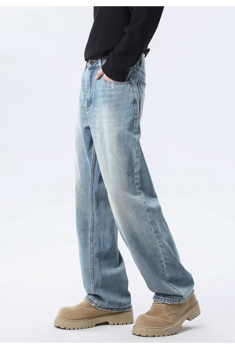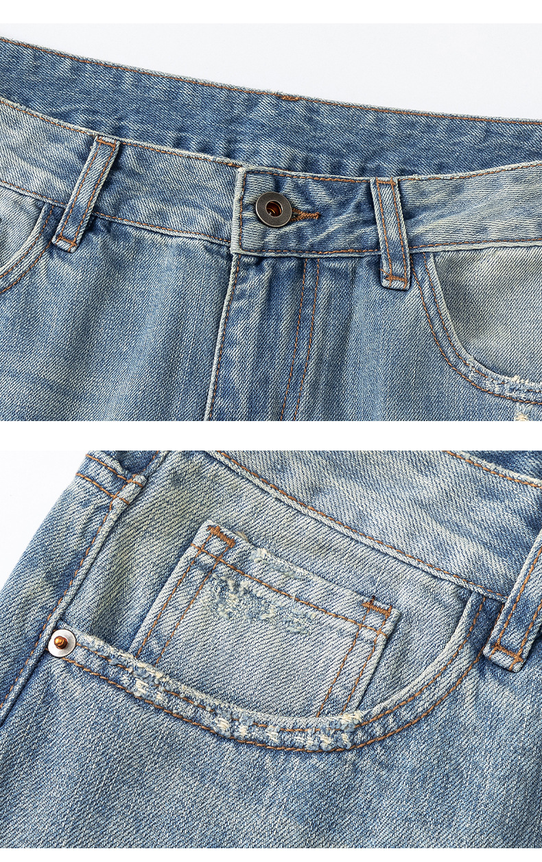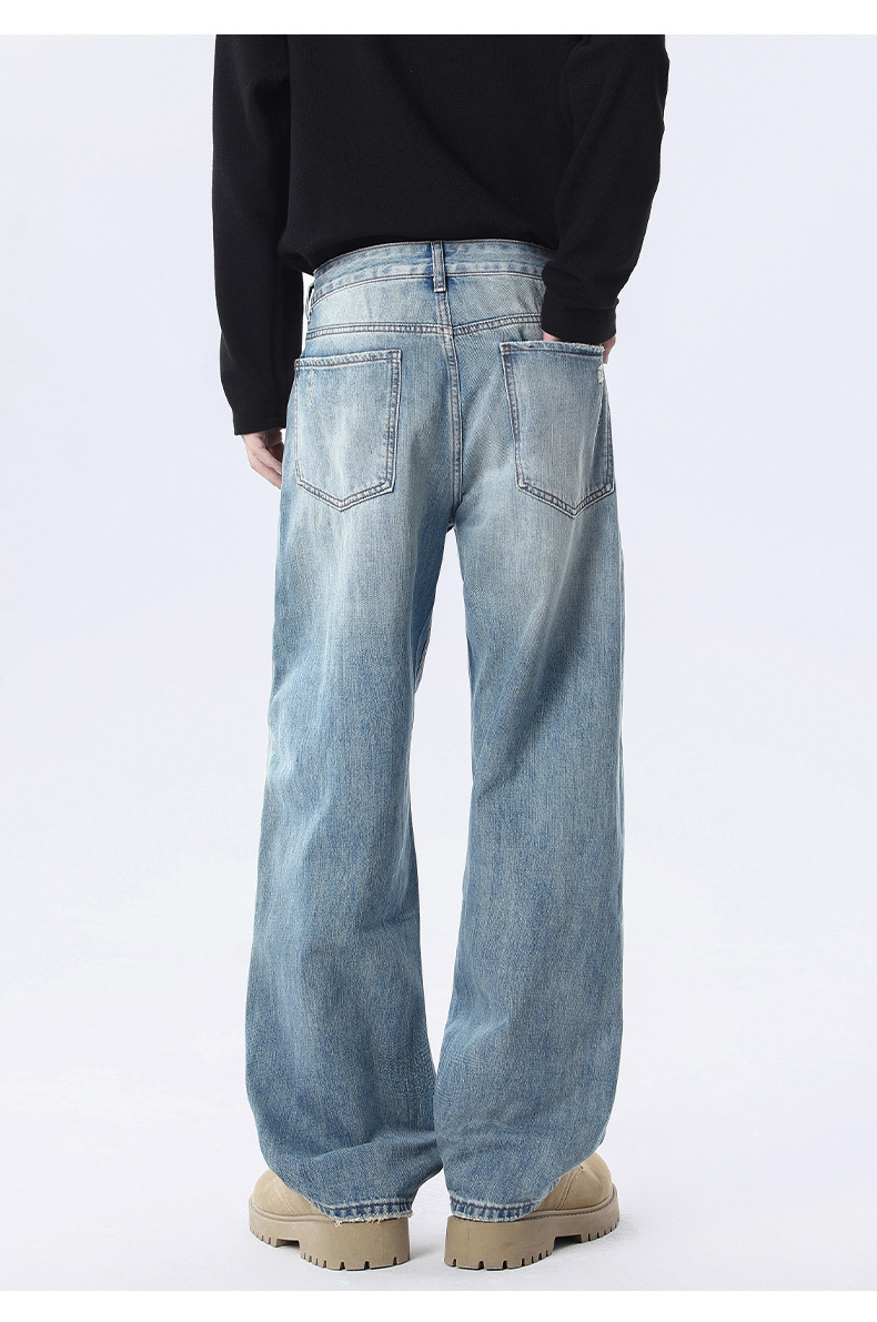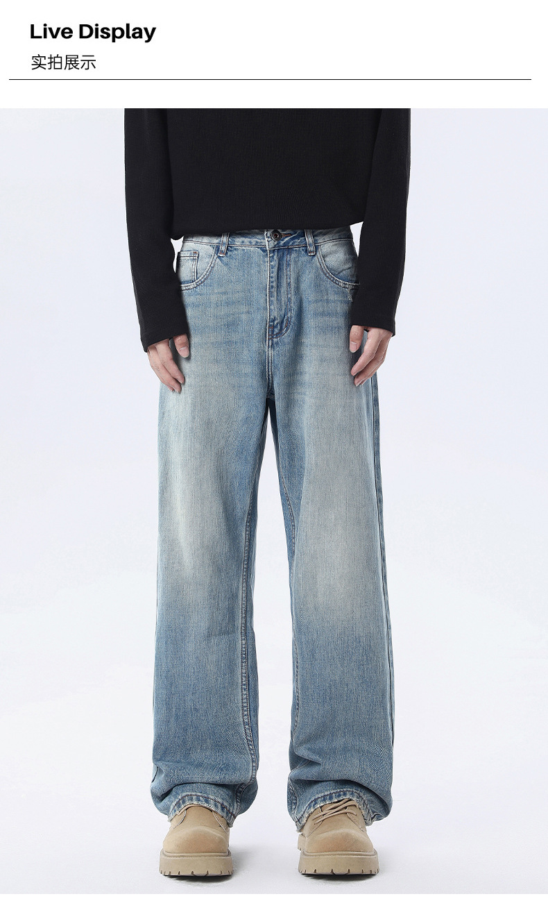 厂家直销男士宽松做旧牛仔裤,春秋新款直筒设计,青春潮流日常长裤