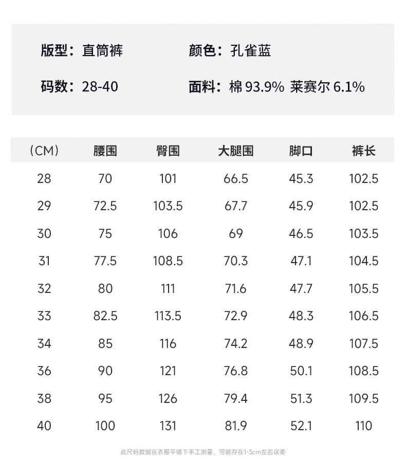 | 尺码 | 28,29,30,31,32,33,34,36,38,40 |