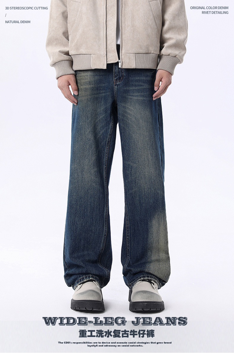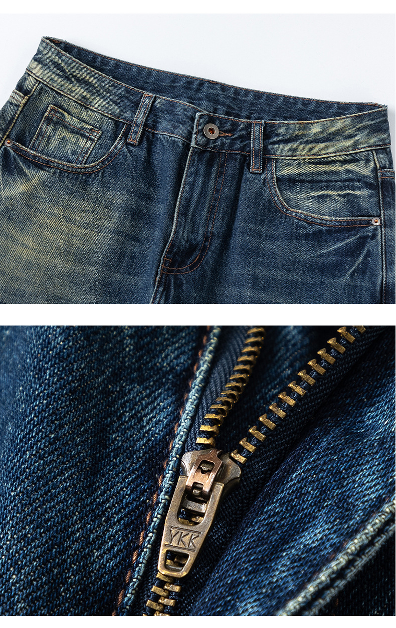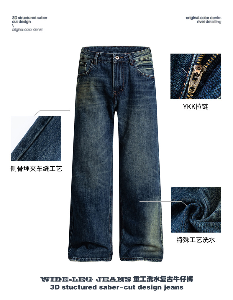 厂家直销男士高品质水洗复古牛仔裤宽松直筒长裤,春秋休闲,纽扣装饰设计