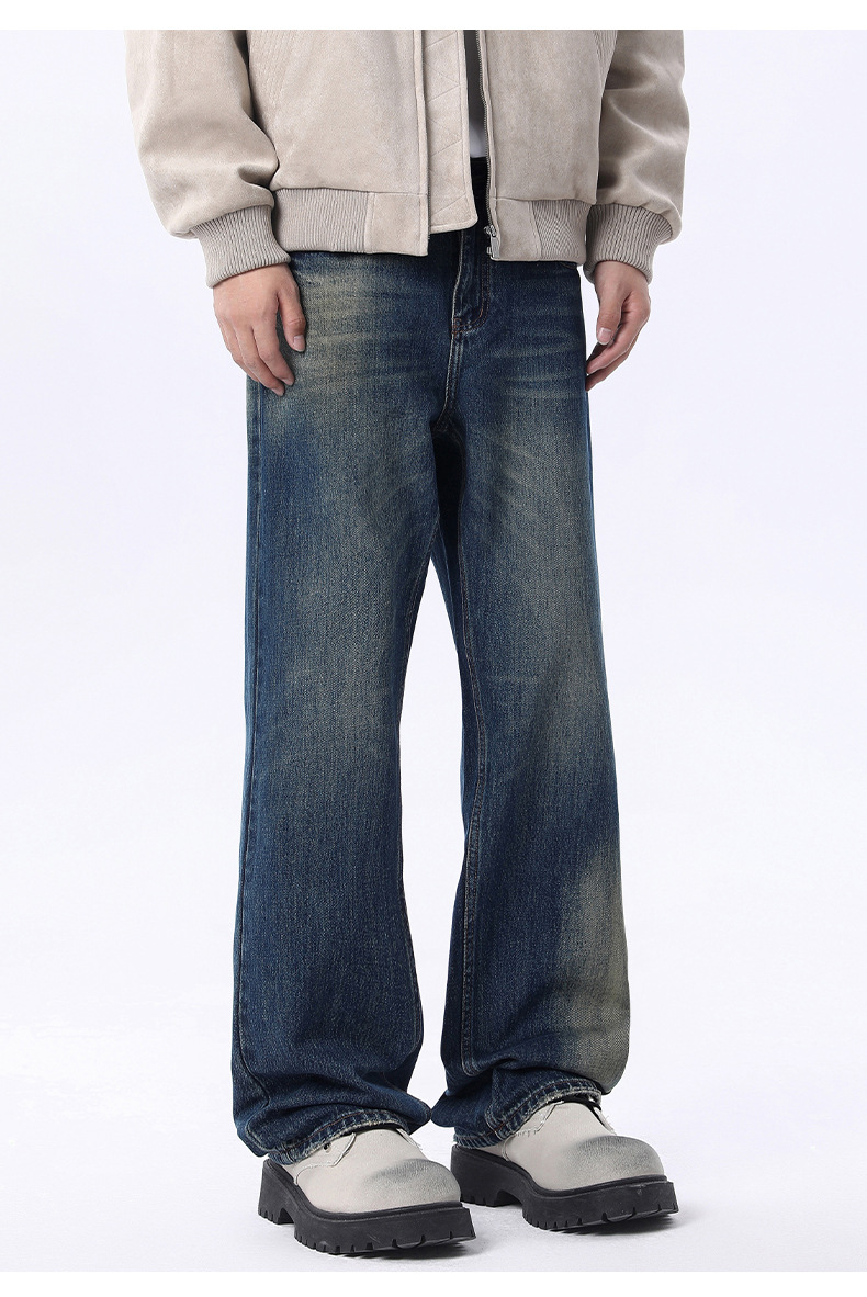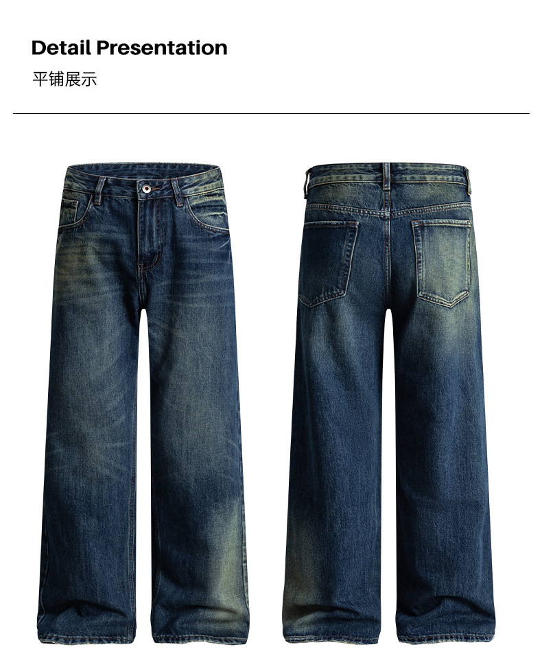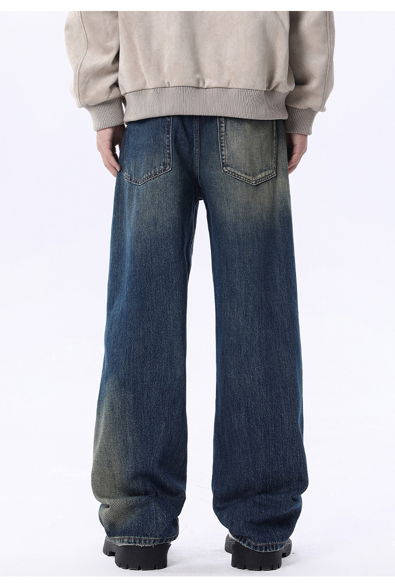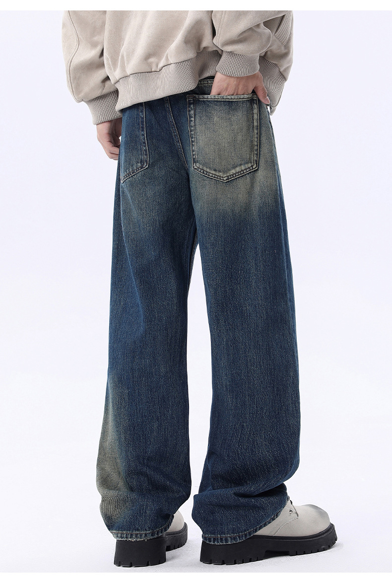厂家直销男士高品质水洗复古牛仔裤宽松直筒长裤,春秋休闲,纽扣装饰设计