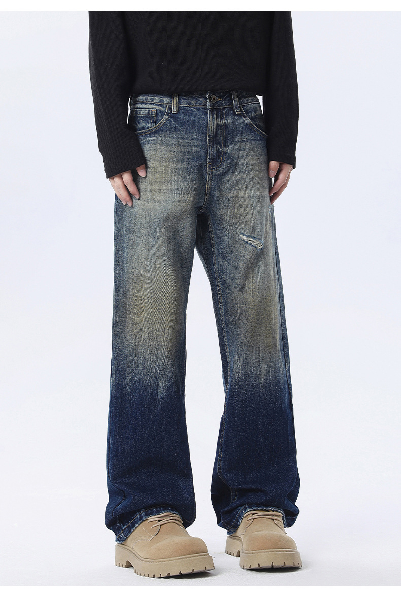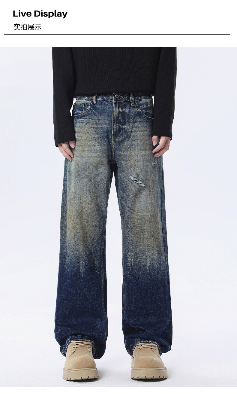 厂家直销男士宽松破洞牛仔裤,休闲百搭直筒款,秋季时尚街潮风格,水洗做旧工艺
