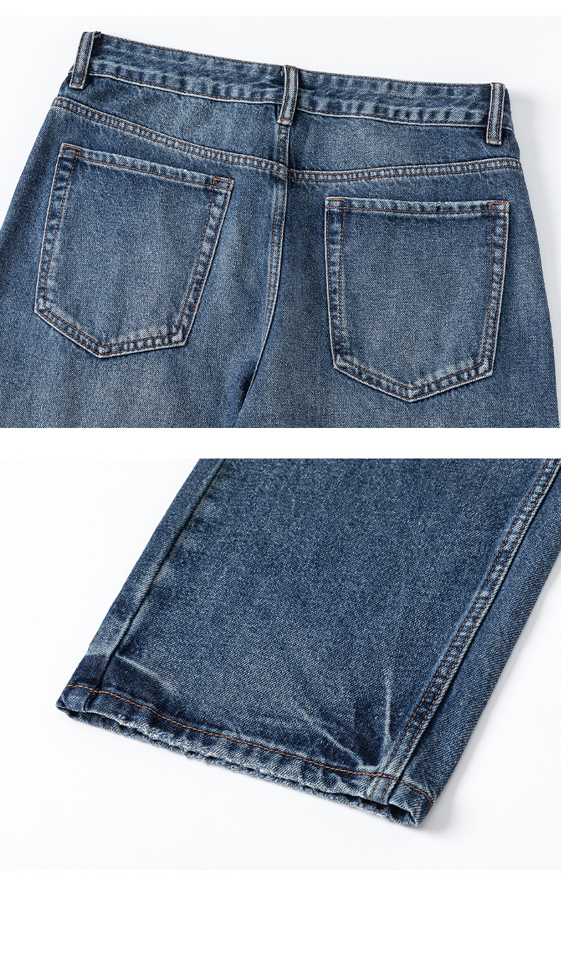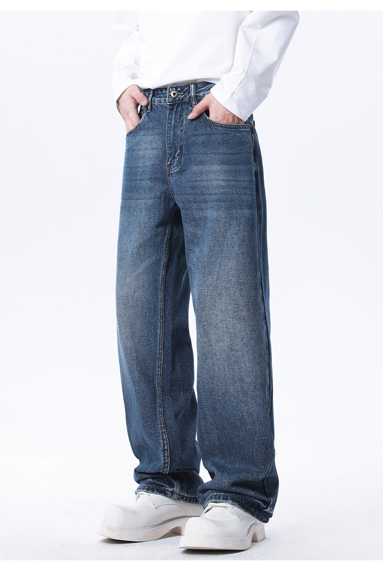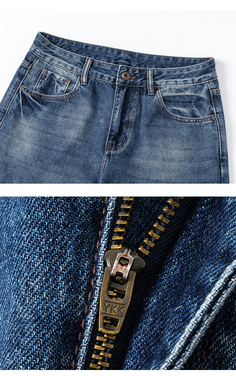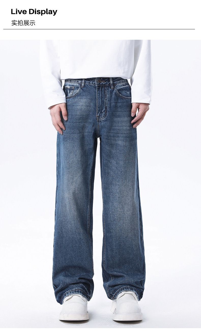 厂家直销男士修身宽松牛仔裤,复古直筒设计,春秋季休闲日常,水洗工艺猫须风格