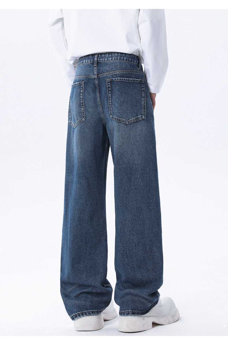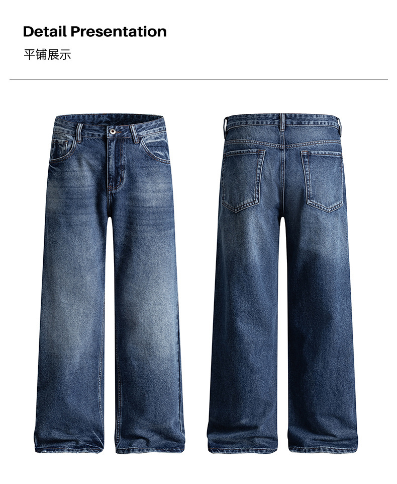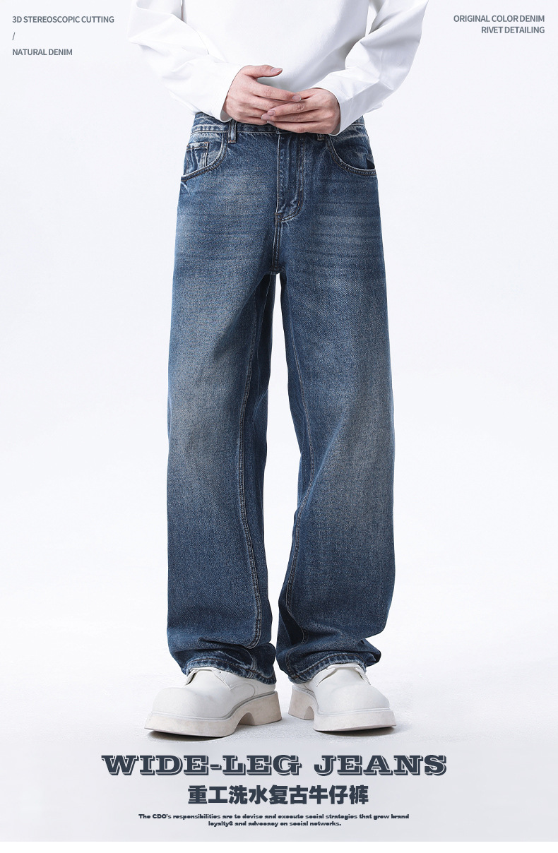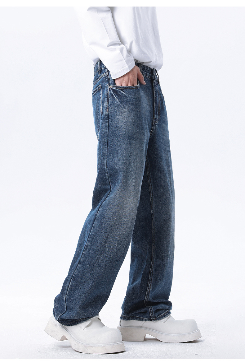 厂家直销男士修身宽松牛仔裤,复古直筒设计,春秋季休闲日常,水洗工艺猫须风格