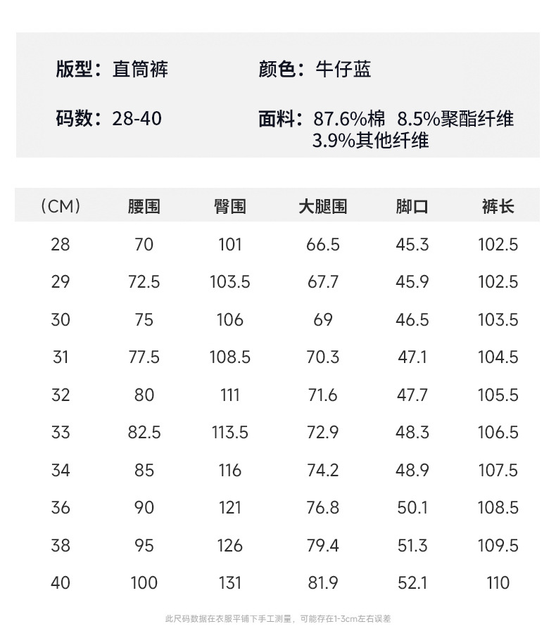 | 款式 | 直筒裤 |