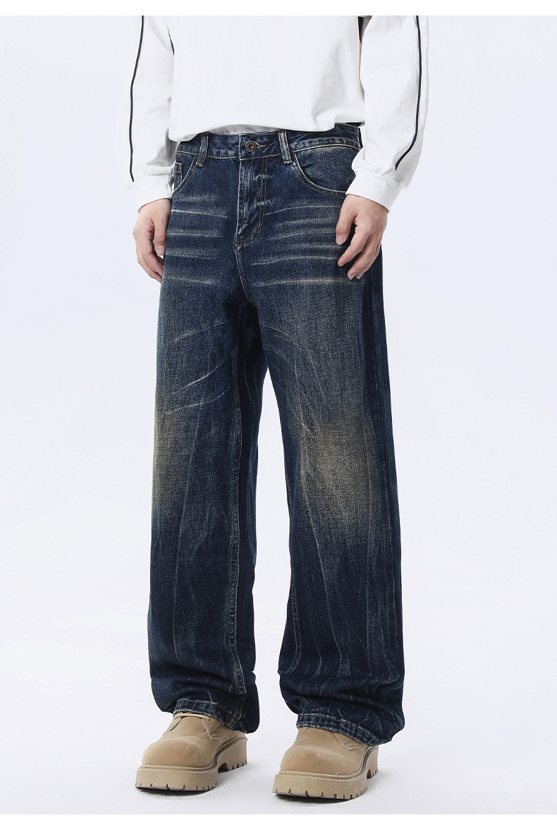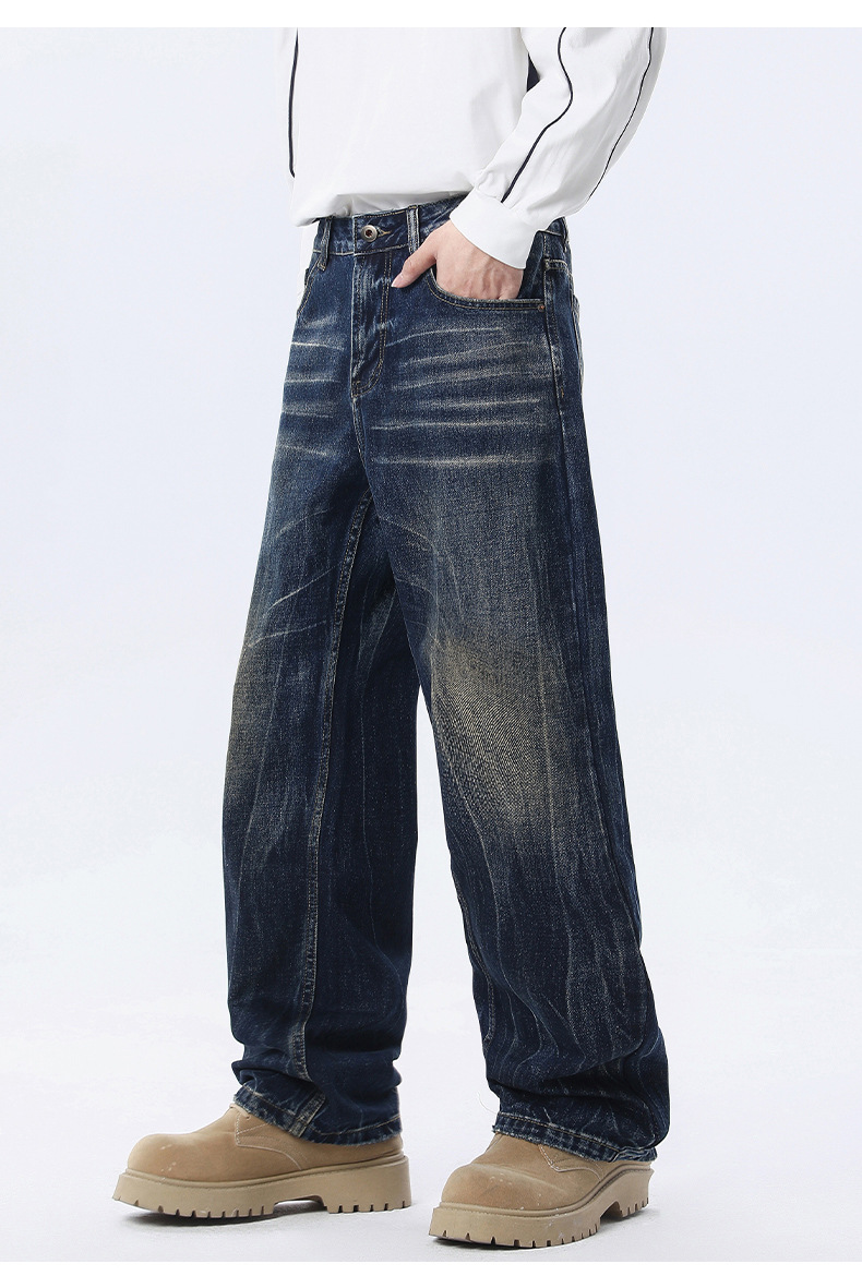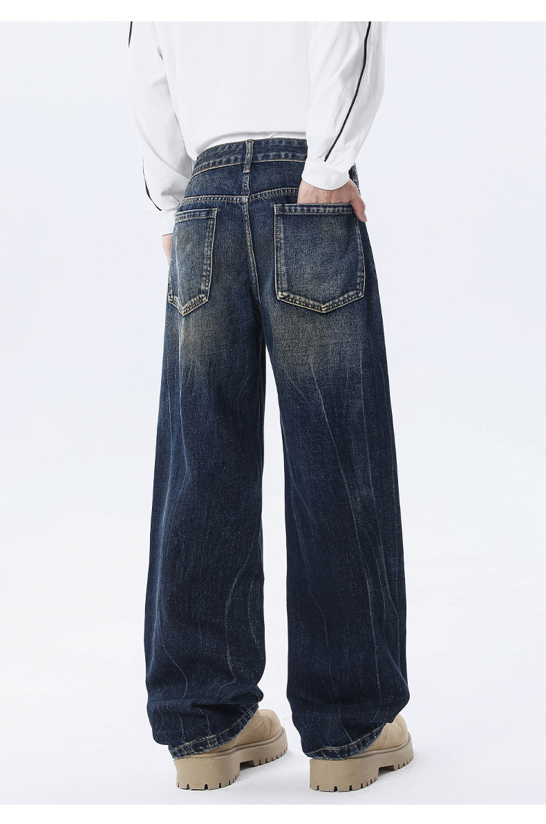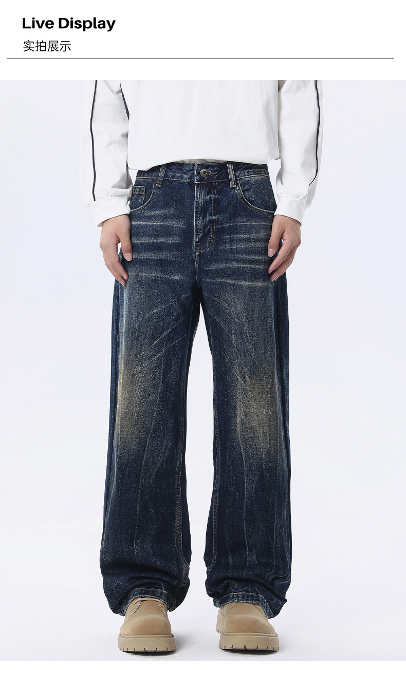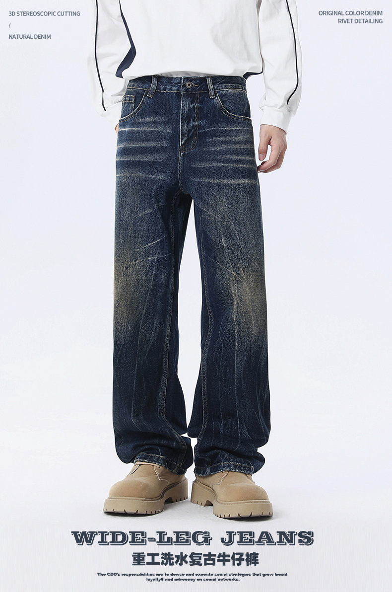 厂家直销男士水洗宽松阔腿牛仔裤,复古直筒休闲风格,适合春秋季,免烫处理,青春潮流款式