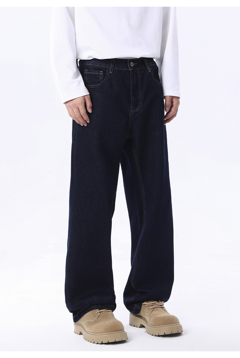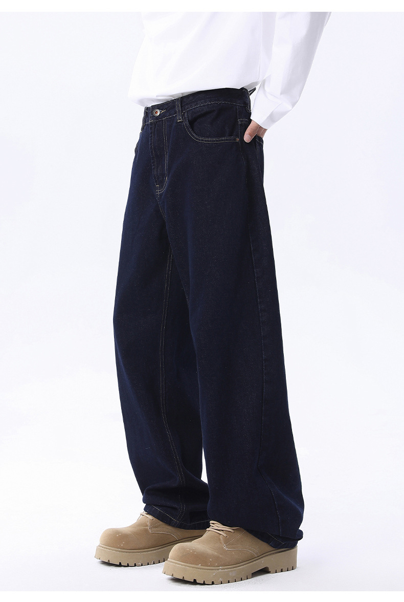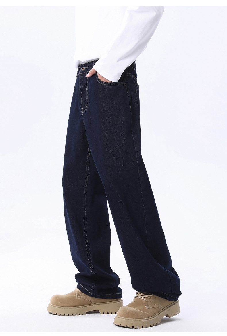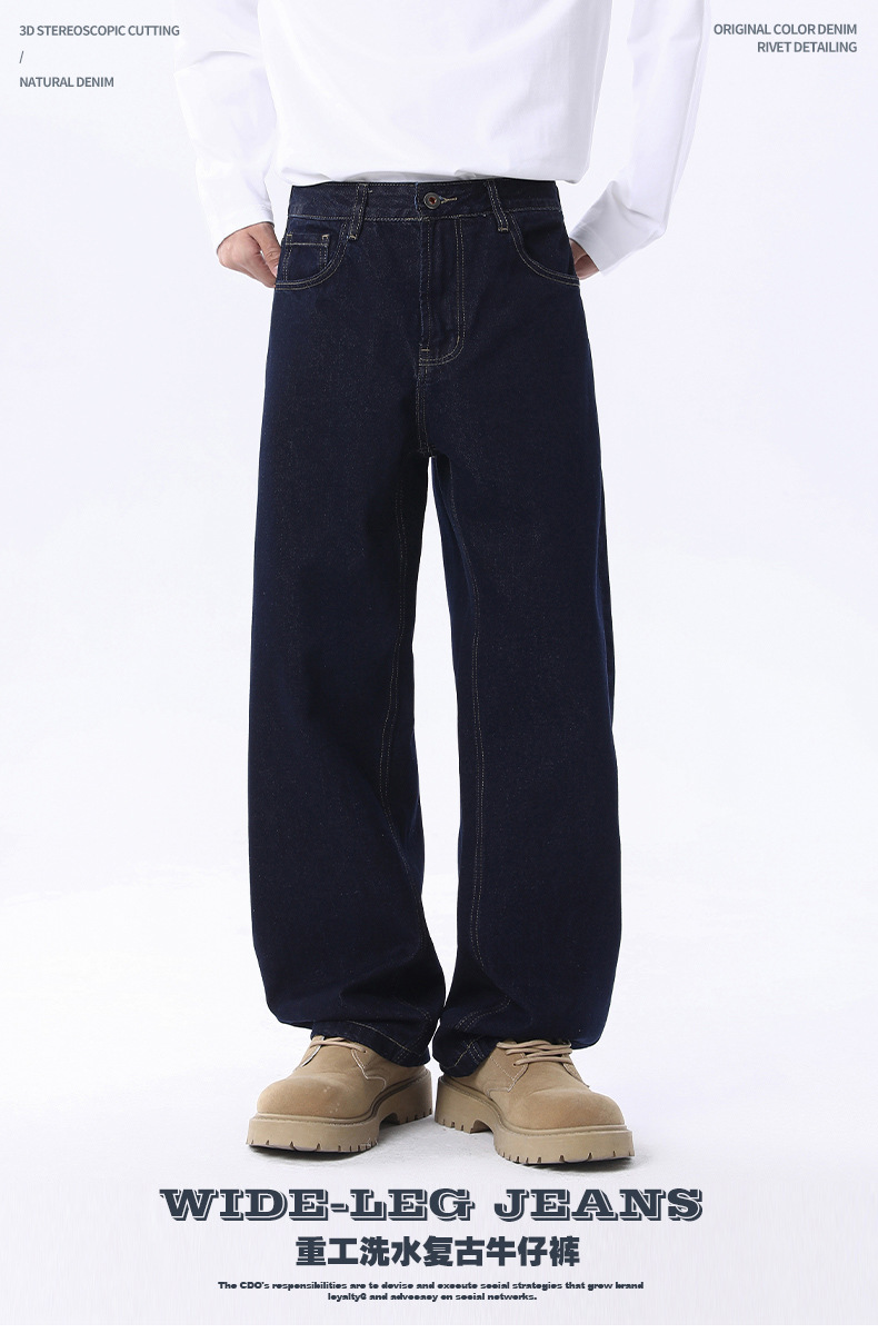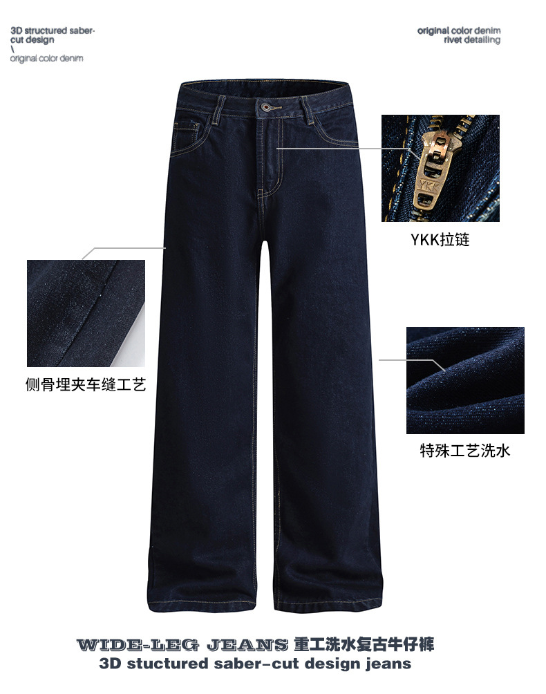 厂家直销男士复古水洗深蓝牛仔裤,宽松直筒设计,秋春休闲长裤,青春流行款式