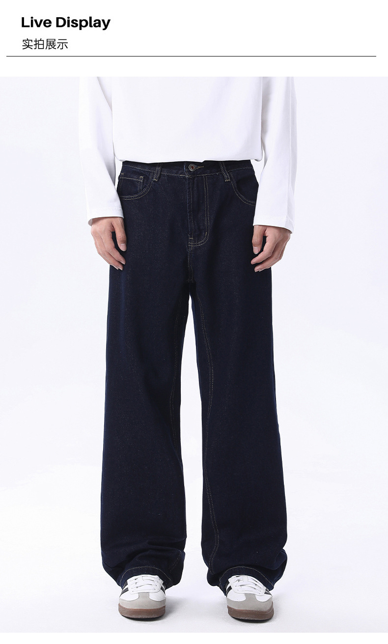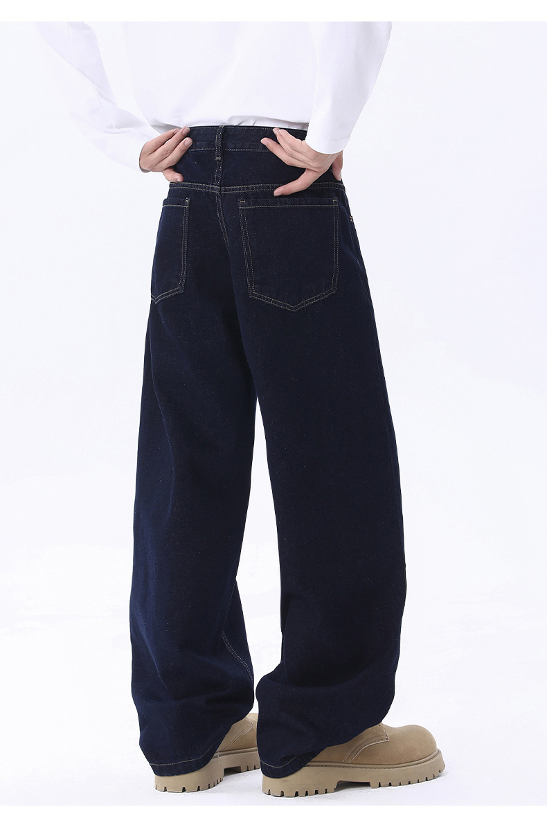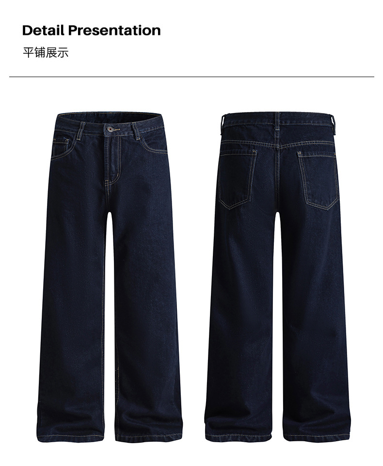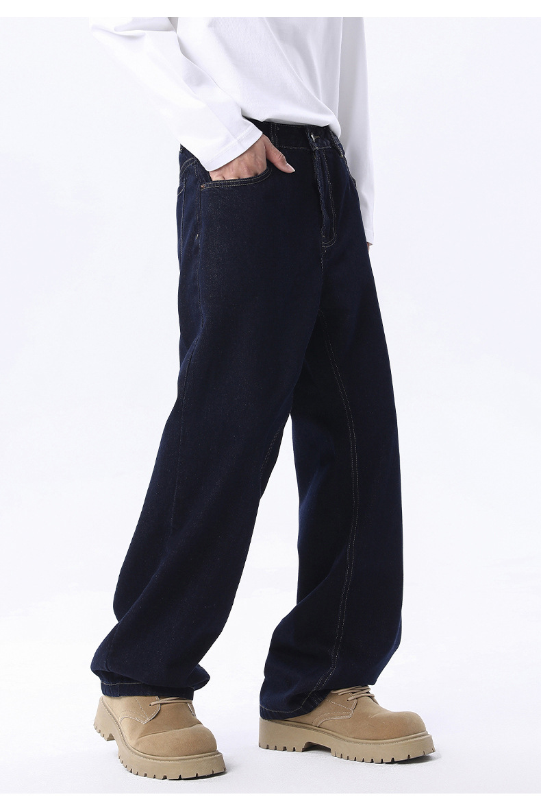 厂家直销男士复古水洗深蓝牛仔裤,宽松直筒设计,秋春休闲长裤,青春流行款式