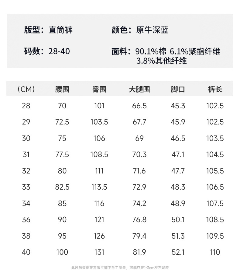 | 尺码 | 28,29,30,31,32,33,34,36,38,40 |