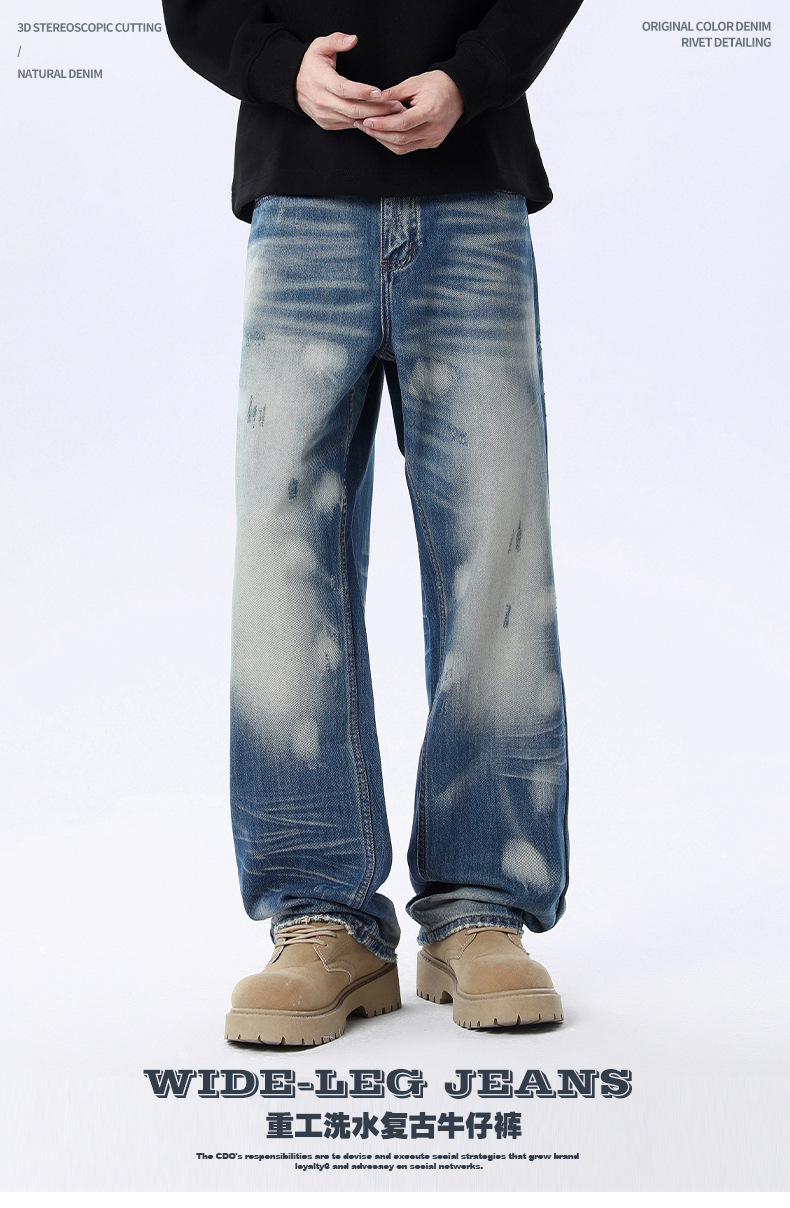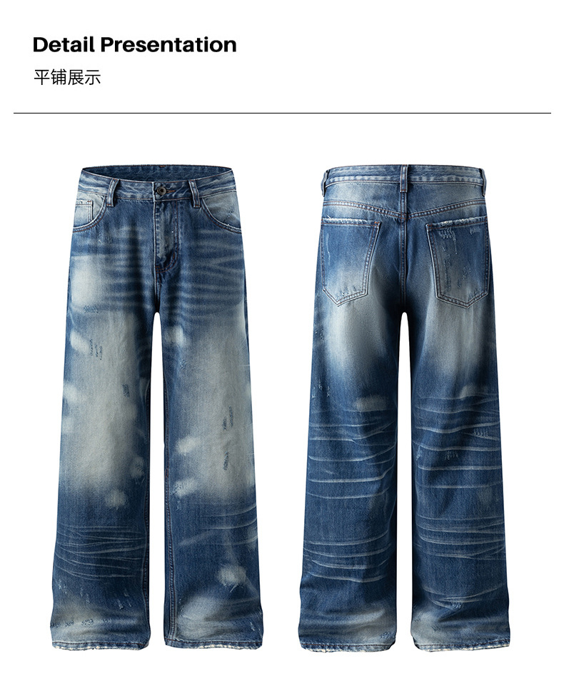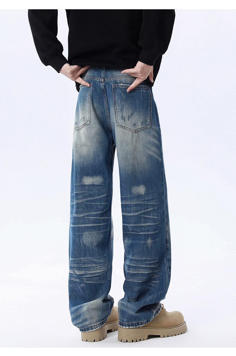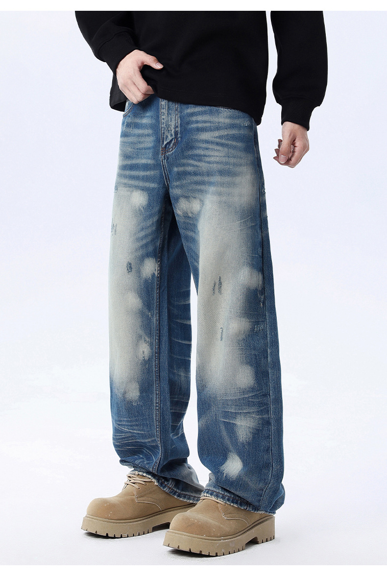 厂家直销男士宽松水洗磨白铅笔牛仔裤,秋季新款,独特设计感多口袋长裤