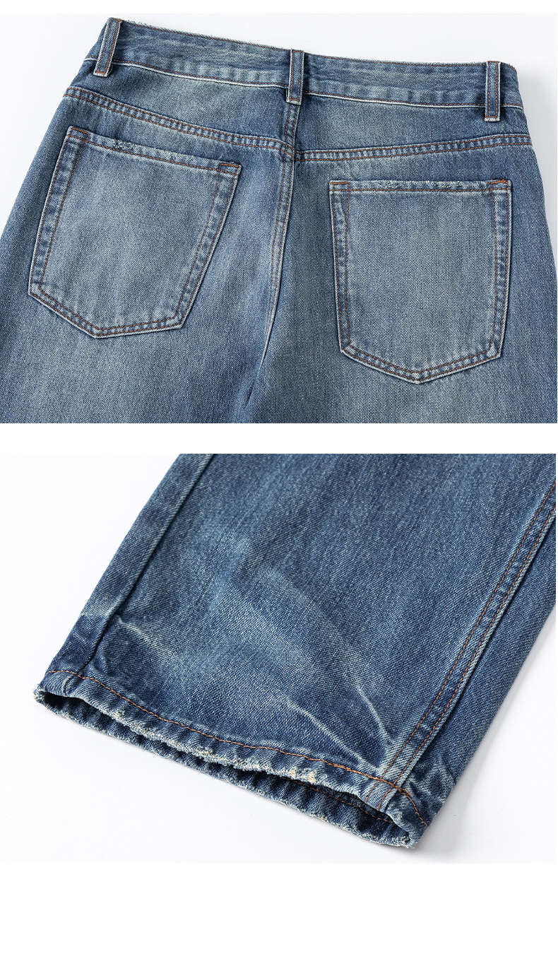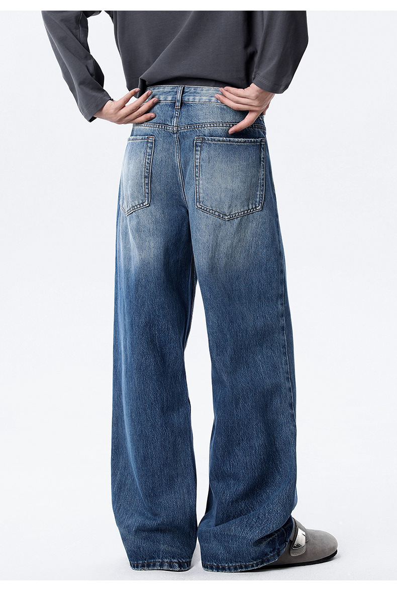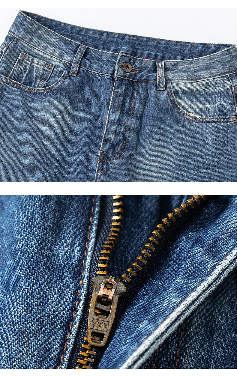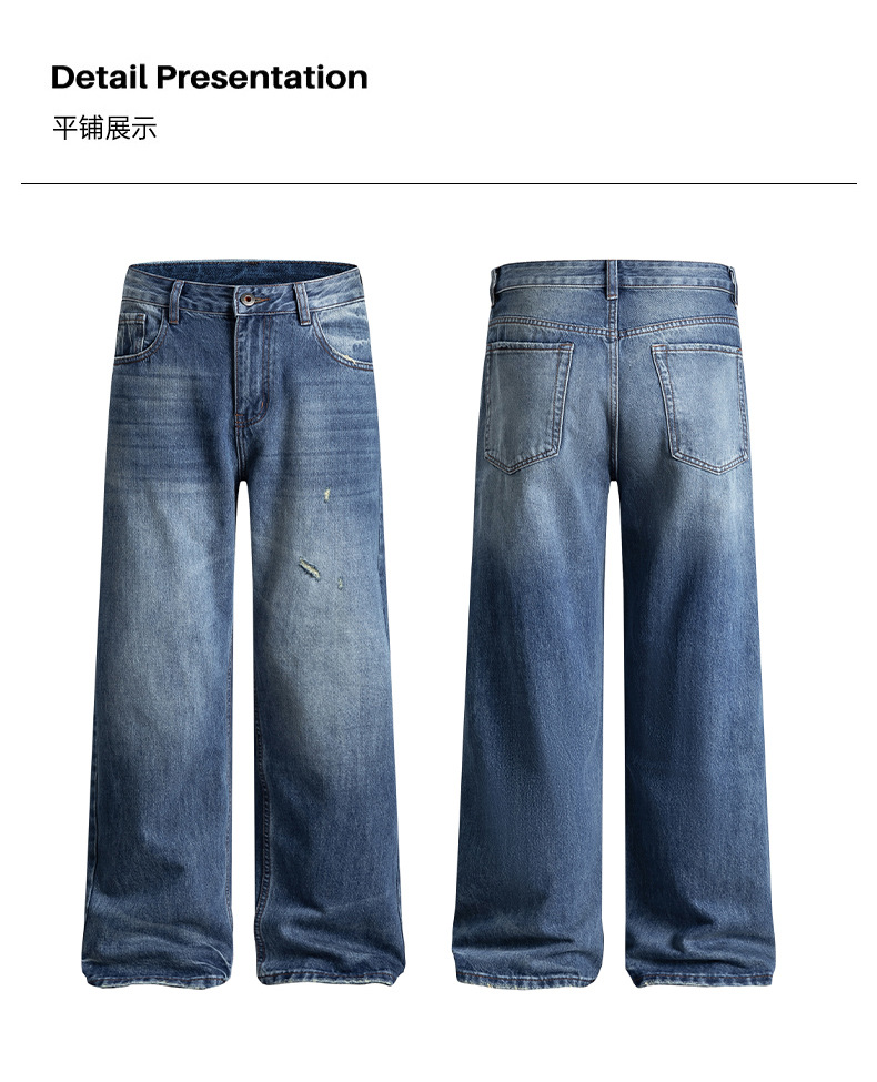 厂家直销男士修身复古蓝色牛仔裤,高街潮流直筒长裤,春秋休闲,水洗磨破设计