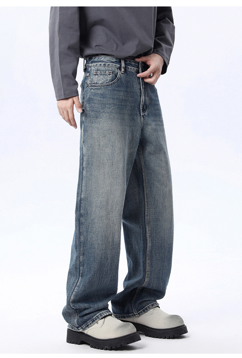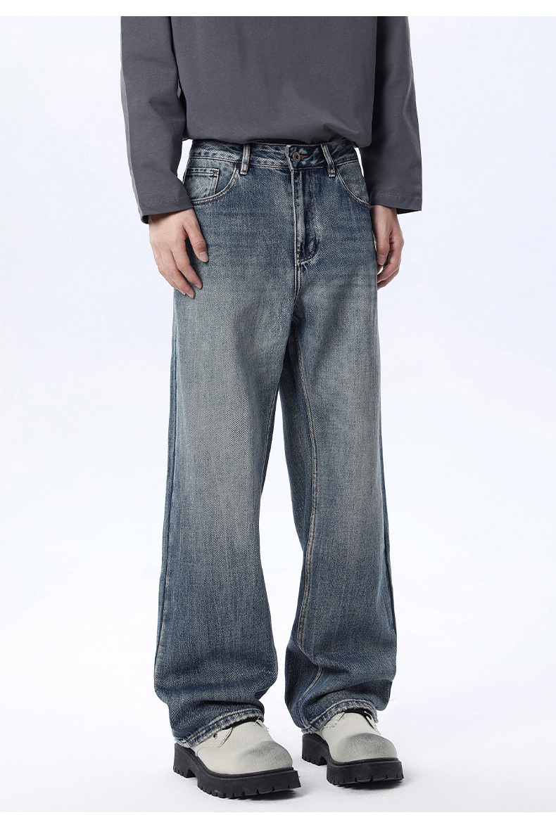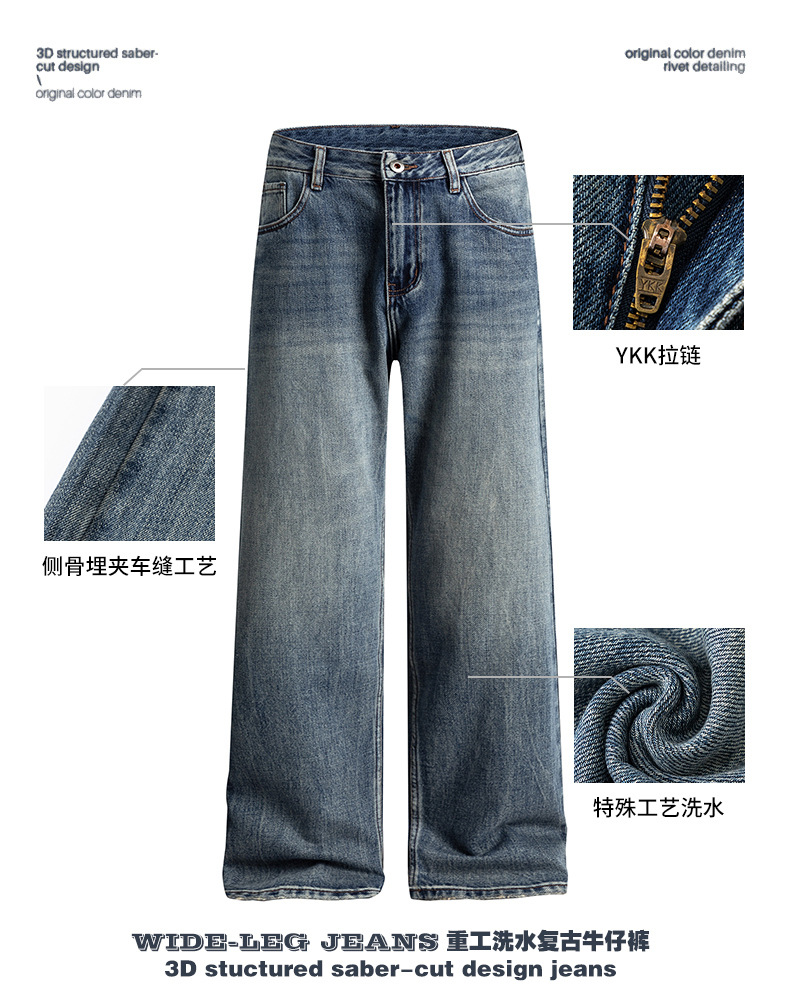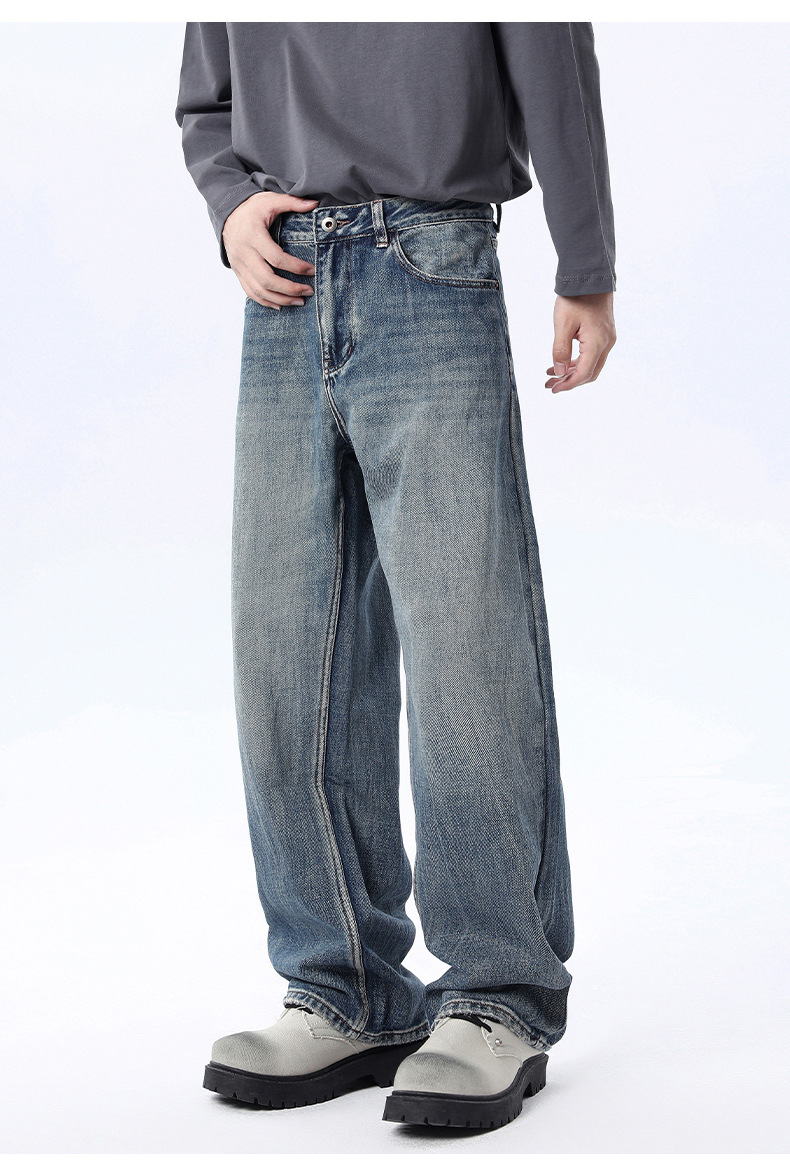 厂家直销男士宽松水洗牛仔裤,复古直筒款,春秋休闲,适合青少年日常穿着