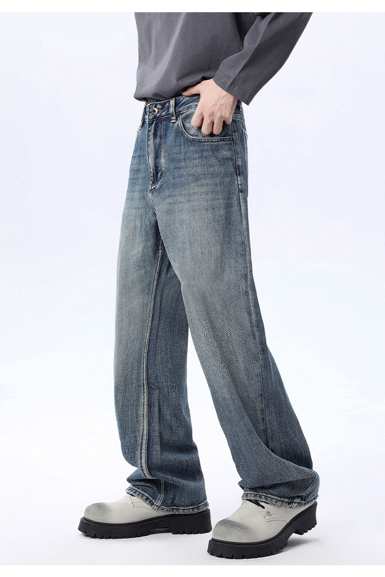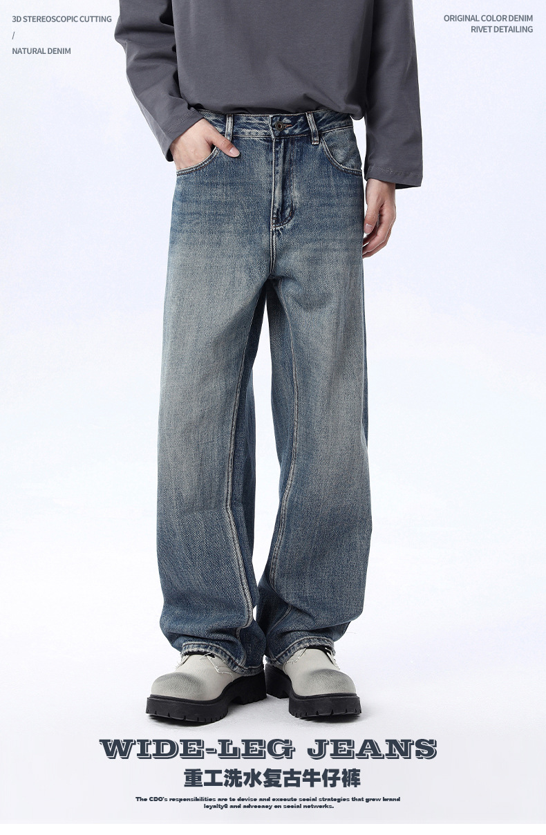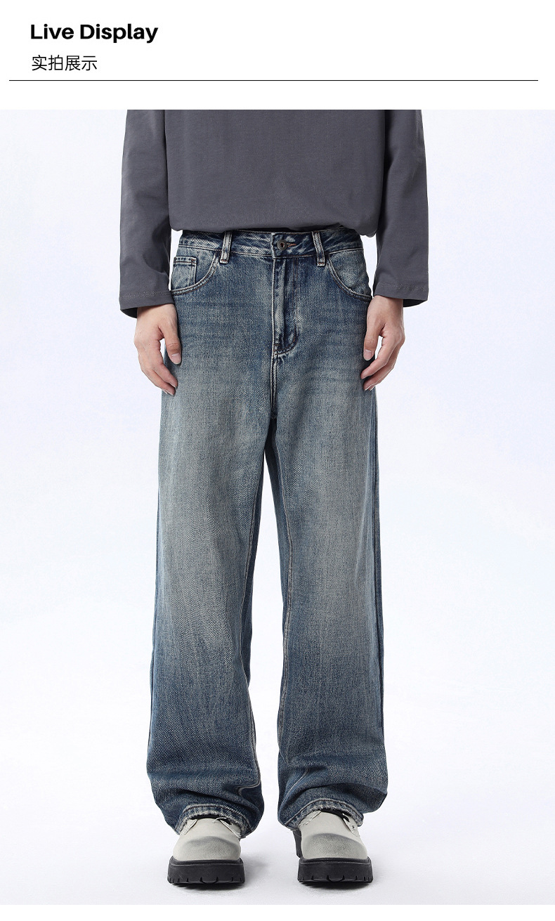 厂家直销男士宽松水洗牛仔裤,复古直筒款,春秋休闲,适合青少年日常穿着