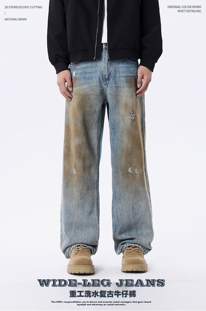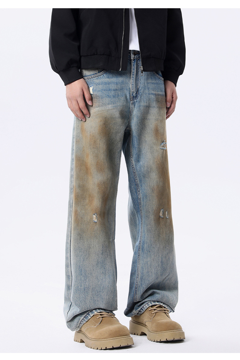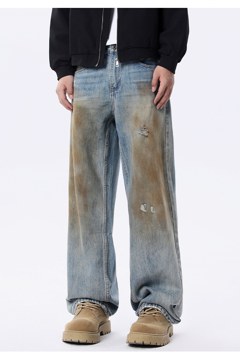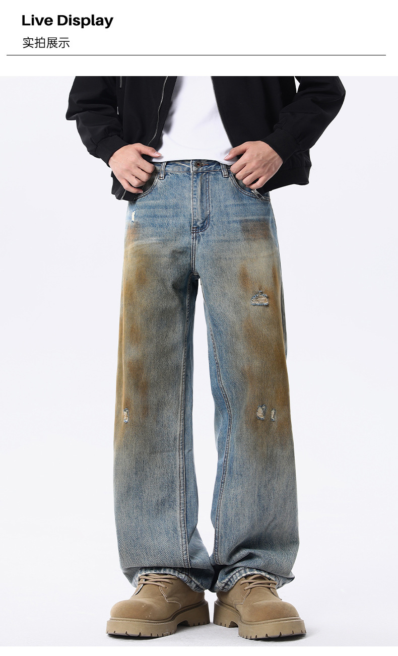 厂家直销男士宽松涂鸦牛仔裤,休闲风格,水洗做旧设计,春秋季可搭配日常穿着