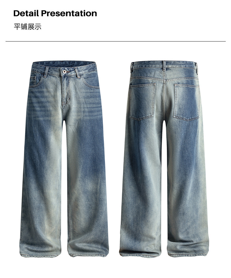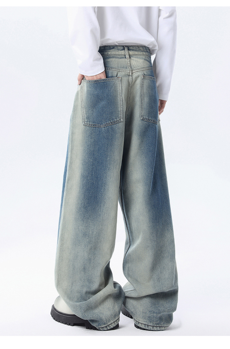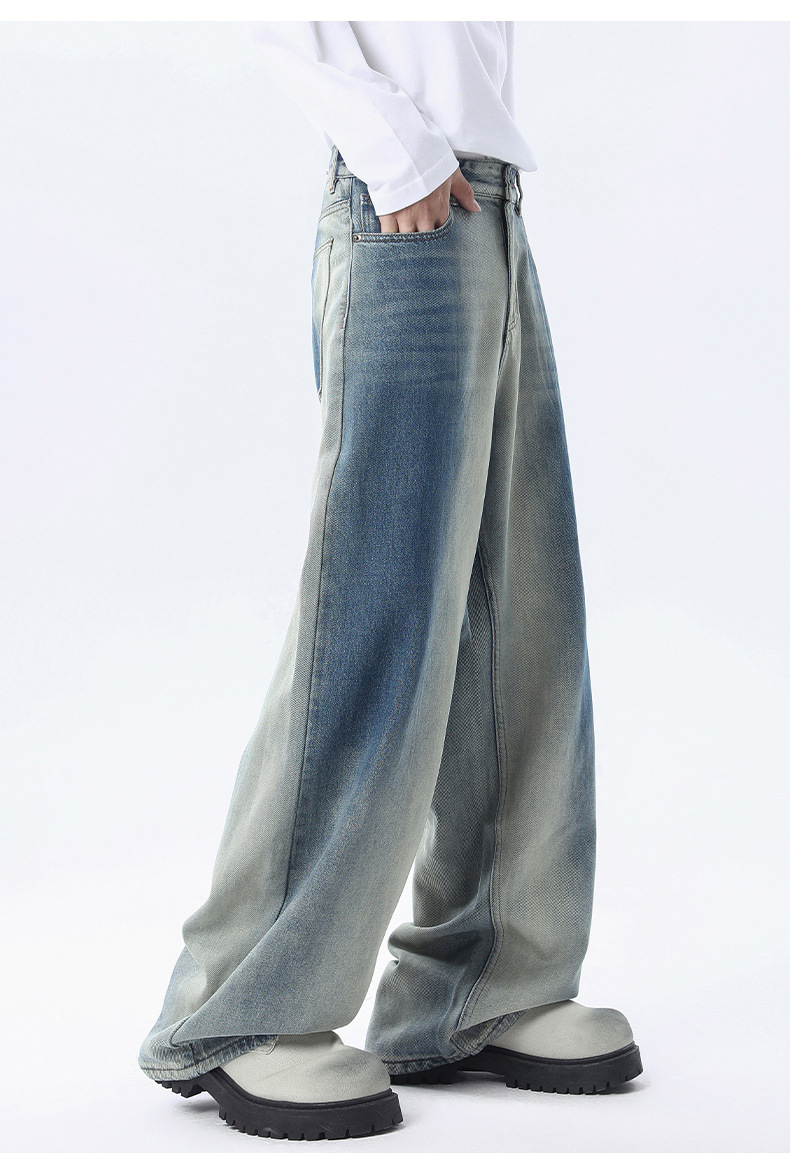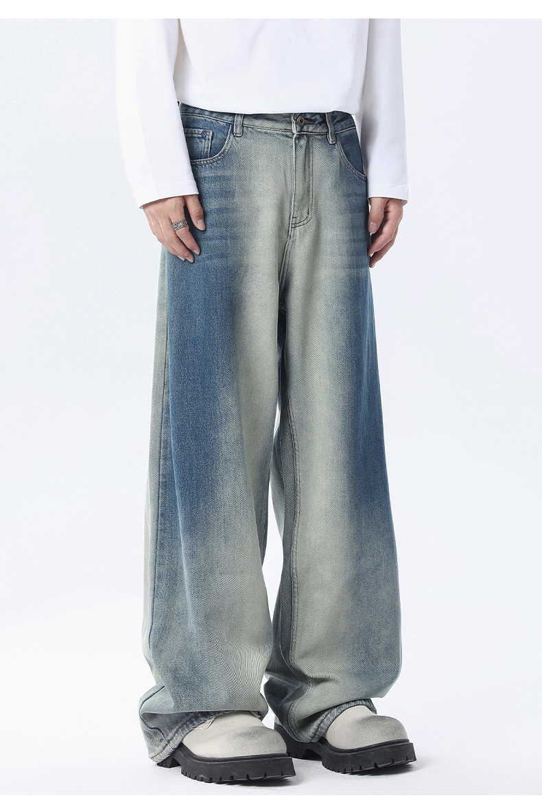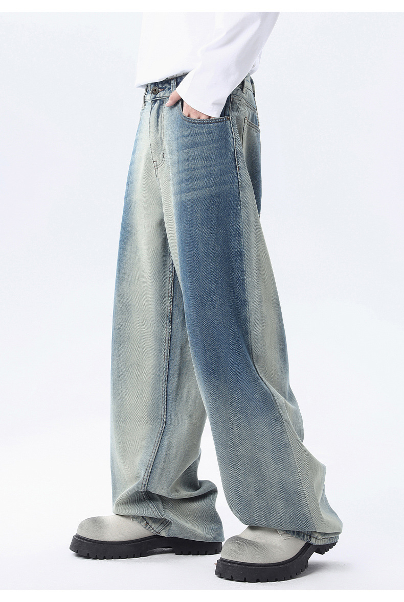 厂家直销男士宽松水洗渐变牛仔裤,秋冬时尚直筒阔腿裤,适合日常休闲,青春潮流风格