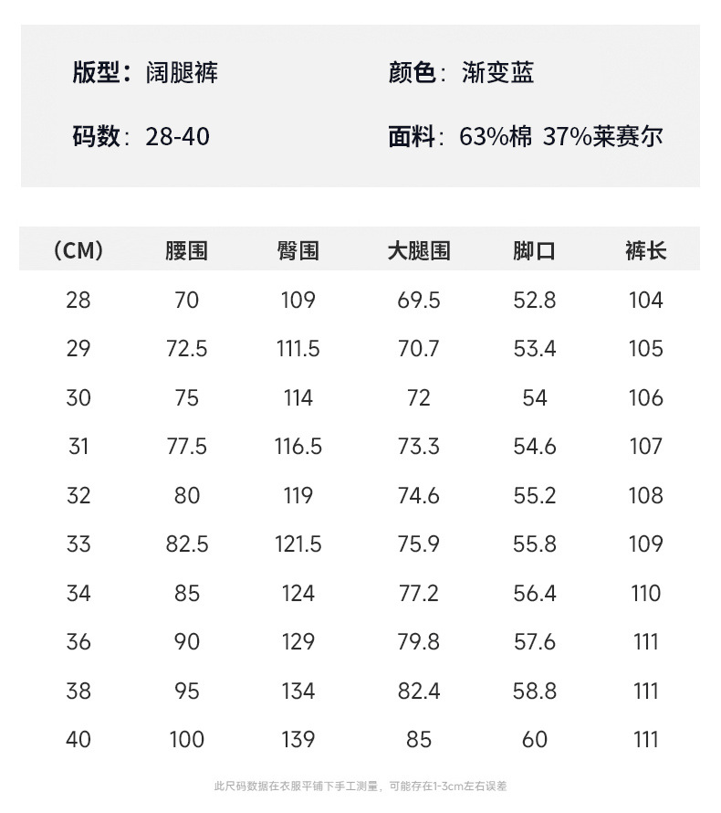 | 尺码 | 28,29,30,31,32,33,34,36,38,40 |
