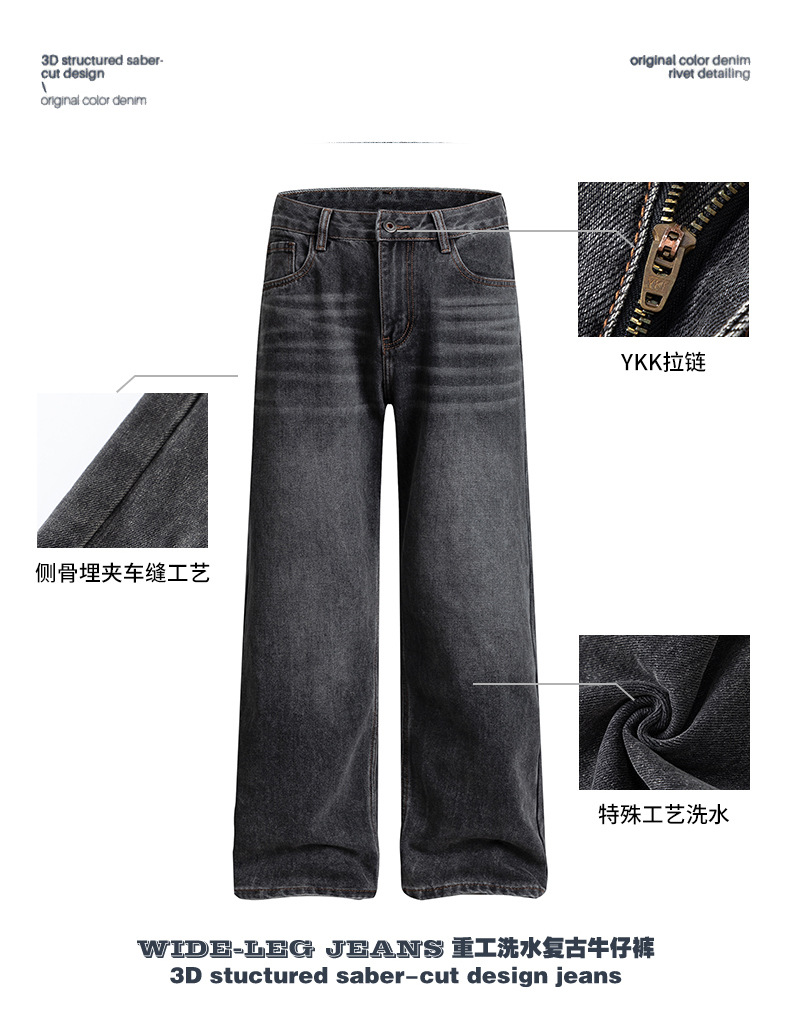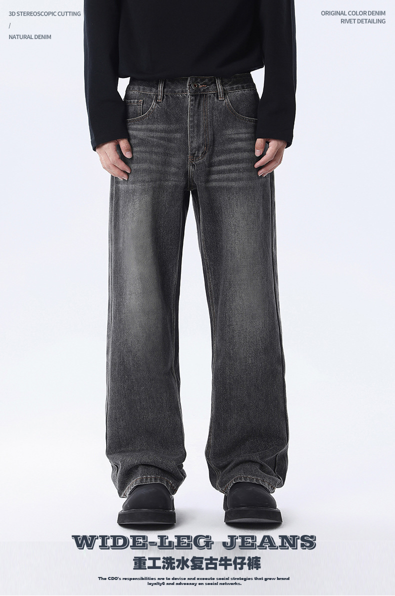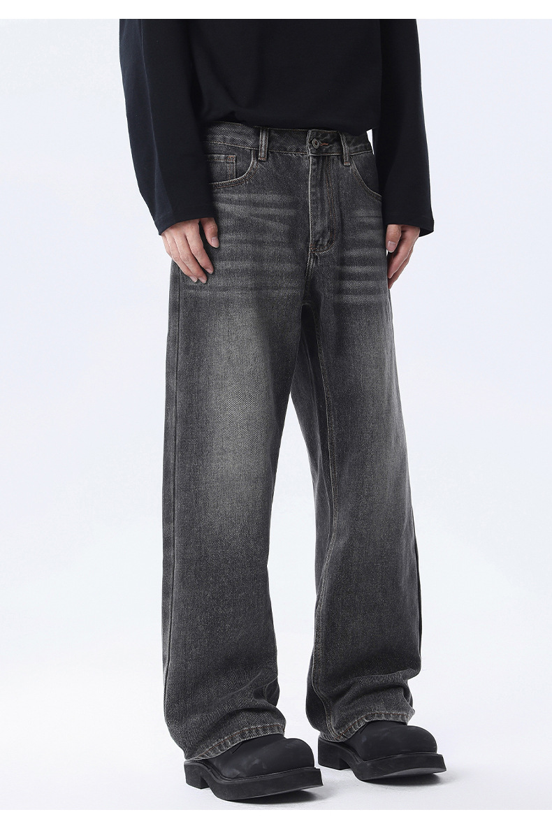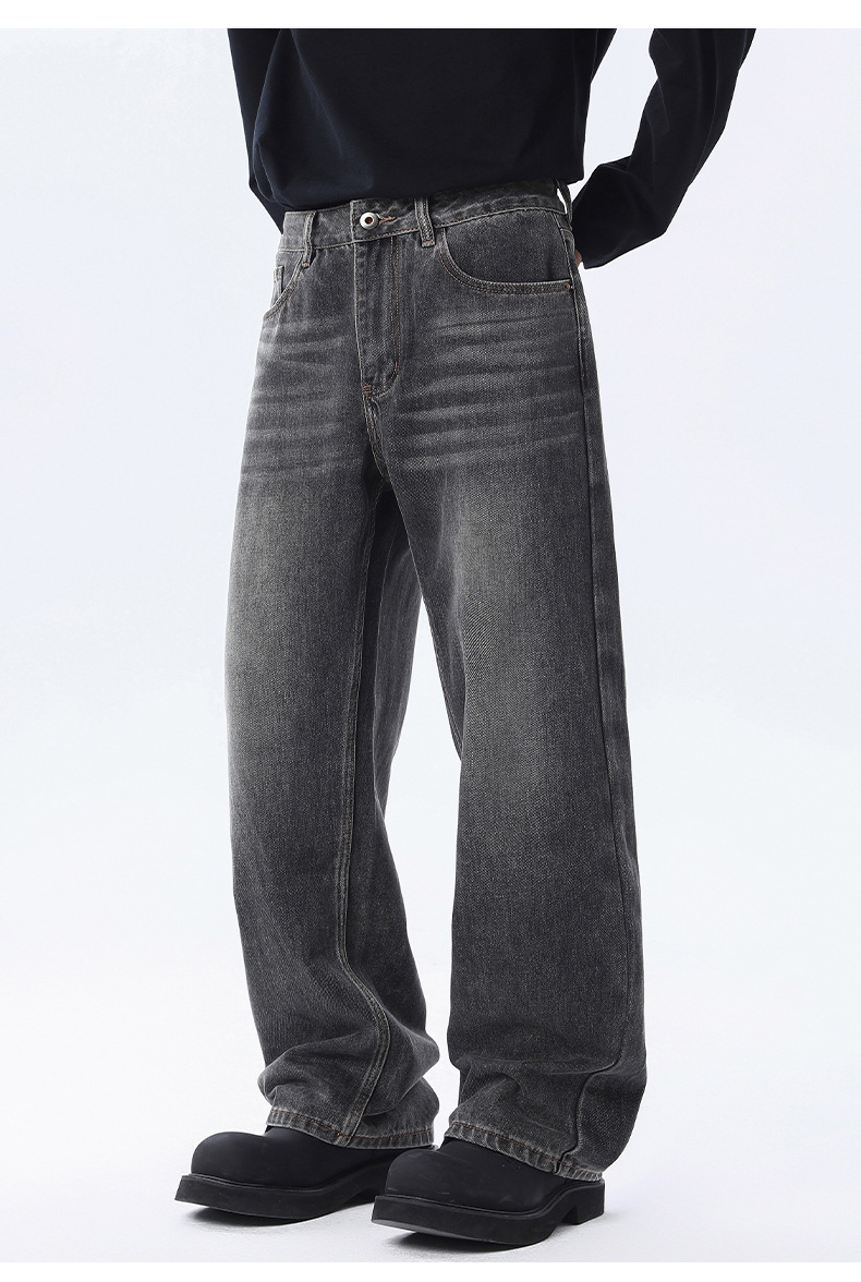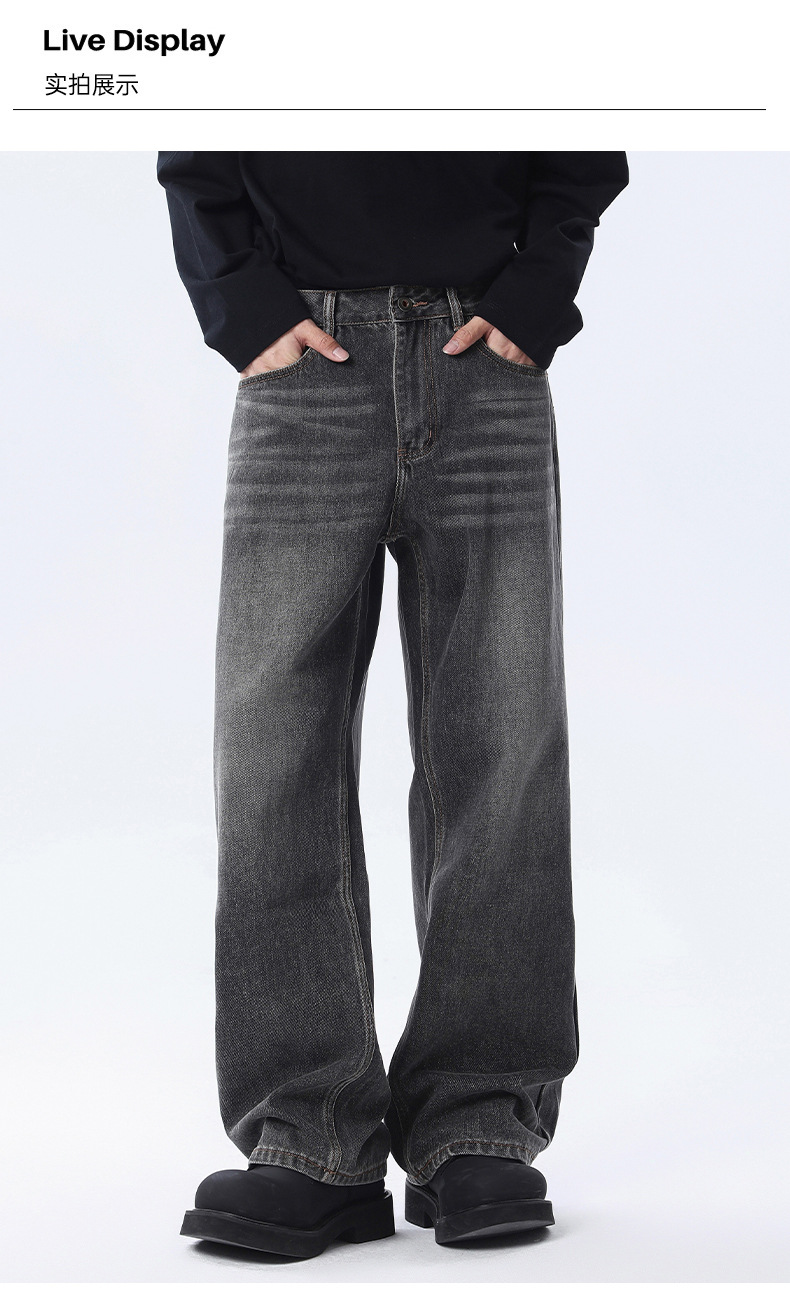 厂家直销男士复古水洗牛仔裤,宽松直筒长裤,秋季休闲,时尚潮流【莱客】