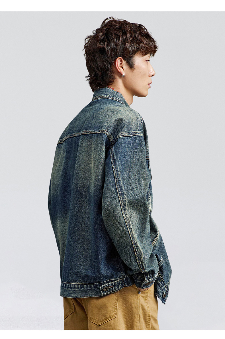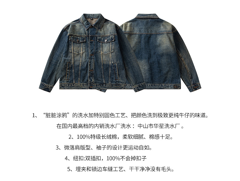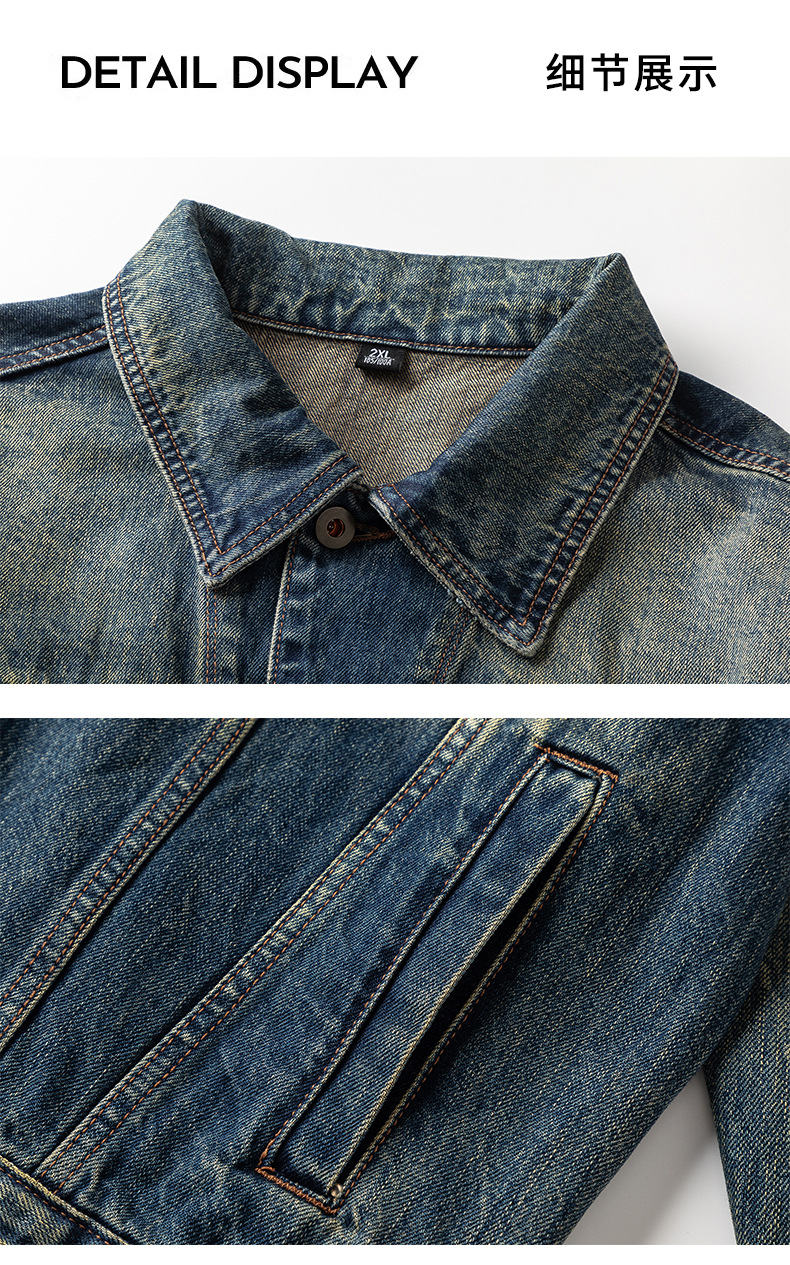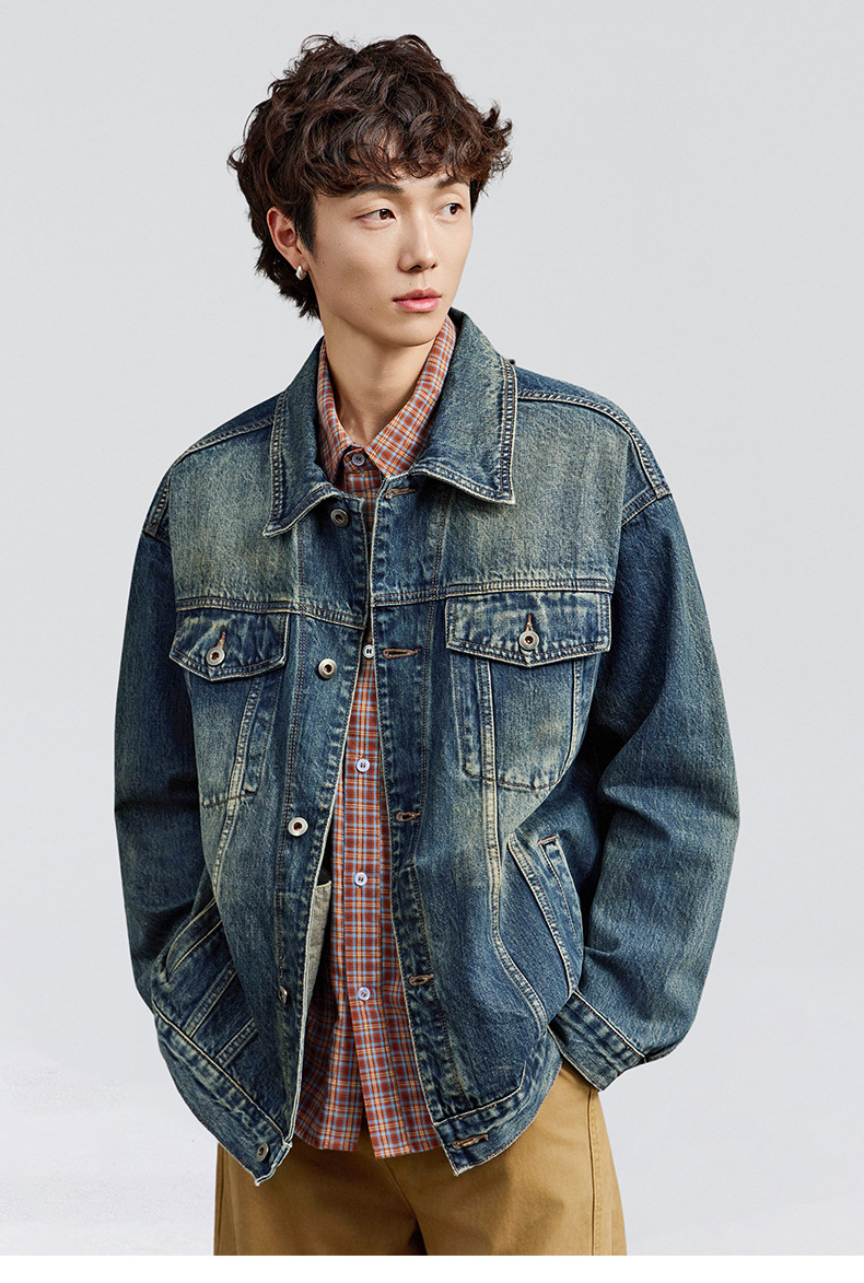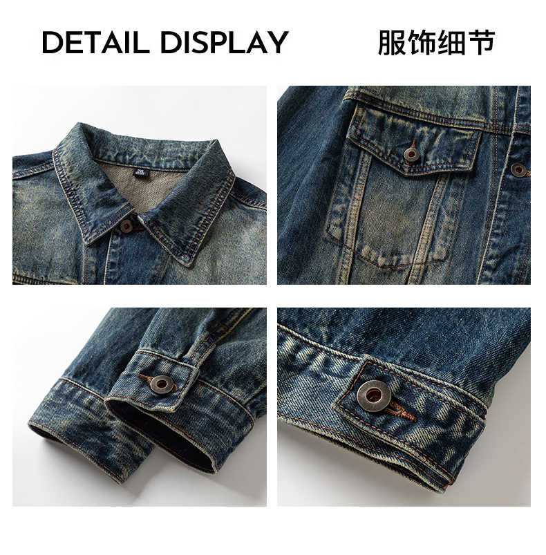 厂家直销男士宽松牛仔外套,复古水洗翻领夹克,适合春秋季日常穿搭,多口袋设计