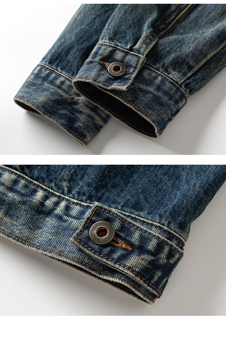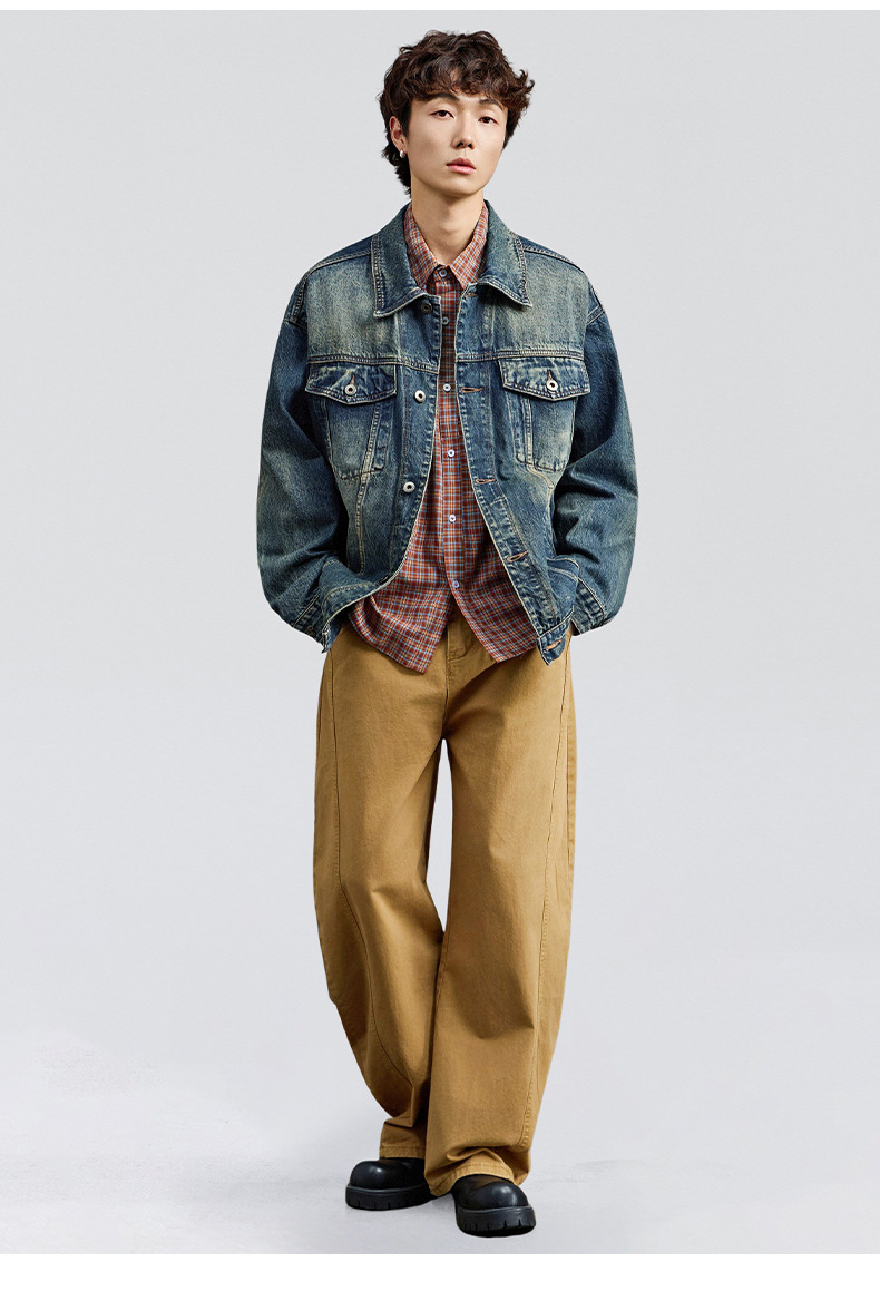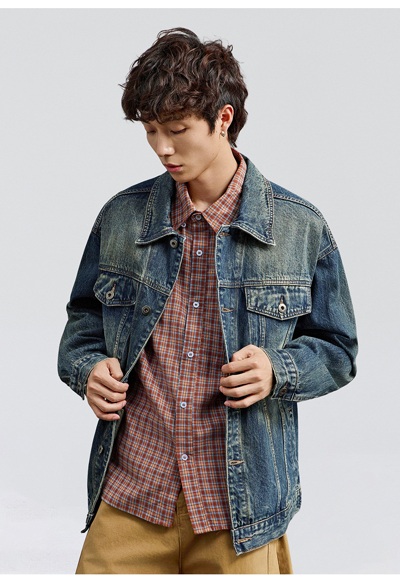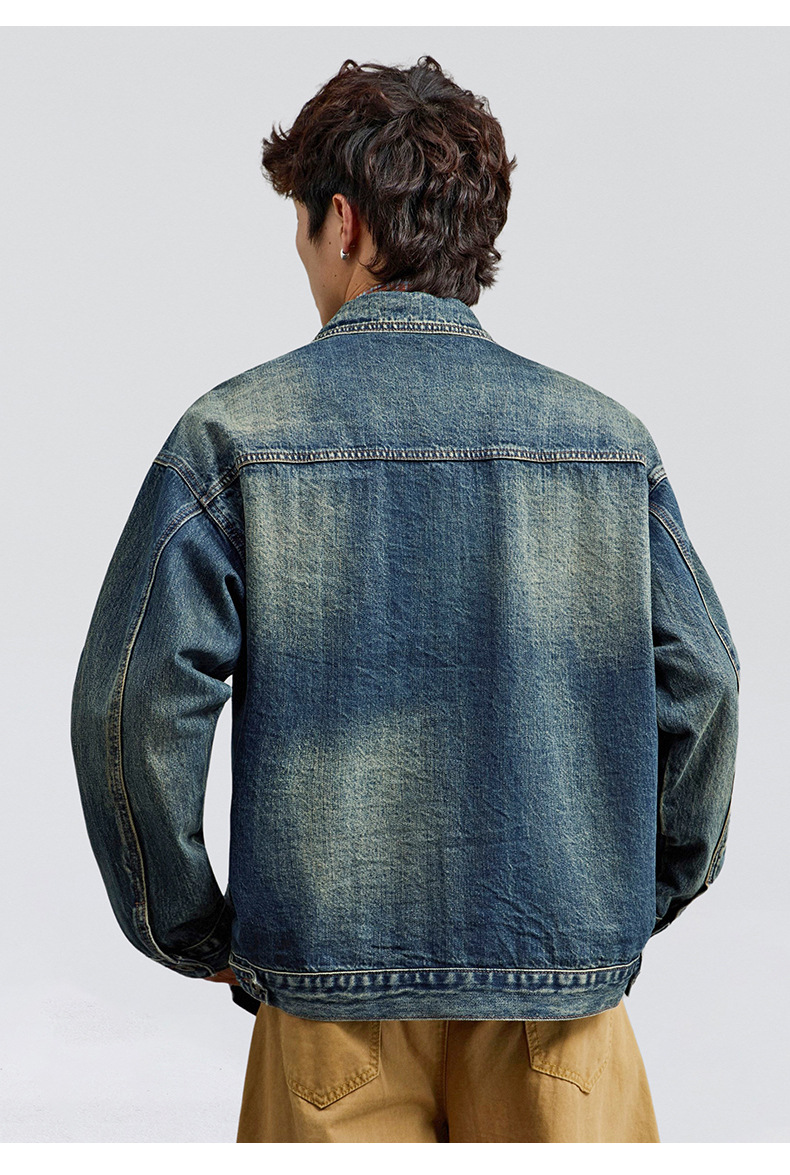 厂家直销男士宽松牛仔外套,复古水洗翻领夹克,适合春秋季日常穿搭,多口袋设计