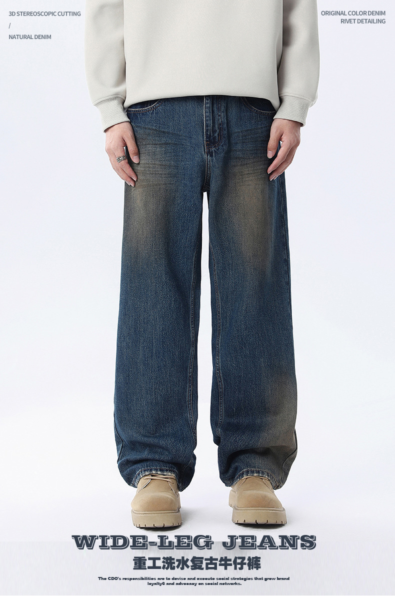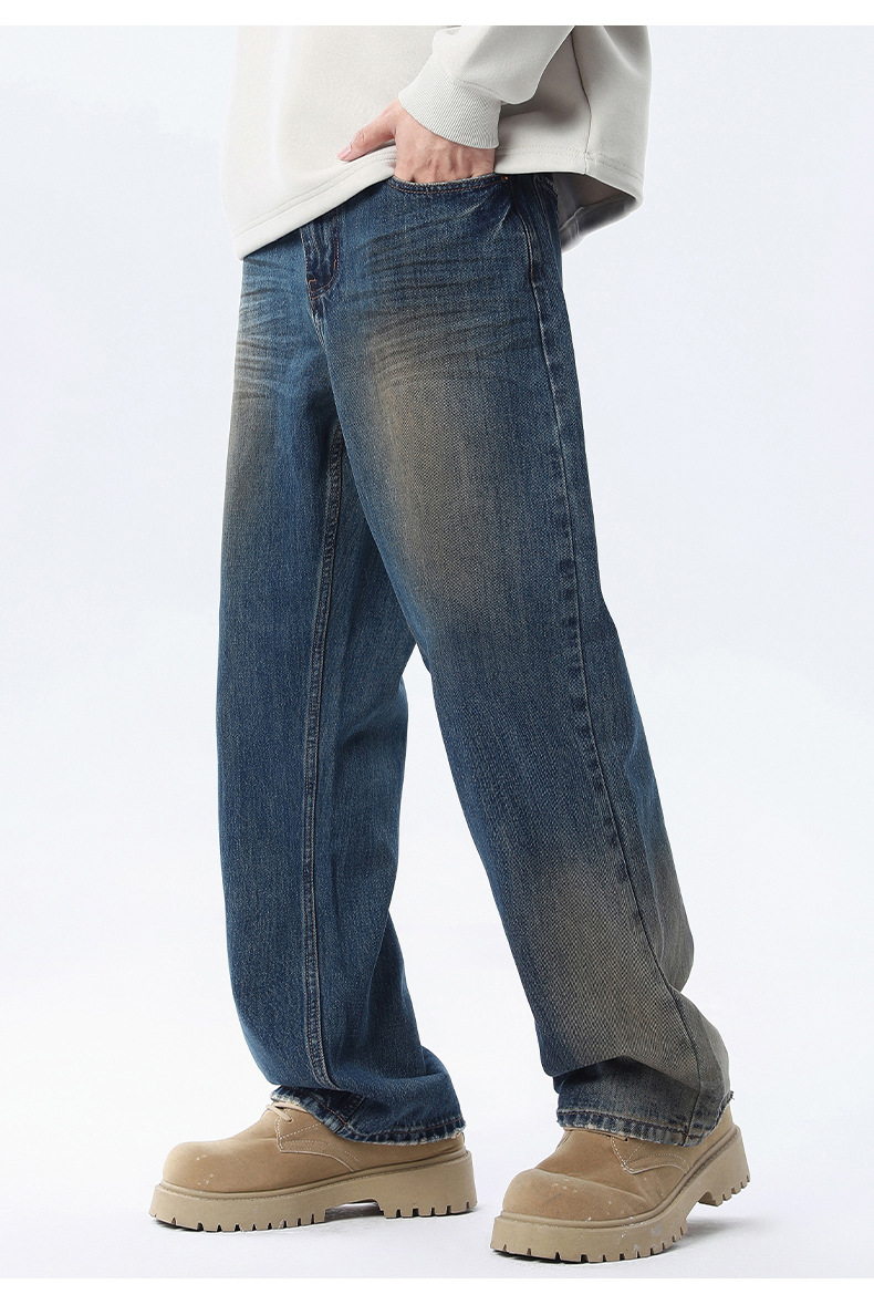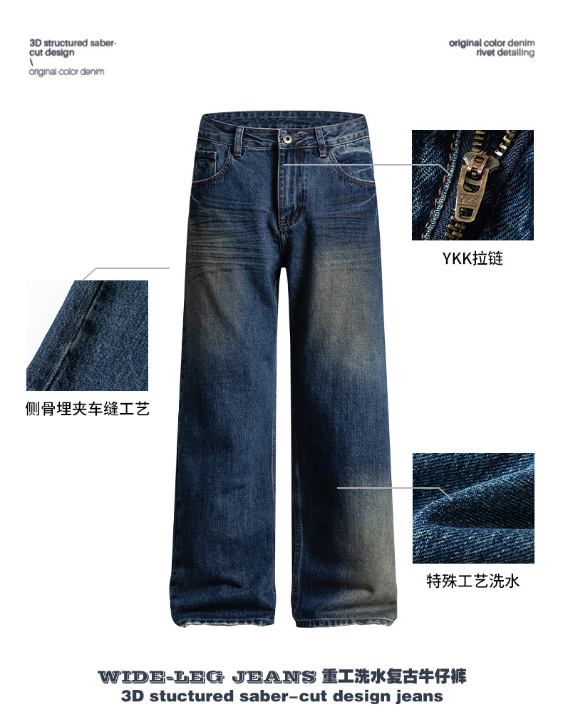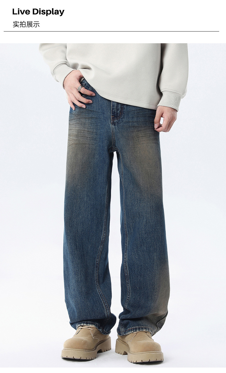 厂家直销男士复古水洗牛仔裤,宽松直筒微阔腿,适合春秋日常穿搭,百搭修身设计
