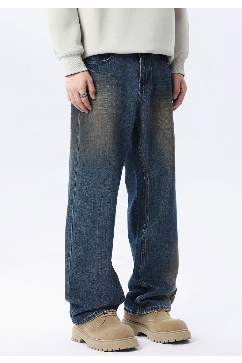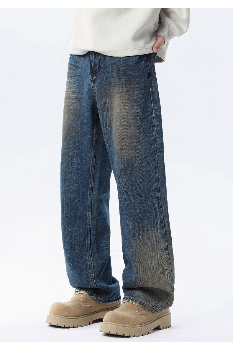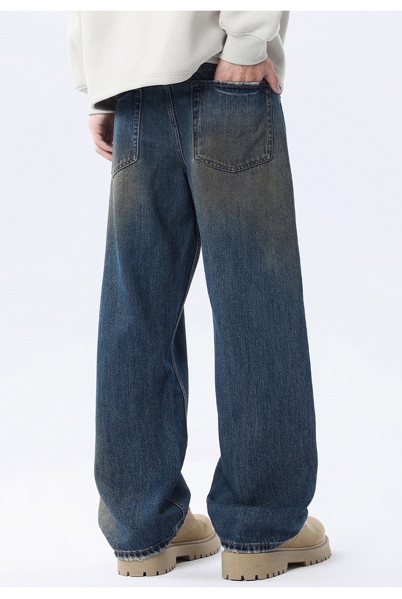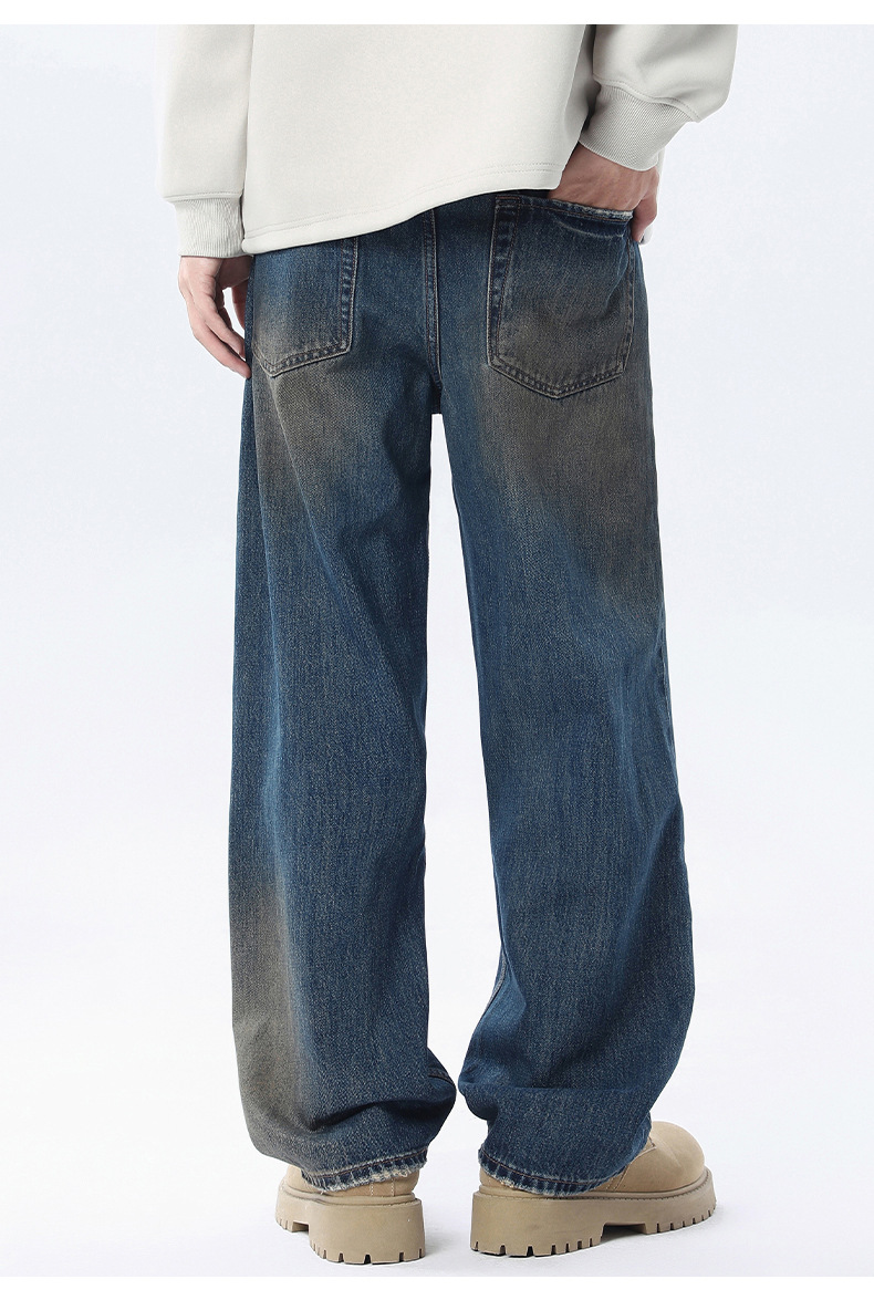 厂家直销男士复古水洗牛仔裤,宽松直筒微阔腿,适合春秋日常穿搭,百搭修身设计