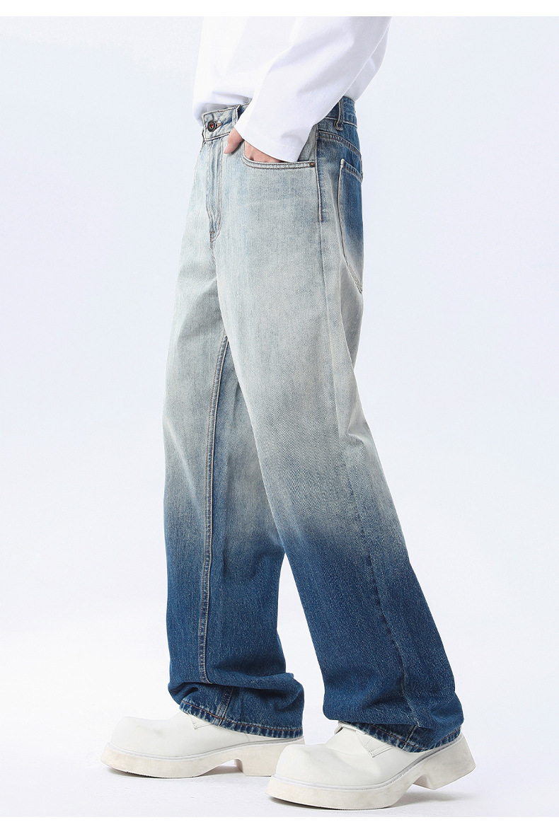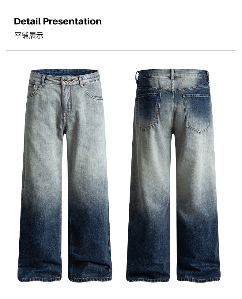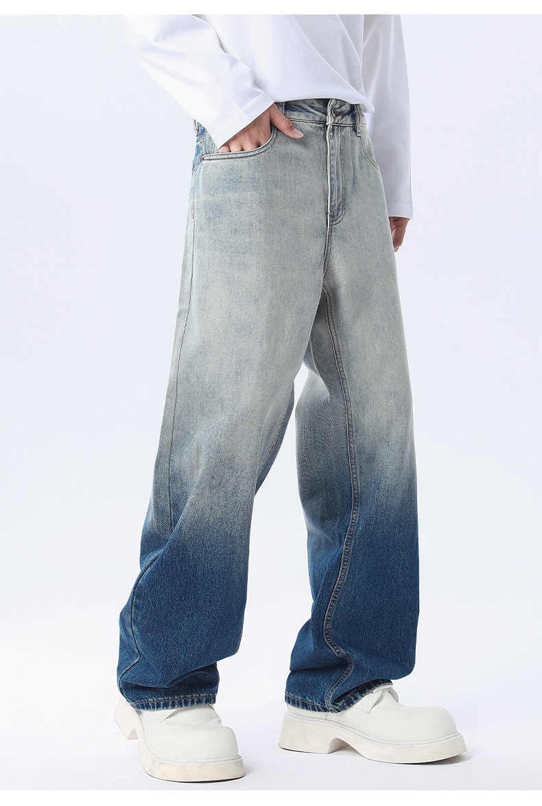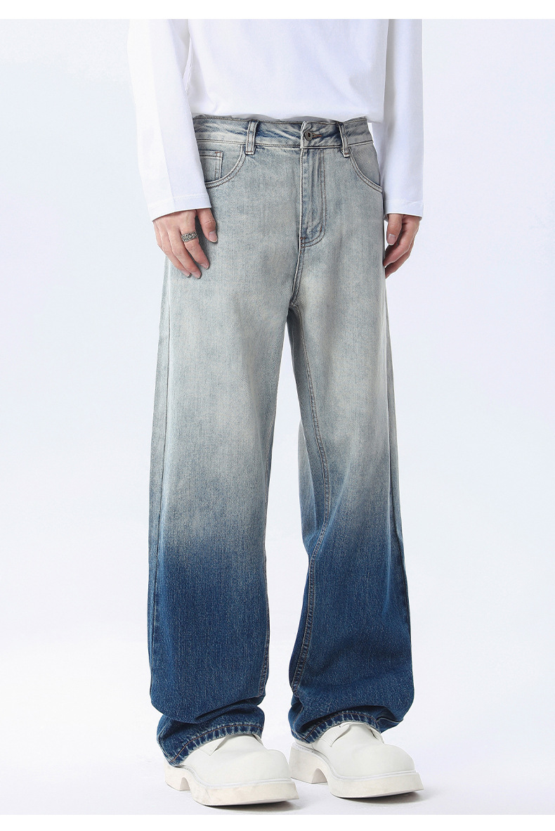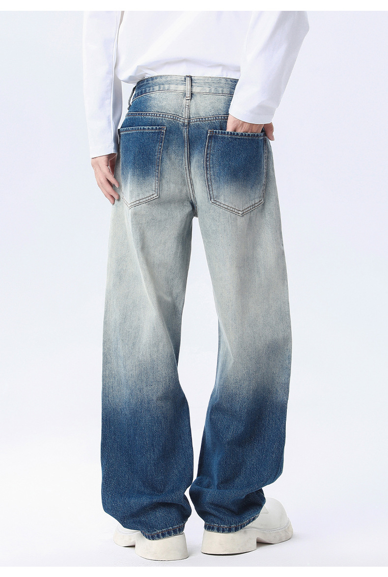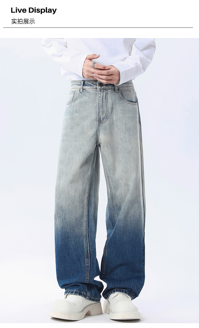 厂家直销男士宽松水洗牛仔裤,潮流渐变设计,直筒版型,秋季休闲,日常百搭