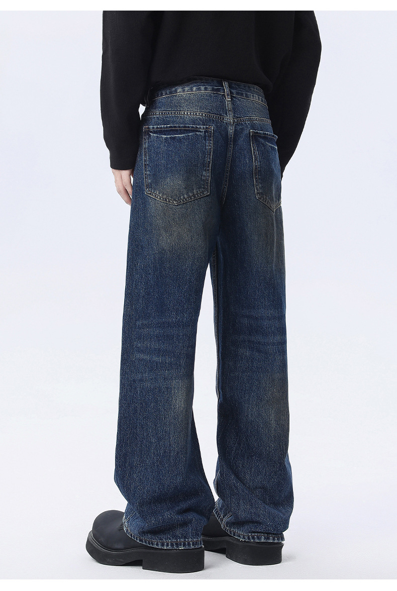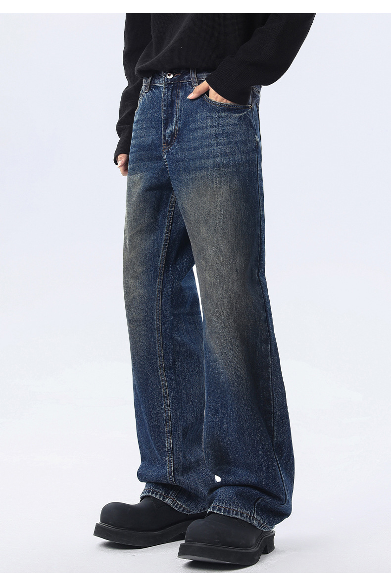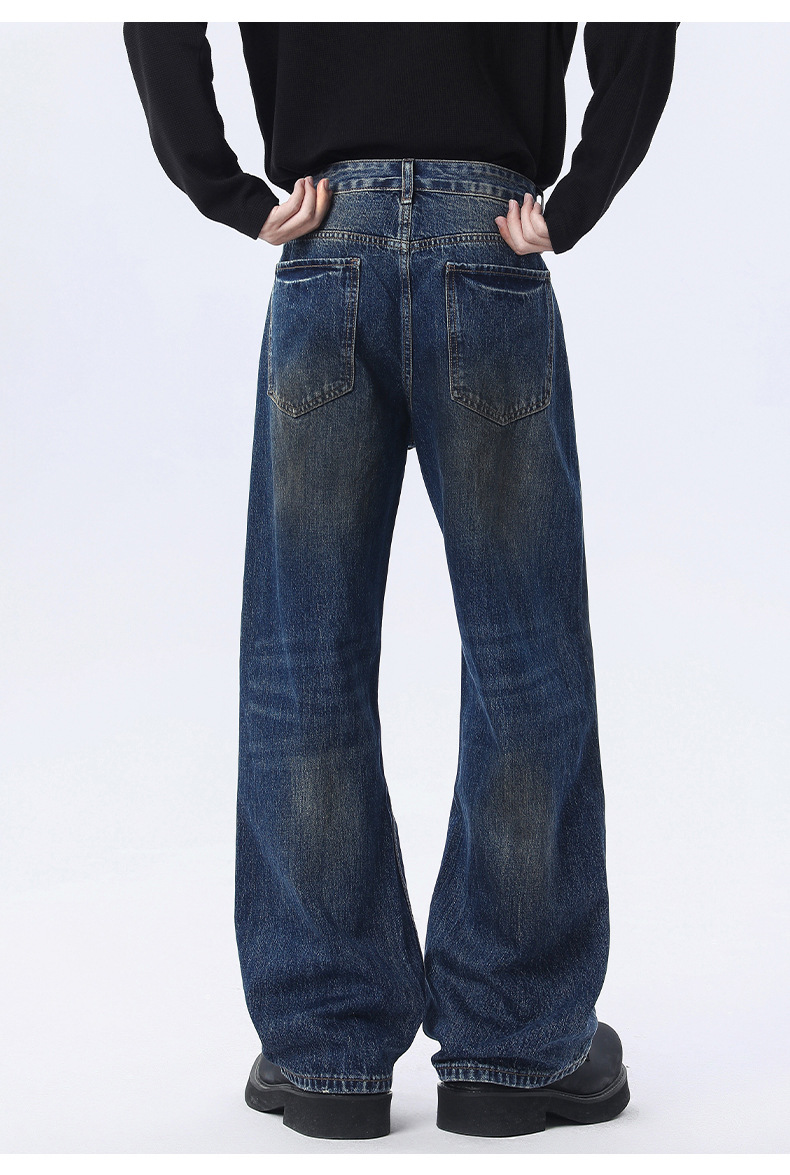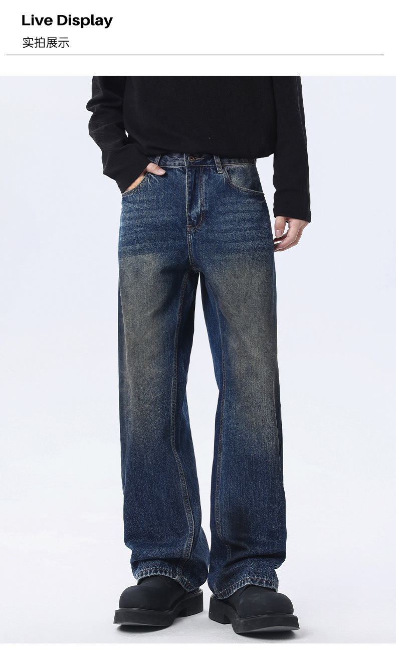 厂家直销男士宽松水洗脏脏牛仔裤,复古直筒长裤,春秋休闲风格,日常穿搭必备
