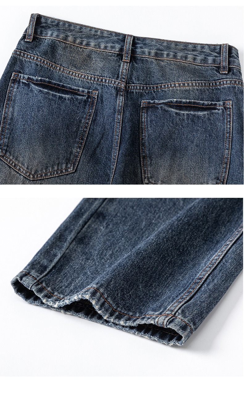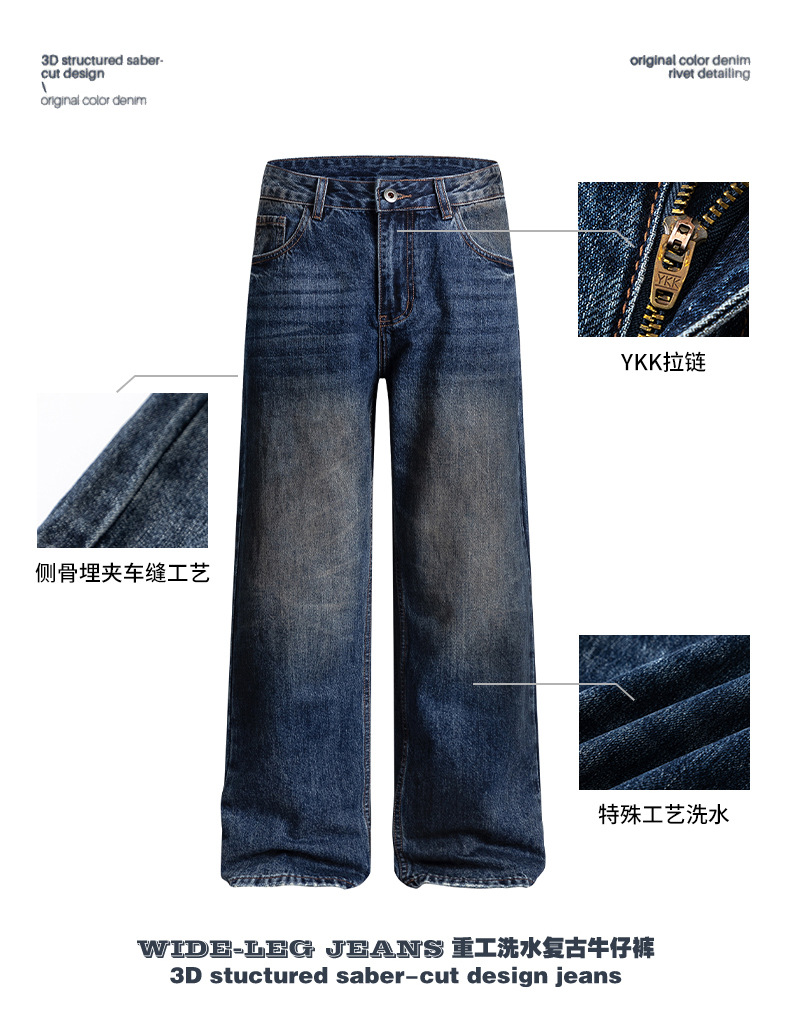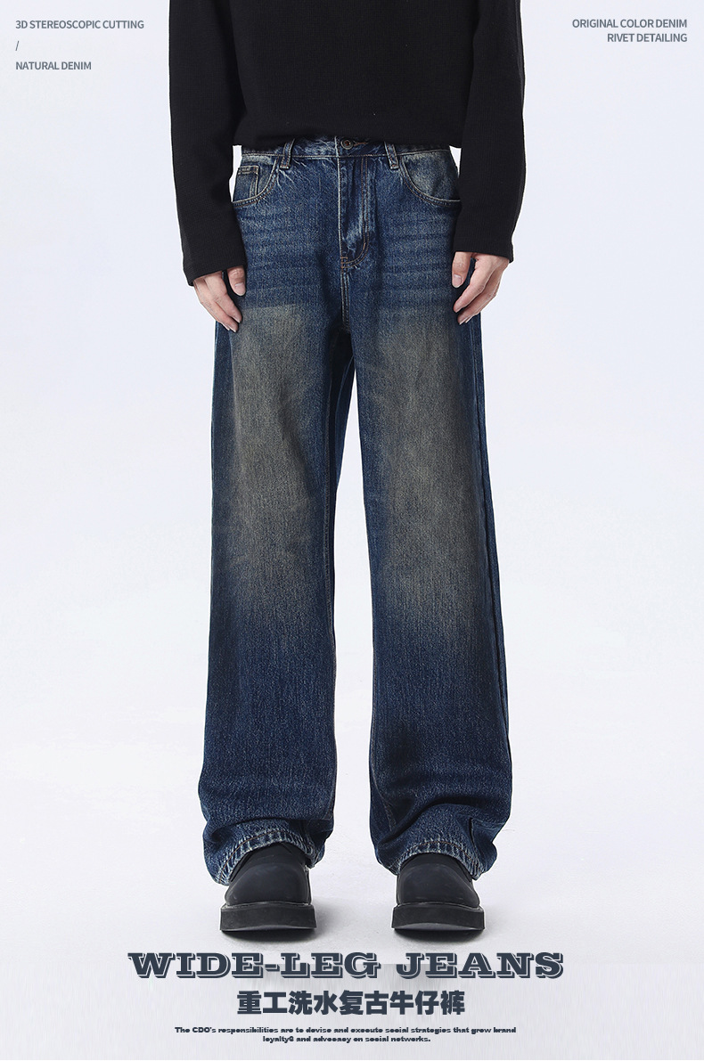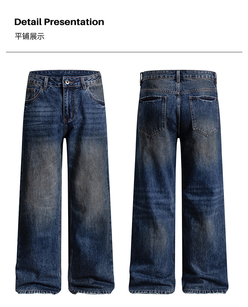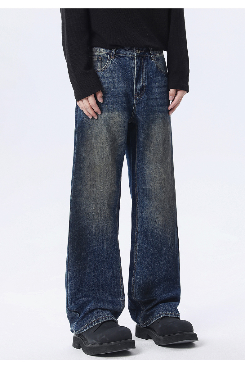 厂家直销男士宽松水洗脏脏牛仔裤,复古直筒长裤,春秋休闲风格,日常穿搭必备