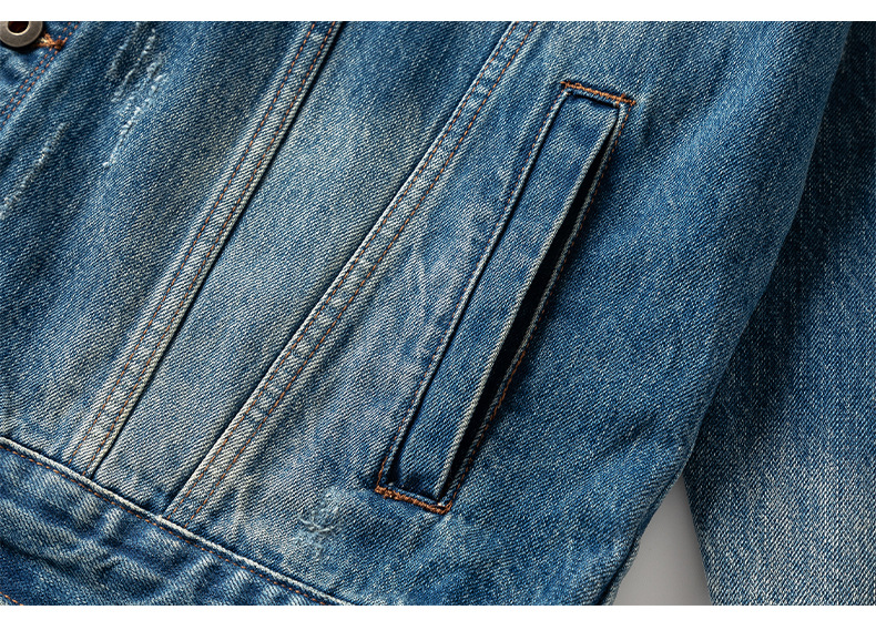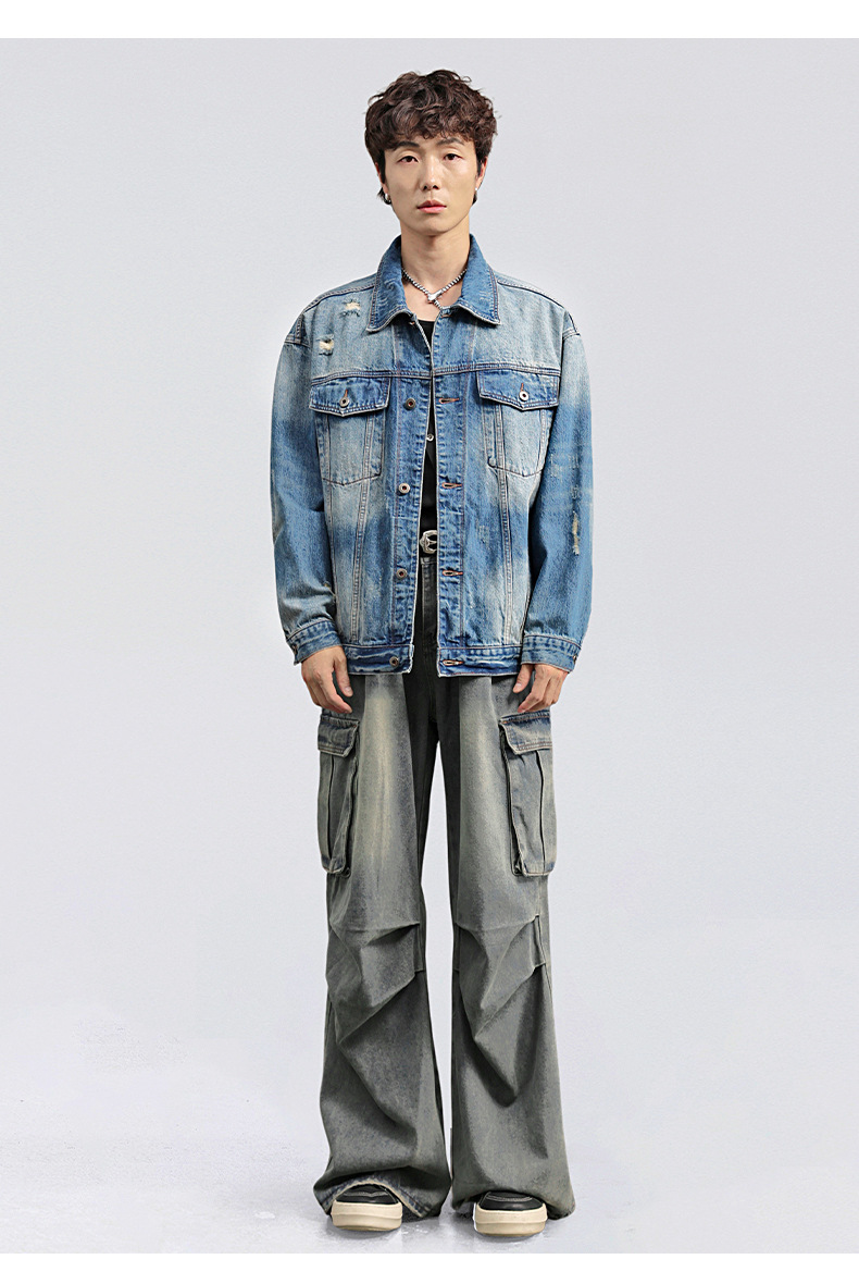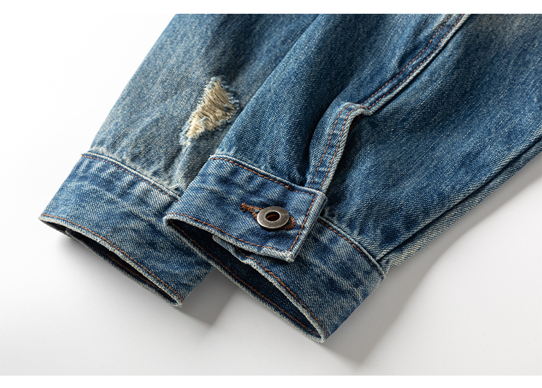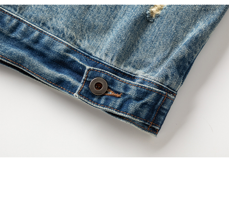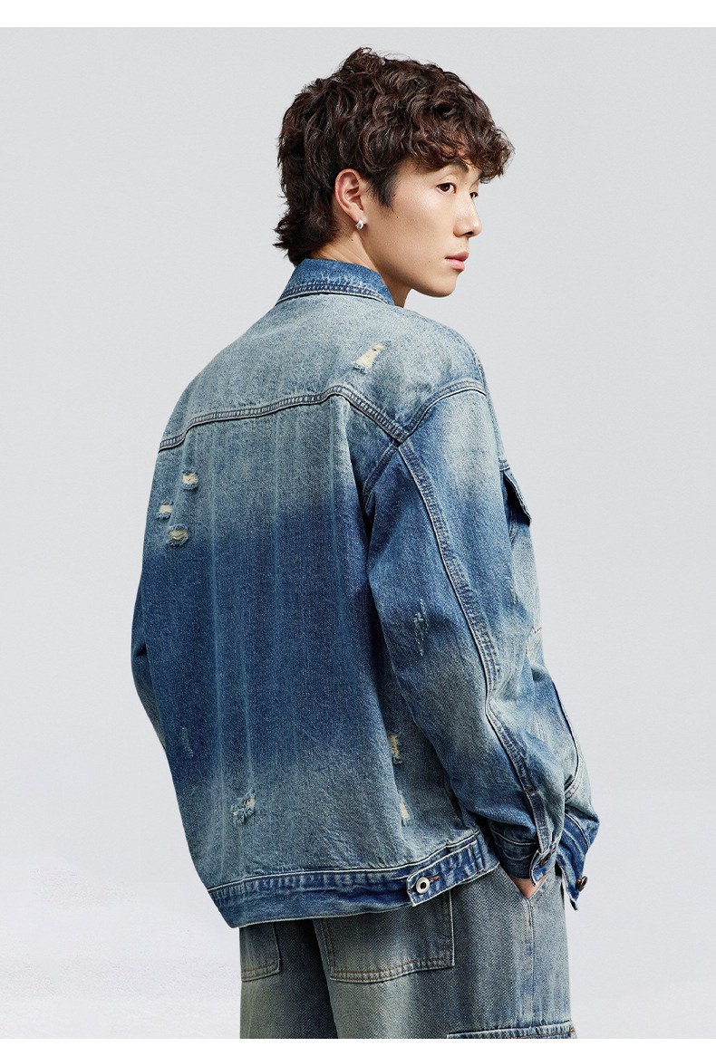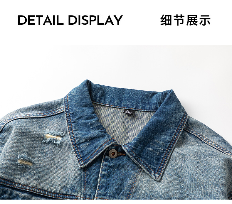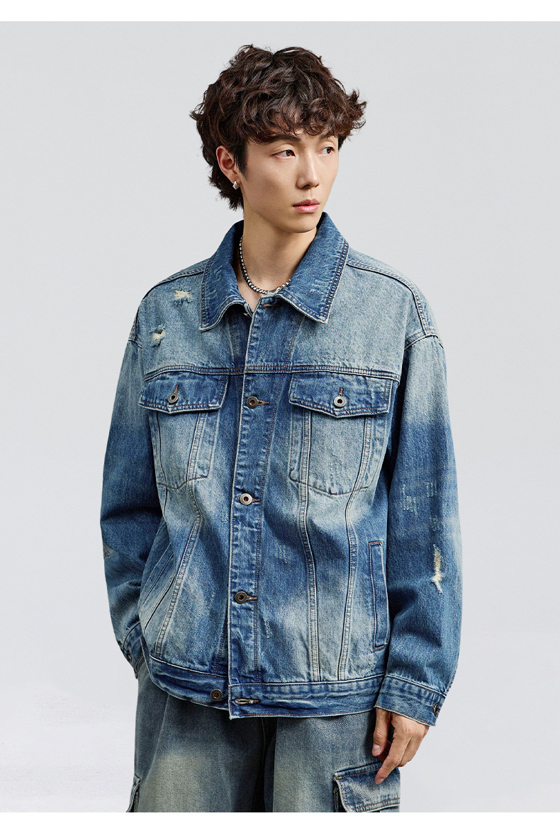 厂家直销男士宽松水洗牛仔外套,复古破洞潮流夹克,春秋休闲,耐磨舒适