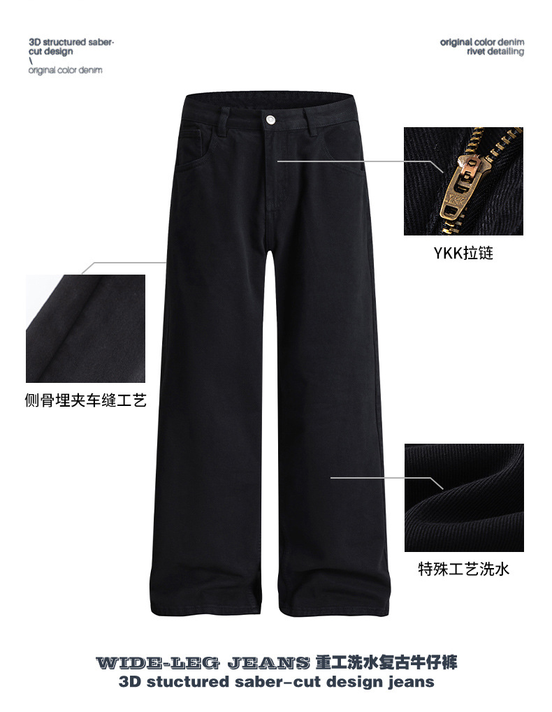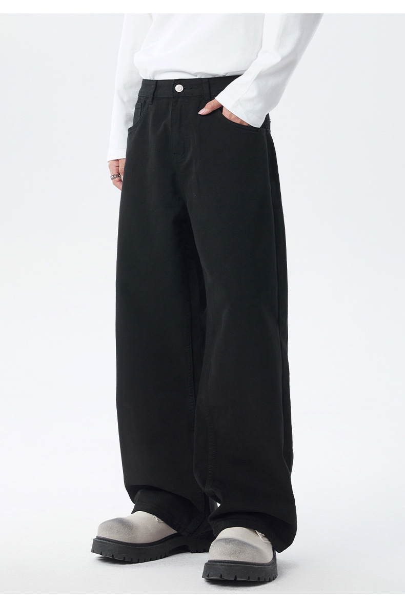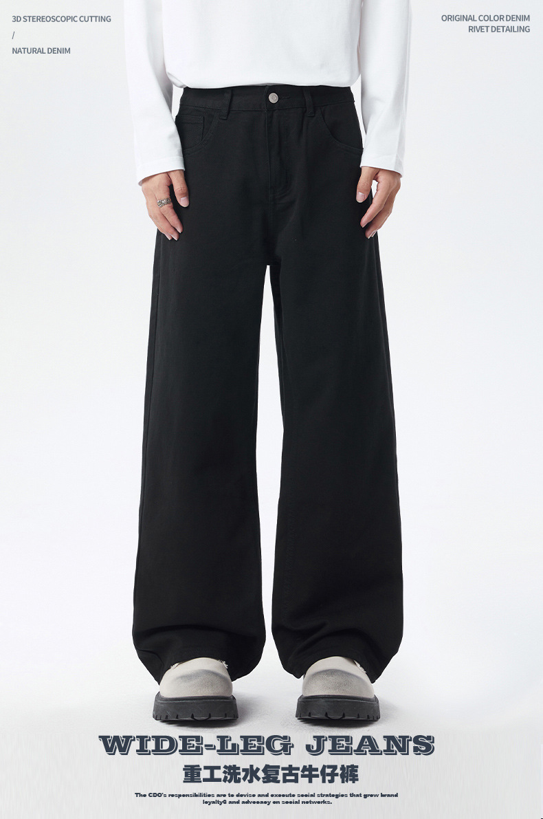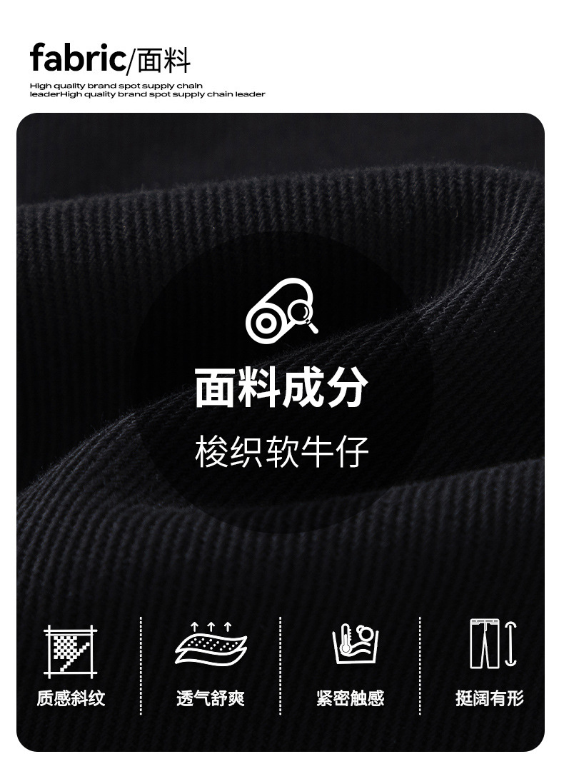 厂家直销男士修身水洗黑色牛仔裤,宽松直筒长裤,春秋通勤,百搭日常款