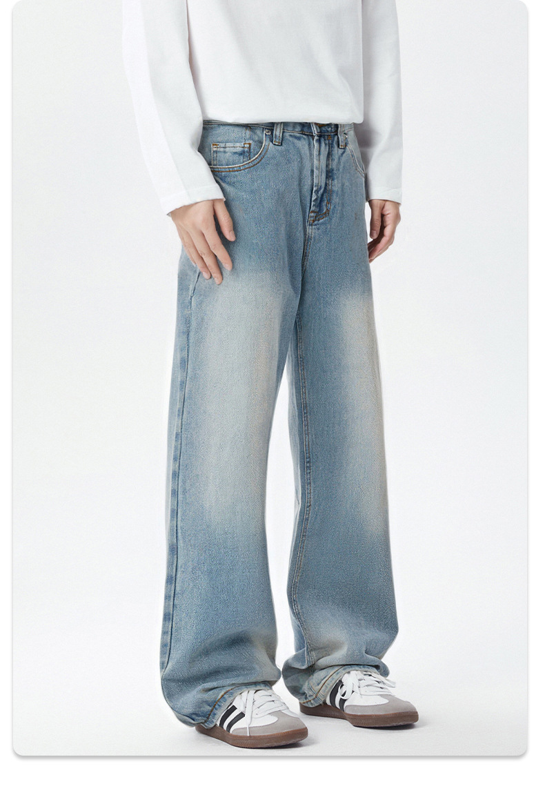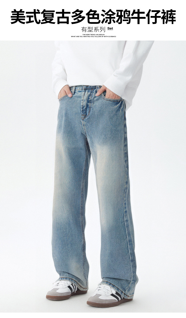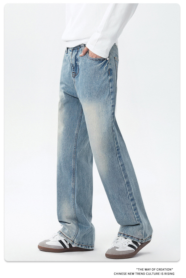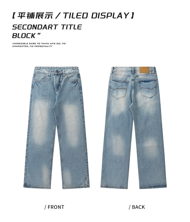 厂家直销男士宽松修身水洗做旧牛仔裤,街头风格,休闲长裤设计