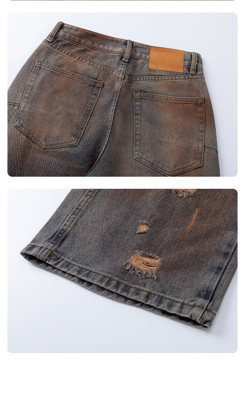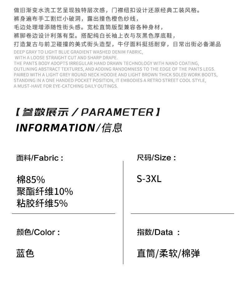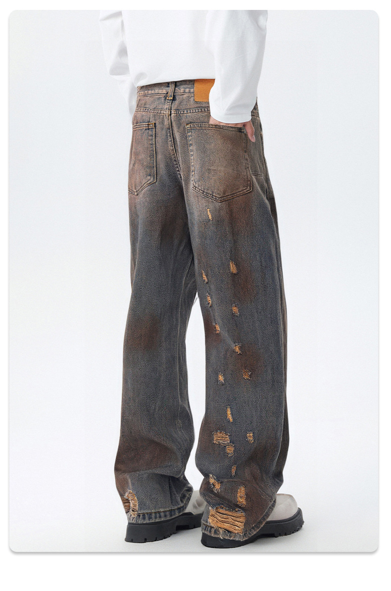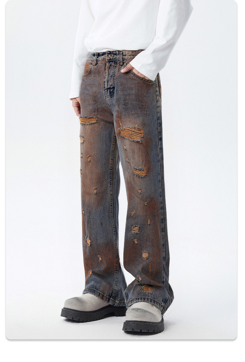 厂家直销青少年牛仔裤,复古渐变水洗直筒,百搭宽松风,春秋季休闲,手工破洞设计