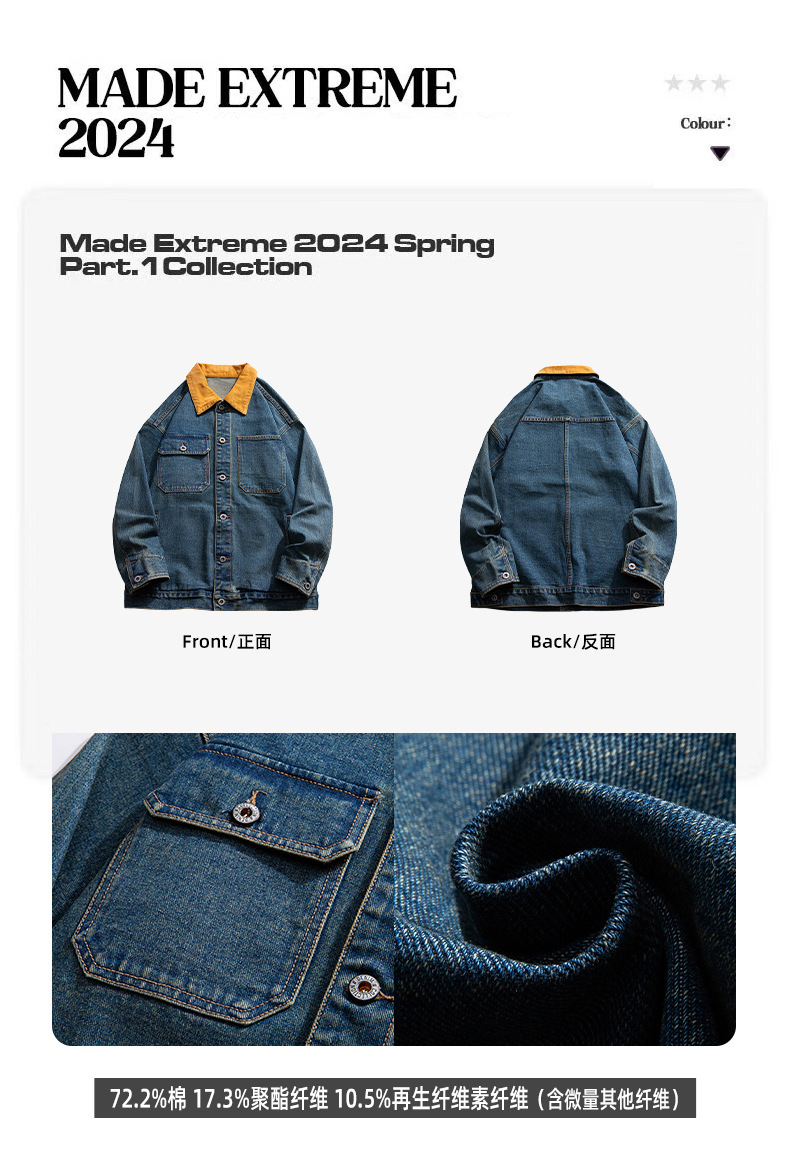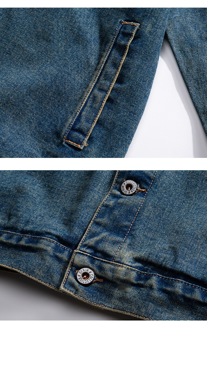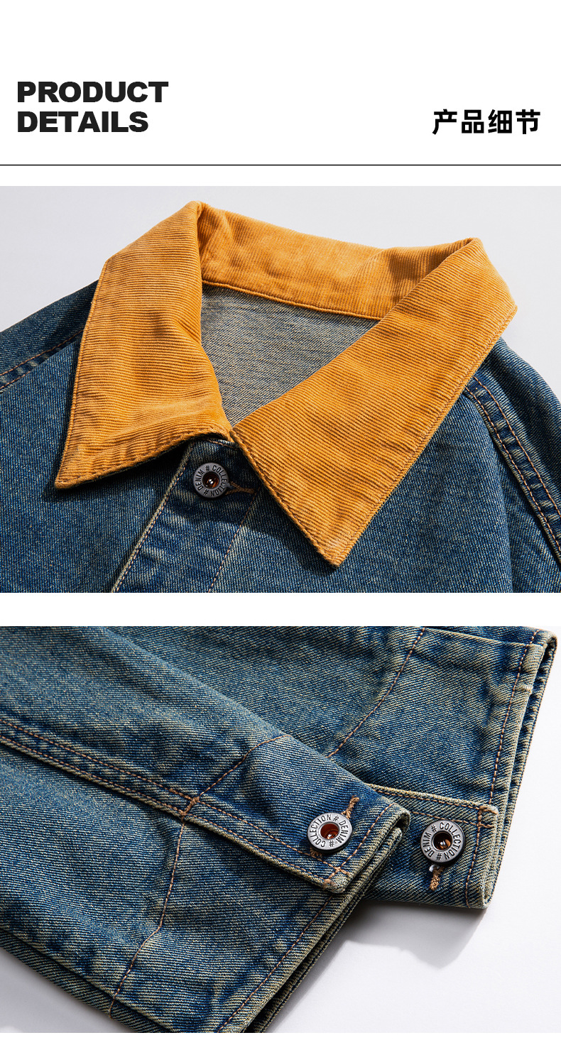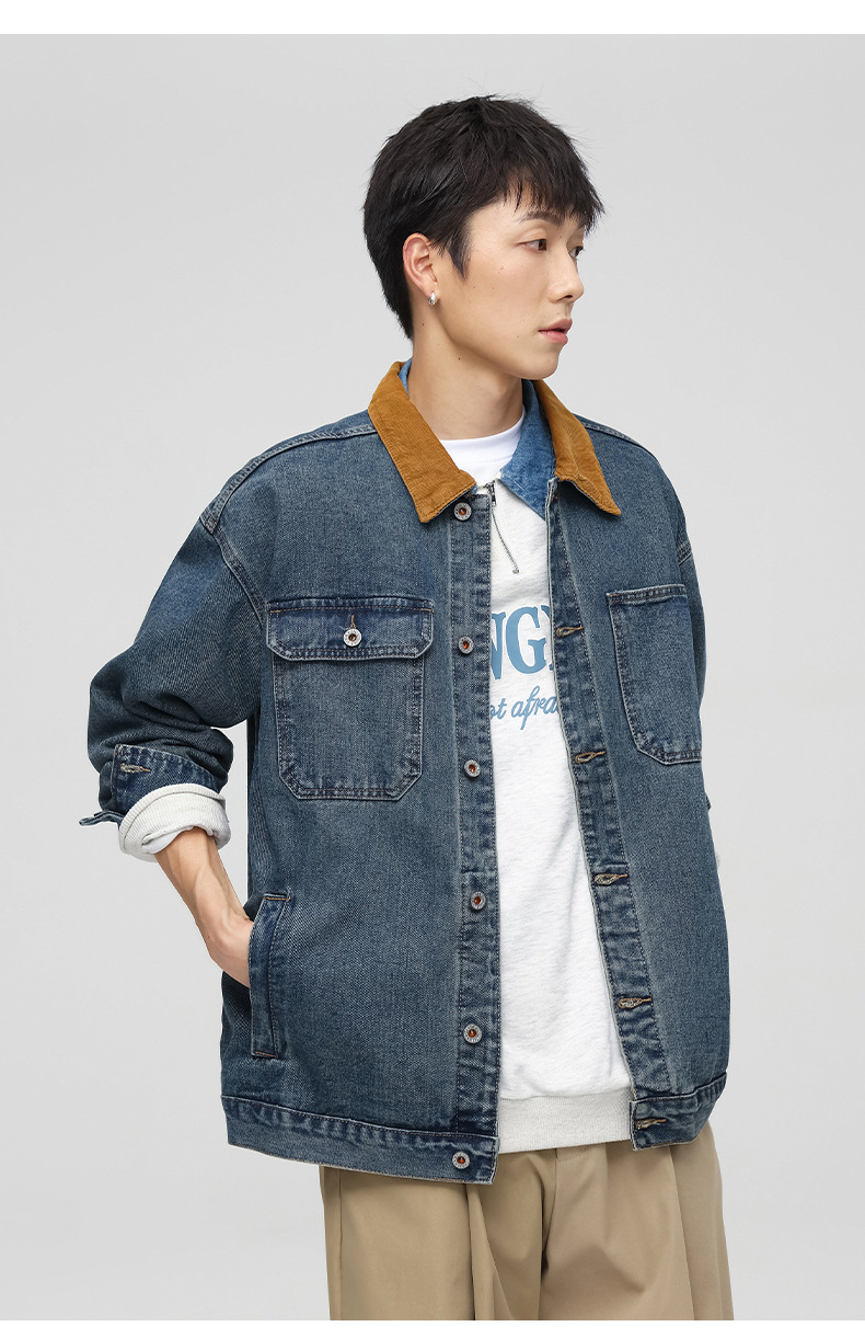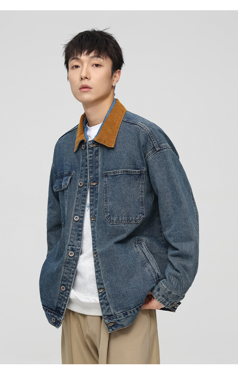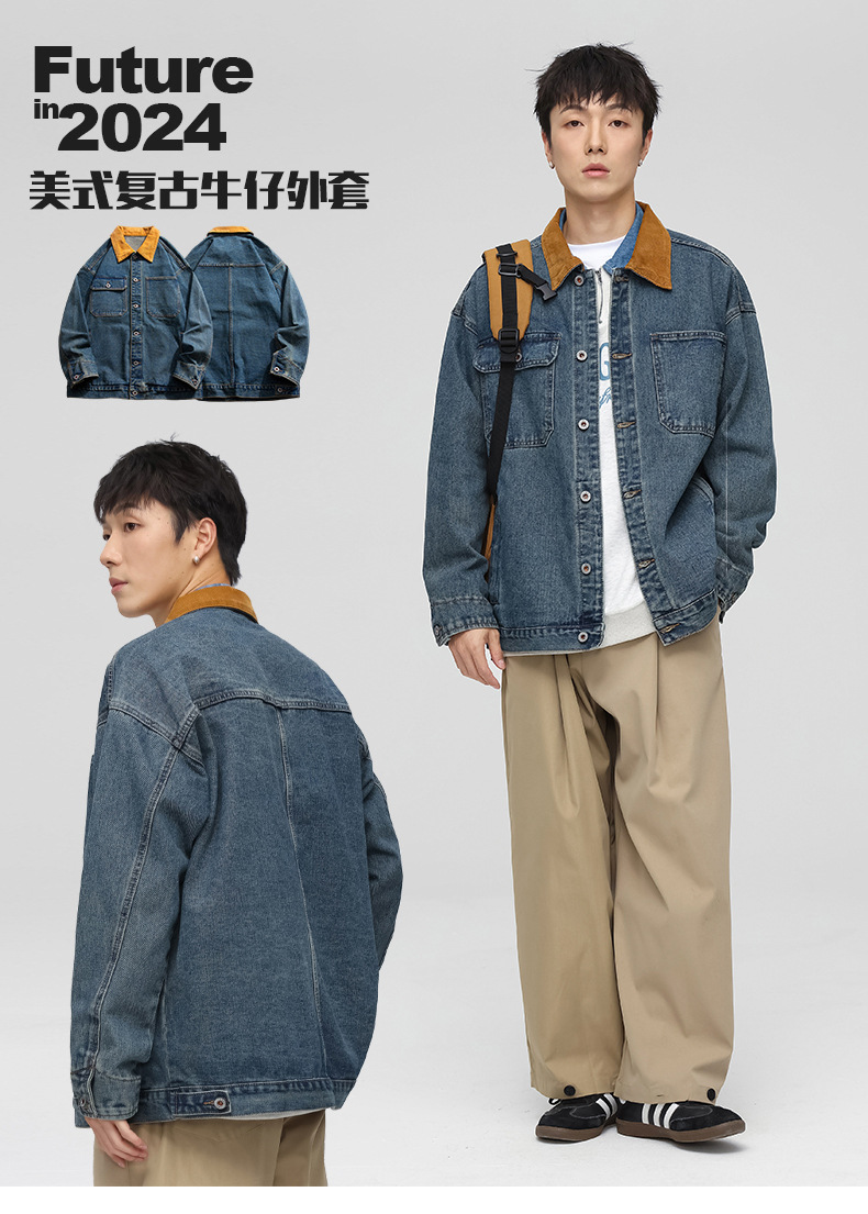 厂家直销男士宽松高档牛仔外套,透气耐磨休闲夹克,春秋适用,拼色设计,免烫处理