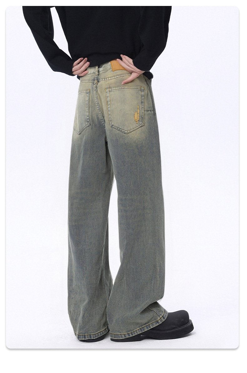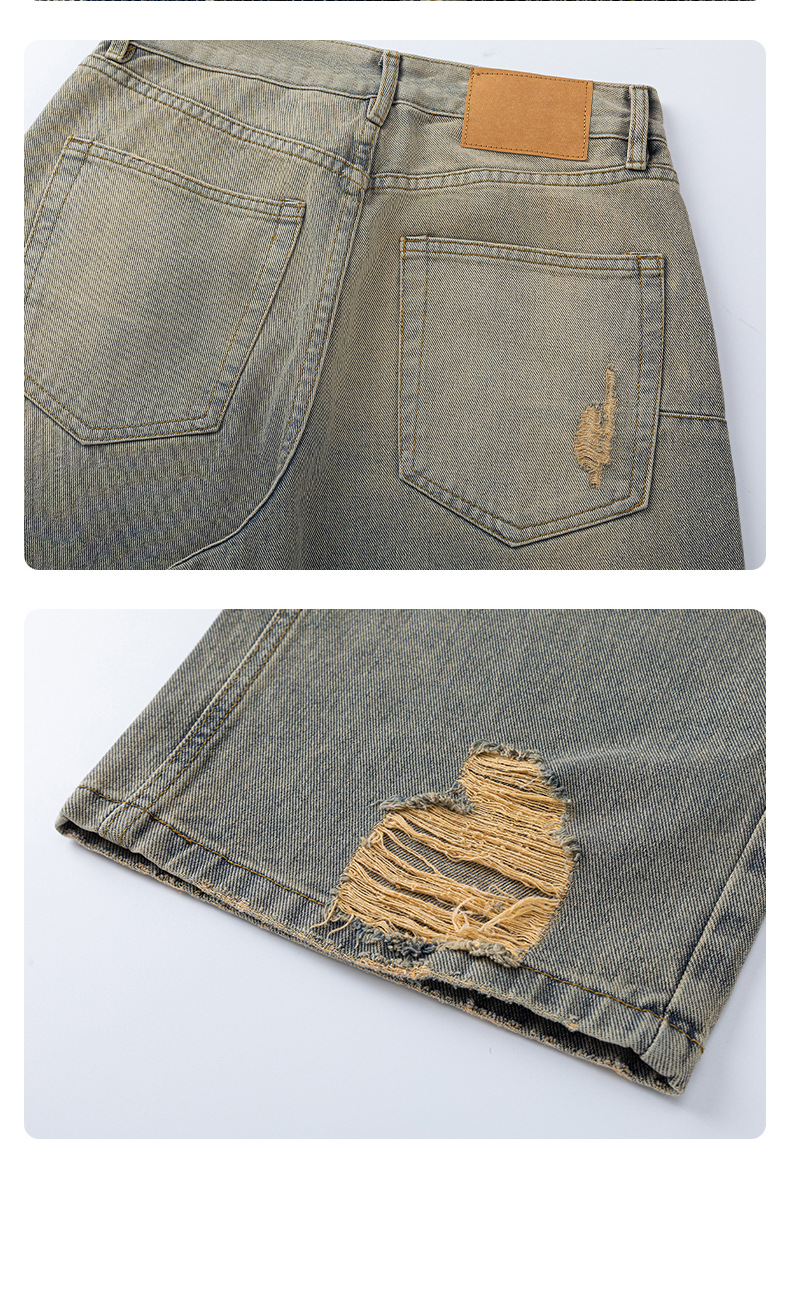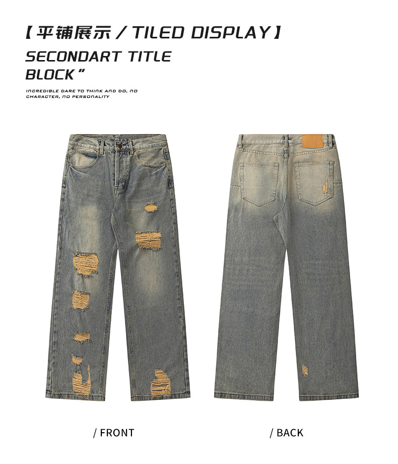 厂家直销男士水洗破洞牛仔裤,修身直筒,春秋休闲,潮流设计感与多样工艺