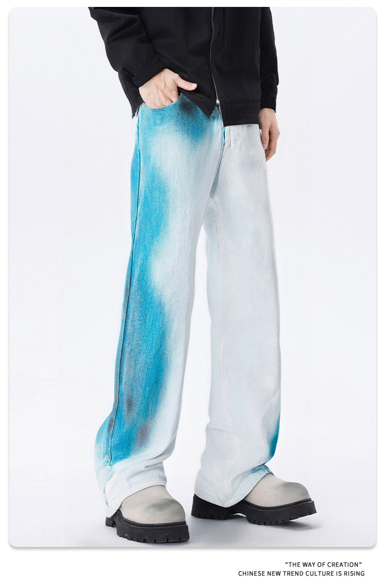 厂家直销青少年复古风喷绘牛仔裤,宽松直筒设计,春秋休闲百搭,水洗工艺舒适透气
