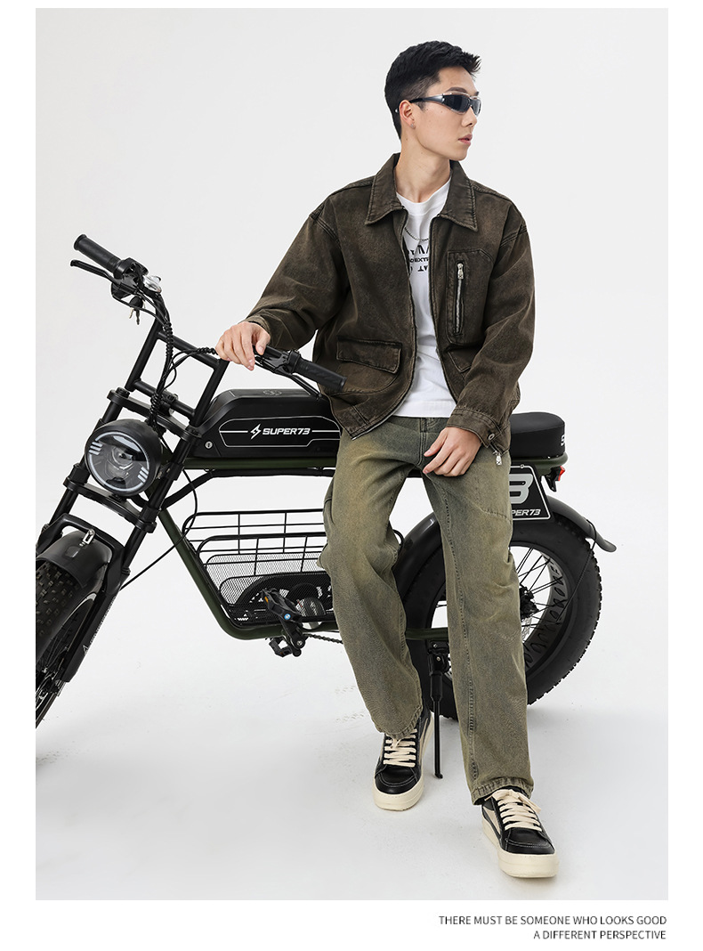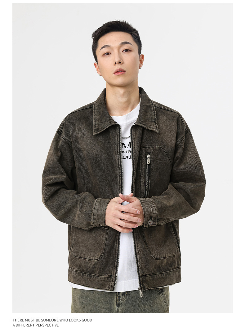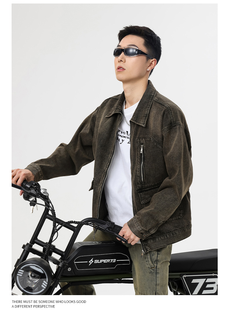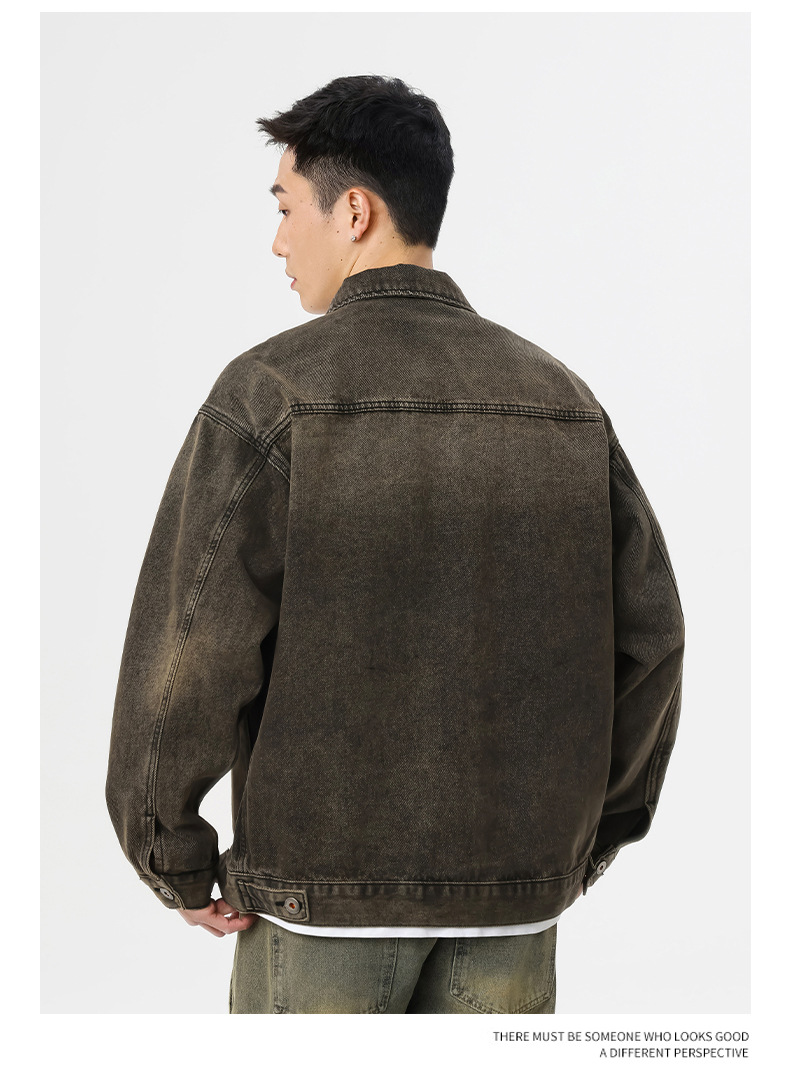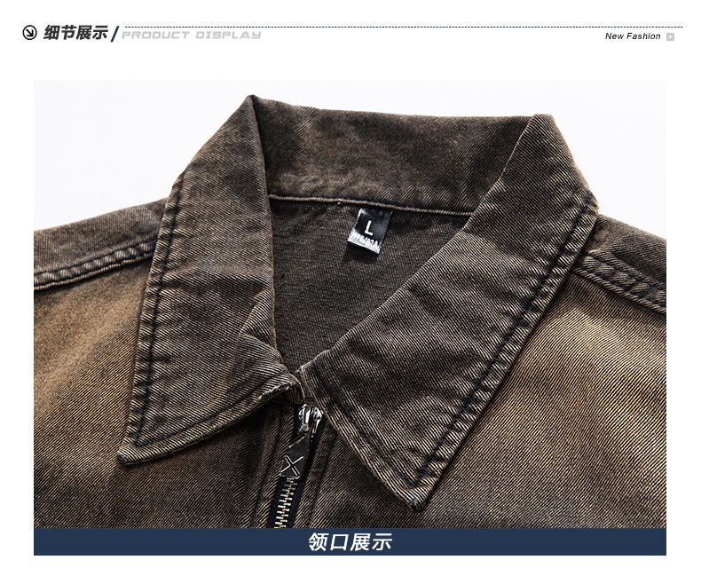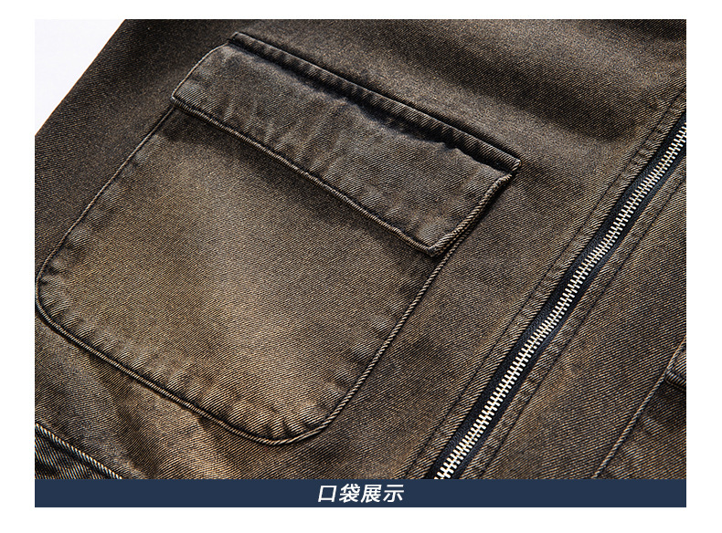 厂家直销男士透气耐磨做旧复古风牛仔外套宽松型,春秋季,多口袋设计