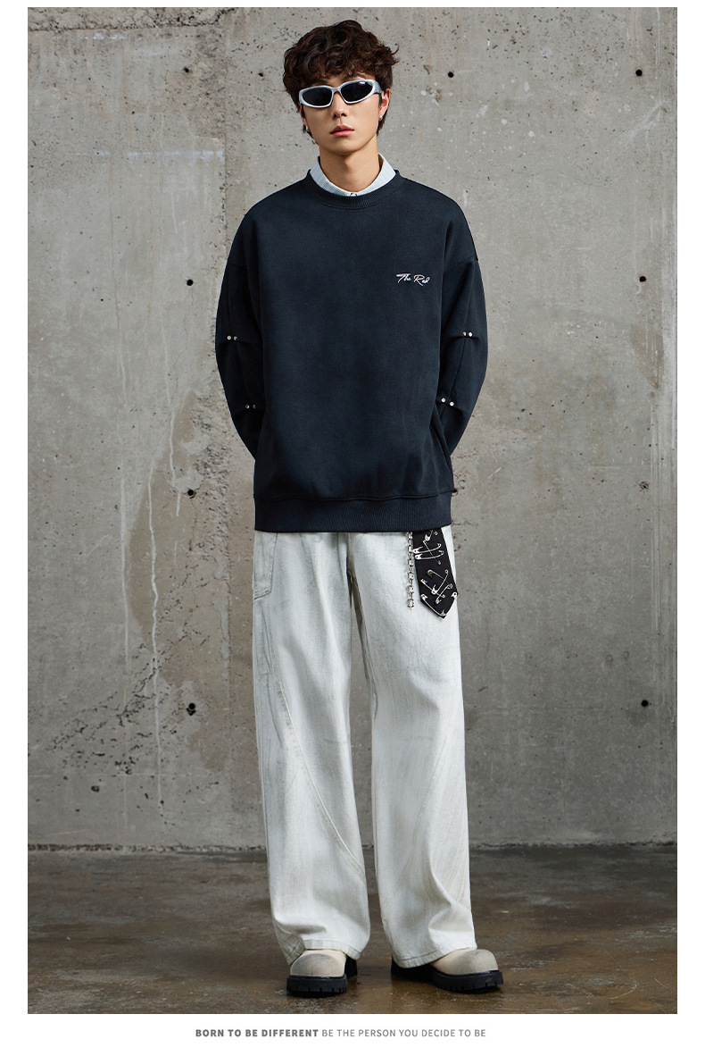 厂家直销男士宽松牛仔外套,高级感立领设计,印花装饰,春秋休闲款,日常多口袋功能。