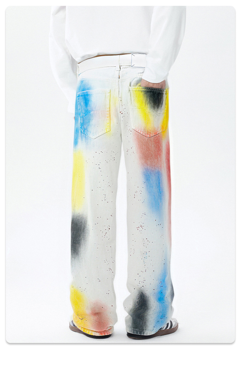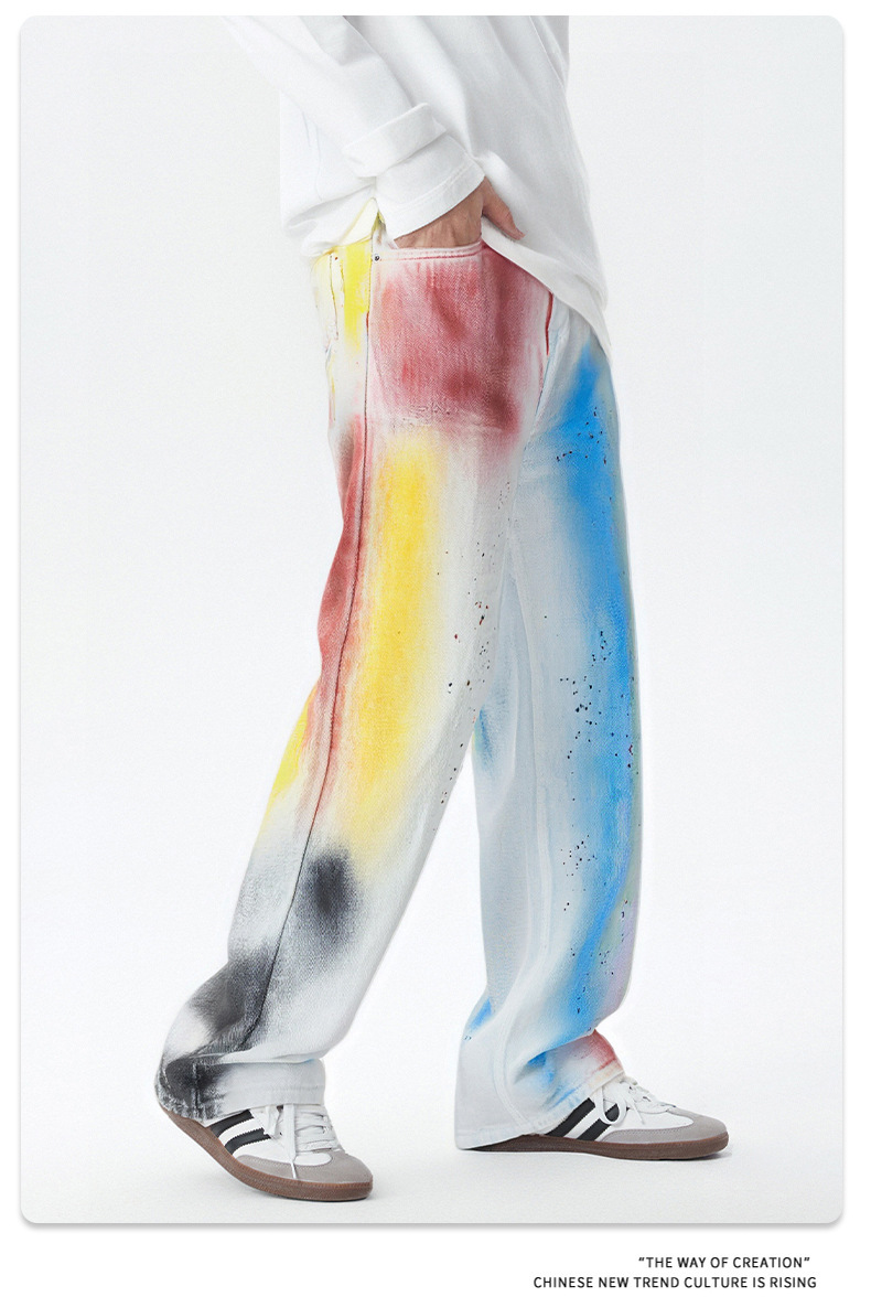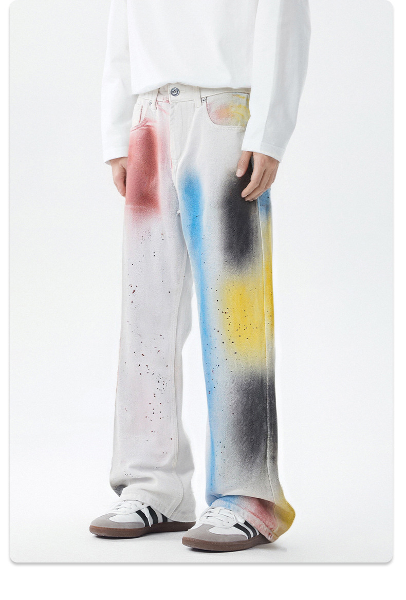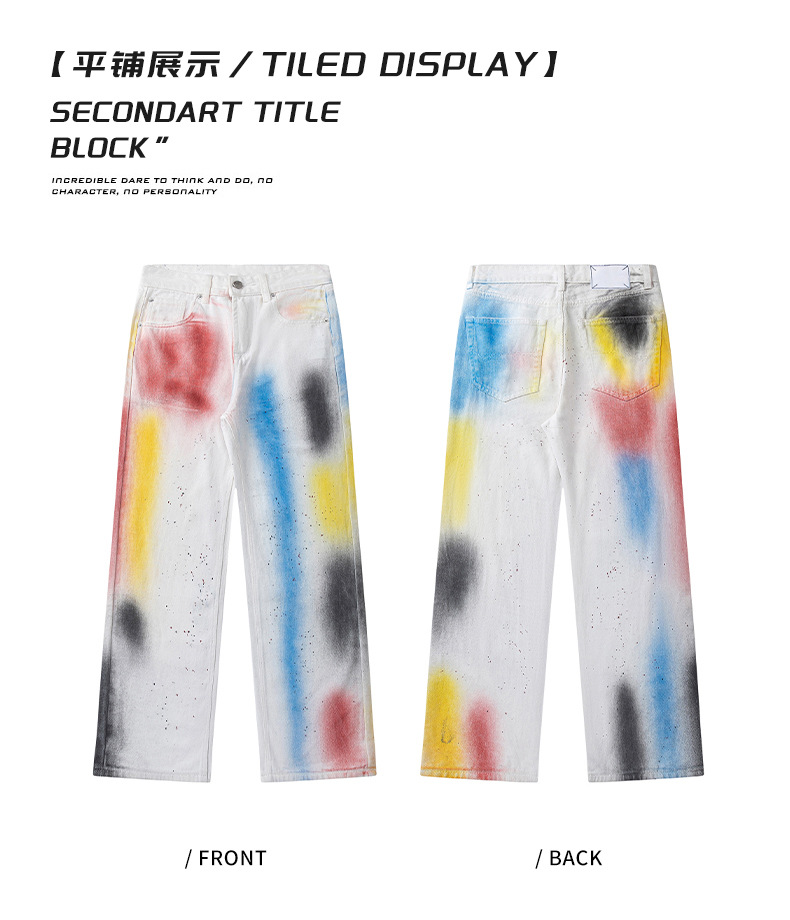 厂家直销男士宽松涂鸦牛仔裤,直筒设计,春秋休闲风格,水洗工艺,青少年潮流搭配。