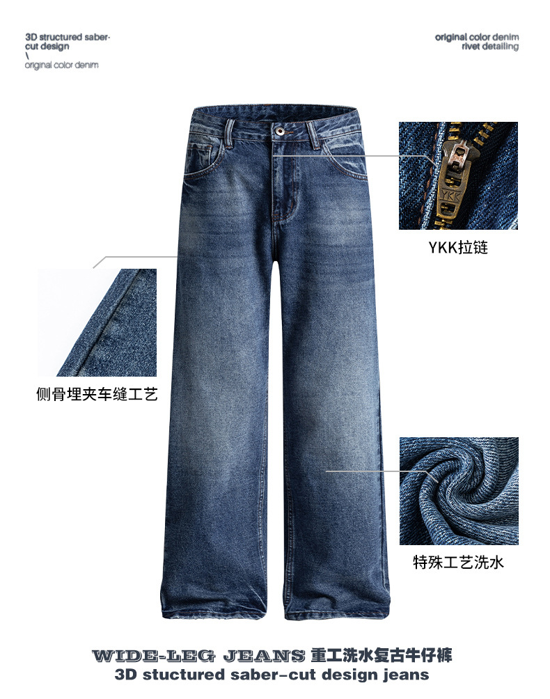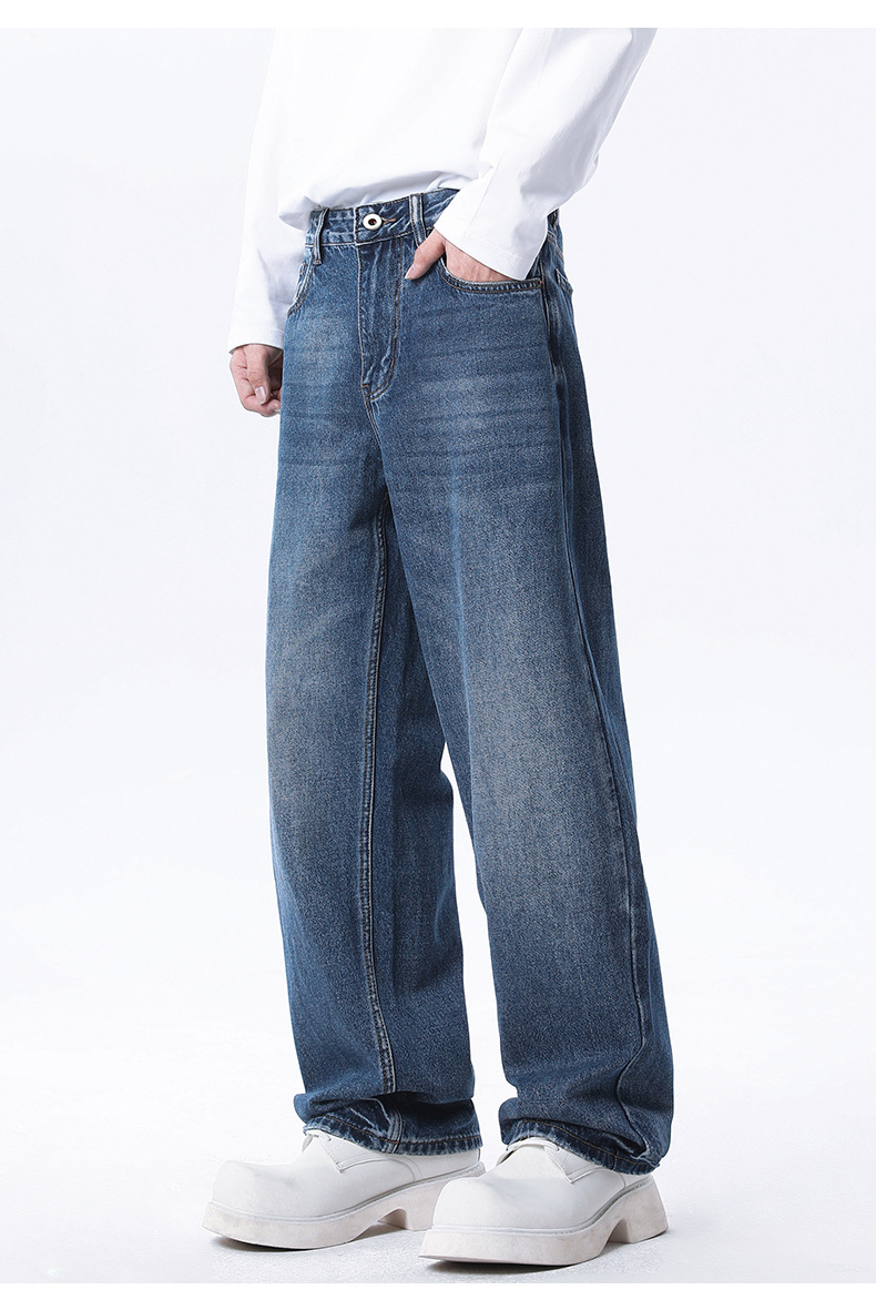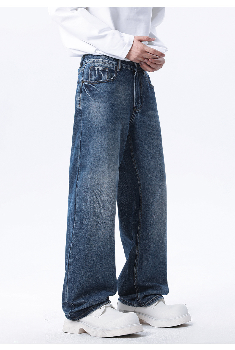 定制男士宽松阔腿牛仔裤,复古直筒设计,春秋休闲款式,多口袋实用功能