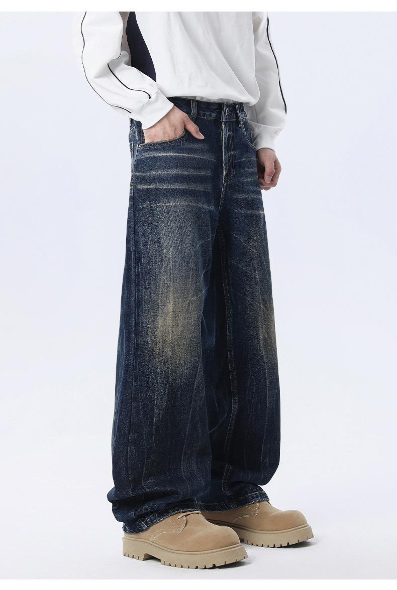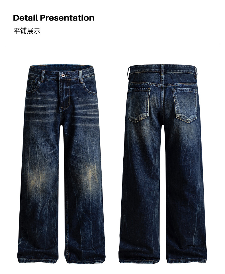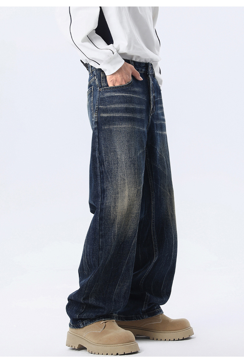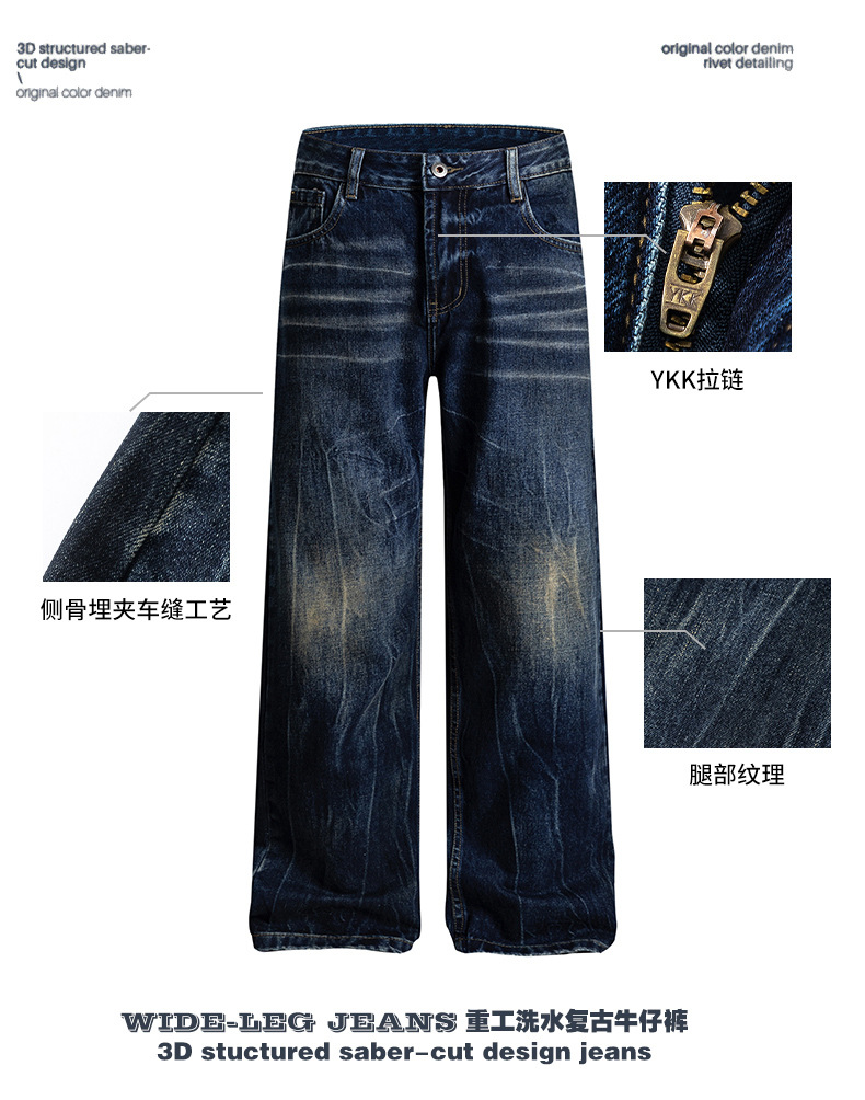 厂家直销男士水洗宽松牛仔裤,复古直筒设计,春秋休闲,独特闪电纹刺绣
