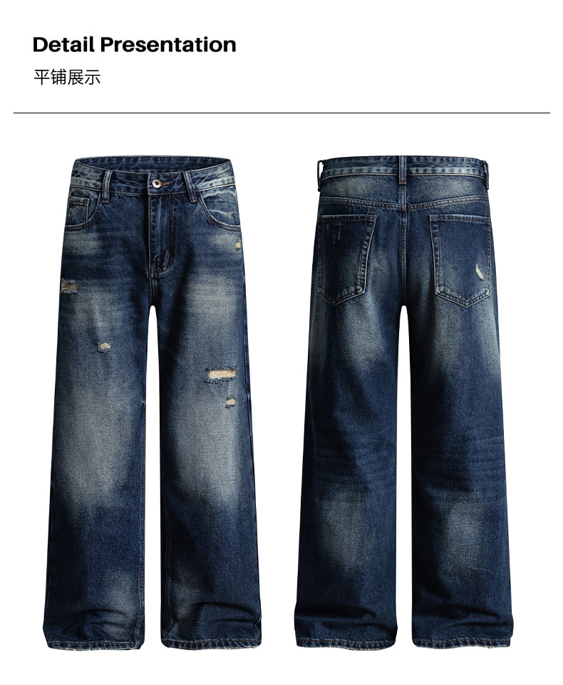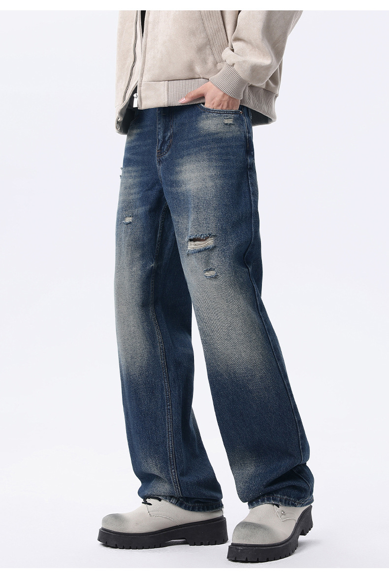 厂家直销男士宽松水洗直筒牛仔裤,复古渐变设计,春秋休闲高街款式