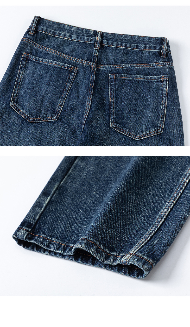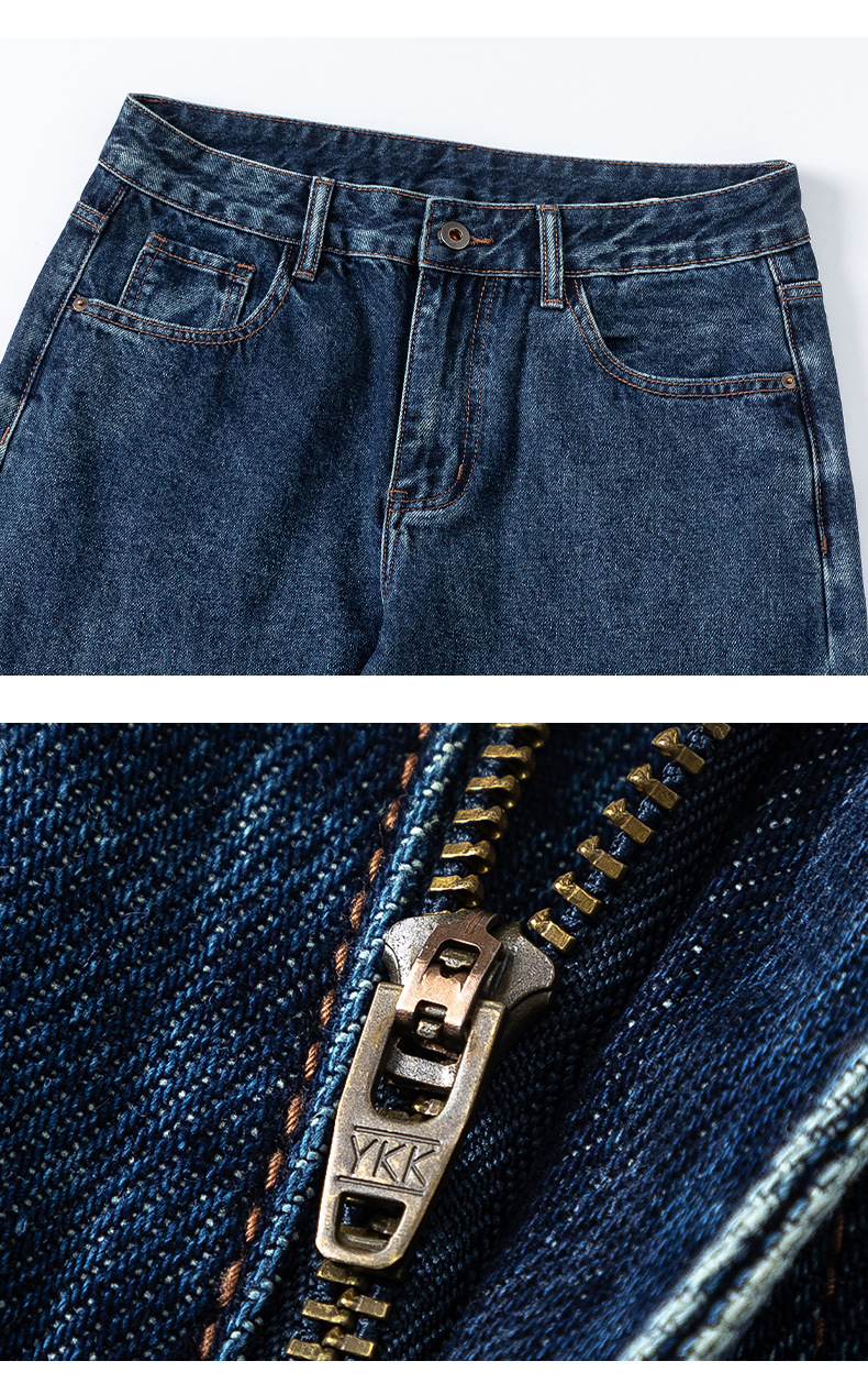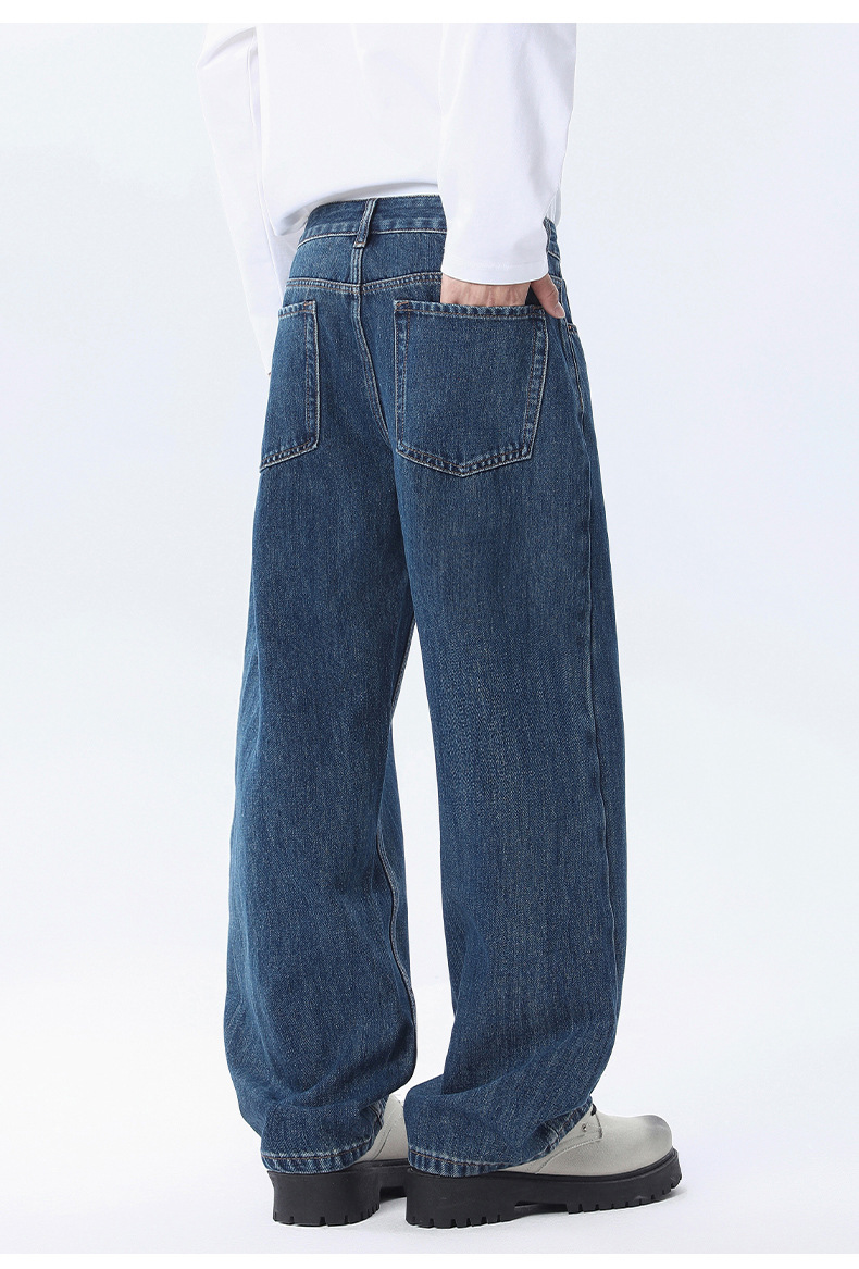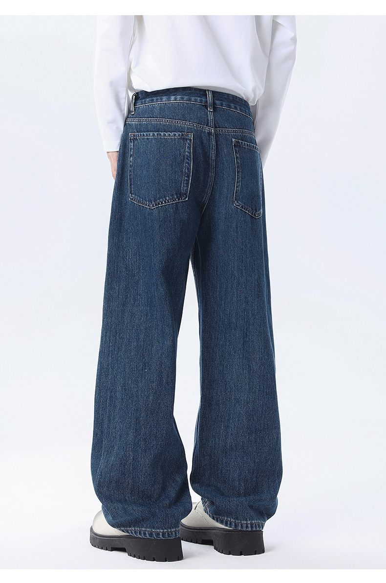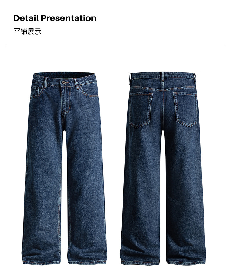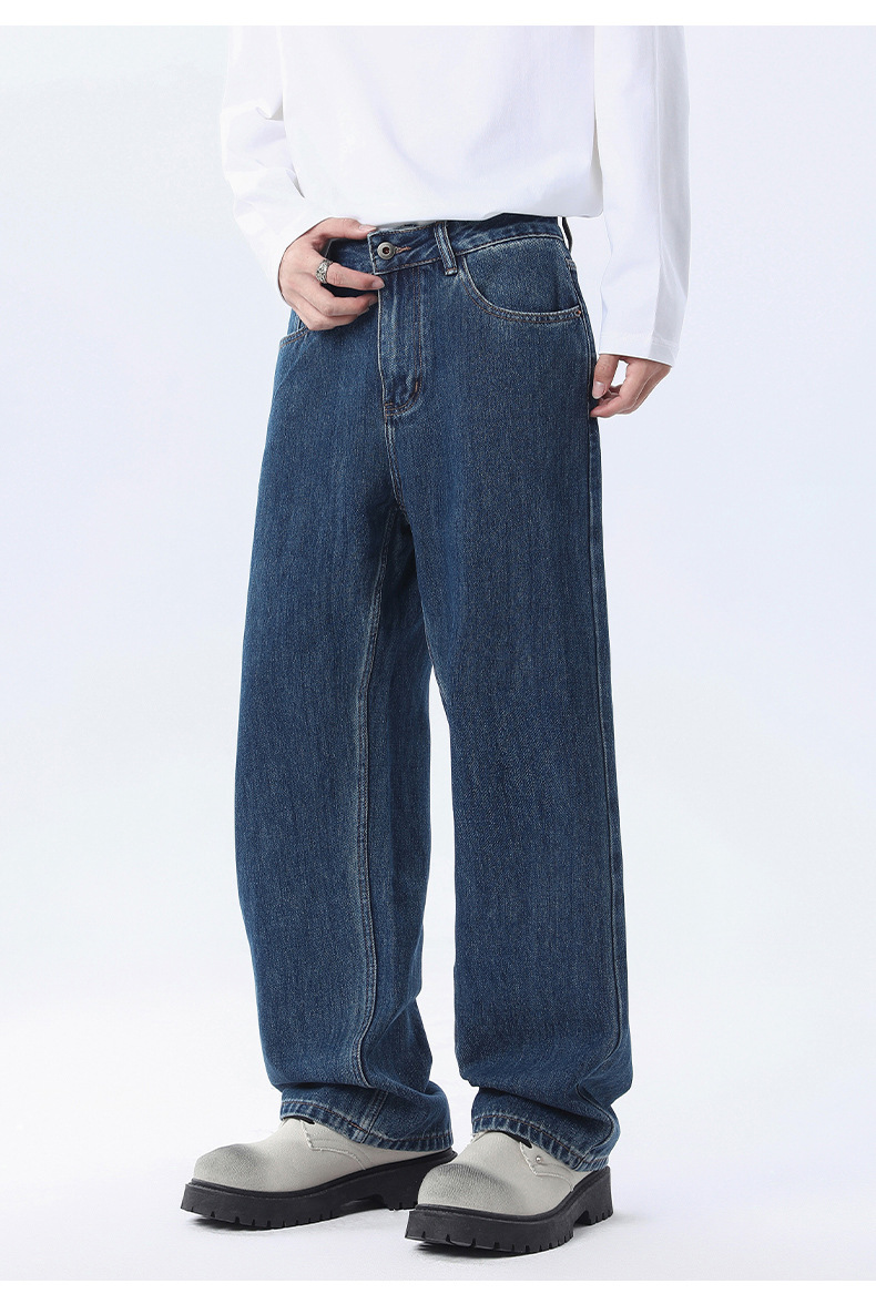 厂家直销男士宽松阔腿水洗做旧牛仔裤,初秋休闲风格,适合青少年穿着