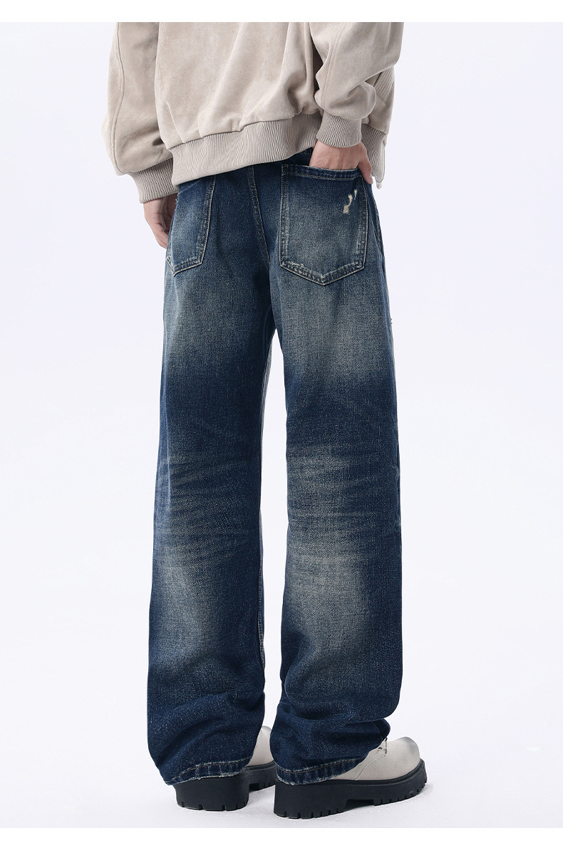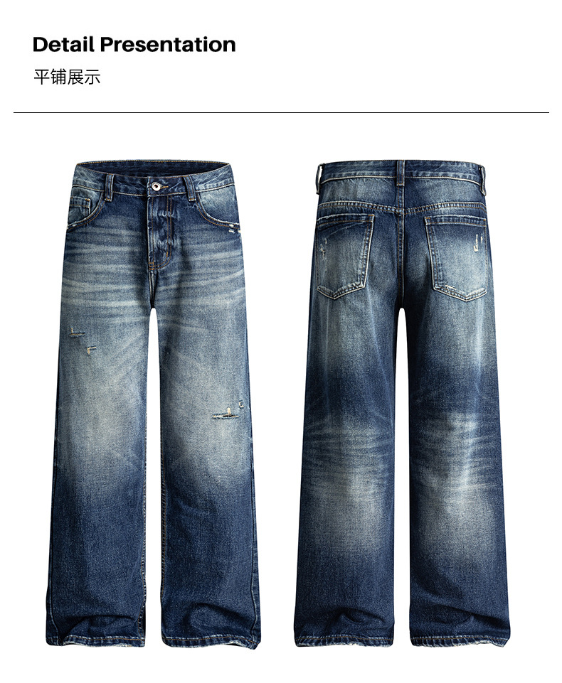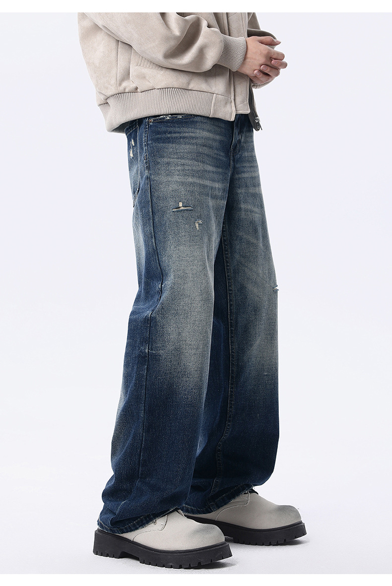厂家直销男士宽松水洗破洞牛仔裤,复古街头风,春秋休闲长裤