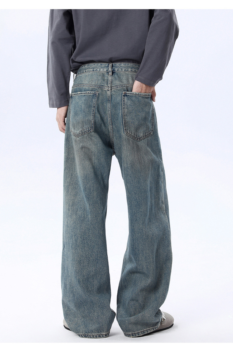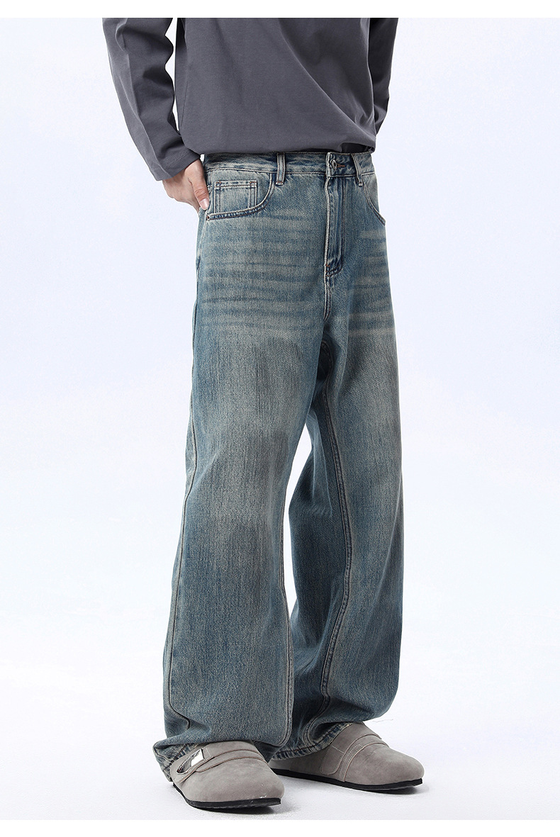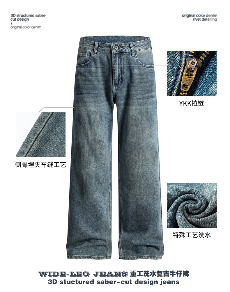厂家直销男士修身水洗直筒牛仔裤,慵懒高级感,秋季休闲风格,多口袋设计