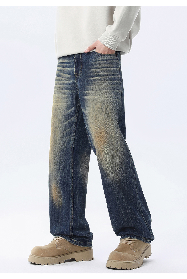 厂家直销青少年宽松水洗牛仔裤,春秋季休闲直筒款,简约复古风格