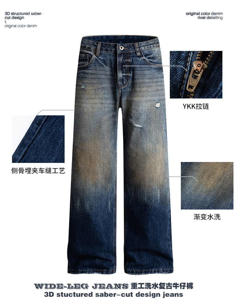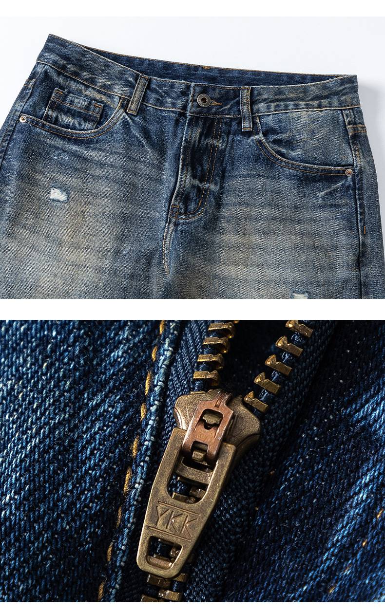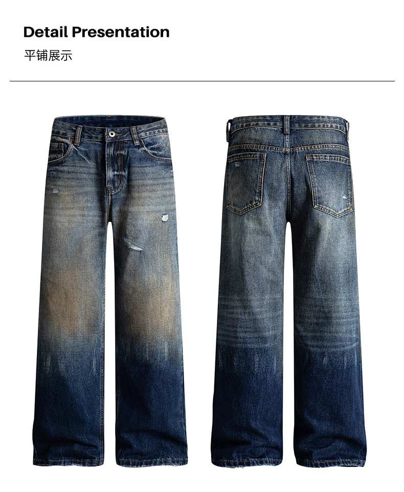 厂家直销男士宽松破洞水洗牛仔裤,春秋休闲,时尚潮牌直筒款
